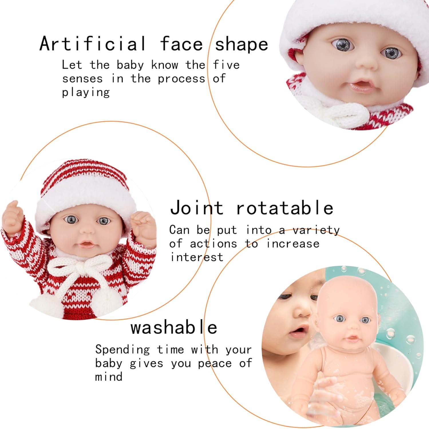 Giunti mobili: questa mini bambola ha giunti flessibili e mobili, rendendola più dinamica e realistica..Puoi metterlo in ogni modo che desideri, rendendolo ancora più realistico. Morbida e confortevole: la mini bambola è realizzata in vinile di qualità, che è sicuro e non tossico..Il suo tocco è super morbido, proprio come una vera pelle di un bambino..Non sarai in grado di resistere a tenerlo e coccolarlo! Bambola di Natale: questa mini bambola è l'incarnazione perfetta della carineria e del fascino di una ragazza!.Era vestito con bellissimi abiti natalizi e trovava lì molto carino, perfetto per dare ai bambini come decorazioni natalizie. : Questa mini bambola è perfetta per ogni bambino che ama i bambini..Diventerà un prezioso ricordo per loro!.Prendendosi cura della mini bambola, sentiranno calore e gioia, rendendoli felici e contenti. Dimensione compatta: dalla testa ai piedi, la mini bambola è alta solo 10 pollici, rendendola piccola e portatile..I bambini possono facilmente trasportare e giocarci..Le sue dimensioni adorabili ti farà venire voglia di abbracciarlo!