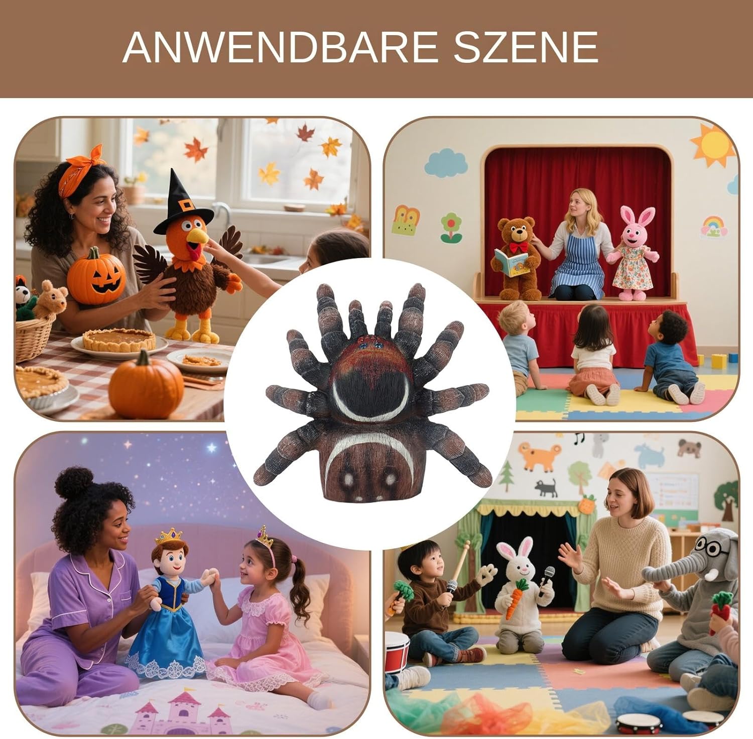 Materiale morbido: il materiale speciale consente movimenti fluidi della mano, offre un comfort delicato sulla pelle e una vestibilità naturale per un divertimento duraturo senza fastidi Regalo che riscalda il cuore: perfetto per bambini dai 3 anni in su, come idea regalo versatile per compleanni, feste di Natale, Halloween o San Valentino con sorprese divertenti e amorevoli Effetto ragno realistico: i dettagli della trama vivace e la struttura realistica conferiscono a questo burattino caratteristiche espressive che garantiscono un fascino visivo in tutte le età e offrono un valore di gioco senza tempo Supporto del gioco di storie: Sviluppa scenari coinvolgenti di burattini che stimolano l'immaginazione, promuovono la narrazione e consentono di giocare insieme tra i bambini. Ideale per decorare: ottimo come decorazione per feste e accessori per la casa, migliora l'atmosfera per decorare la stanza, adatto per diverse occasioni, facile da organizzare in modo creativo.