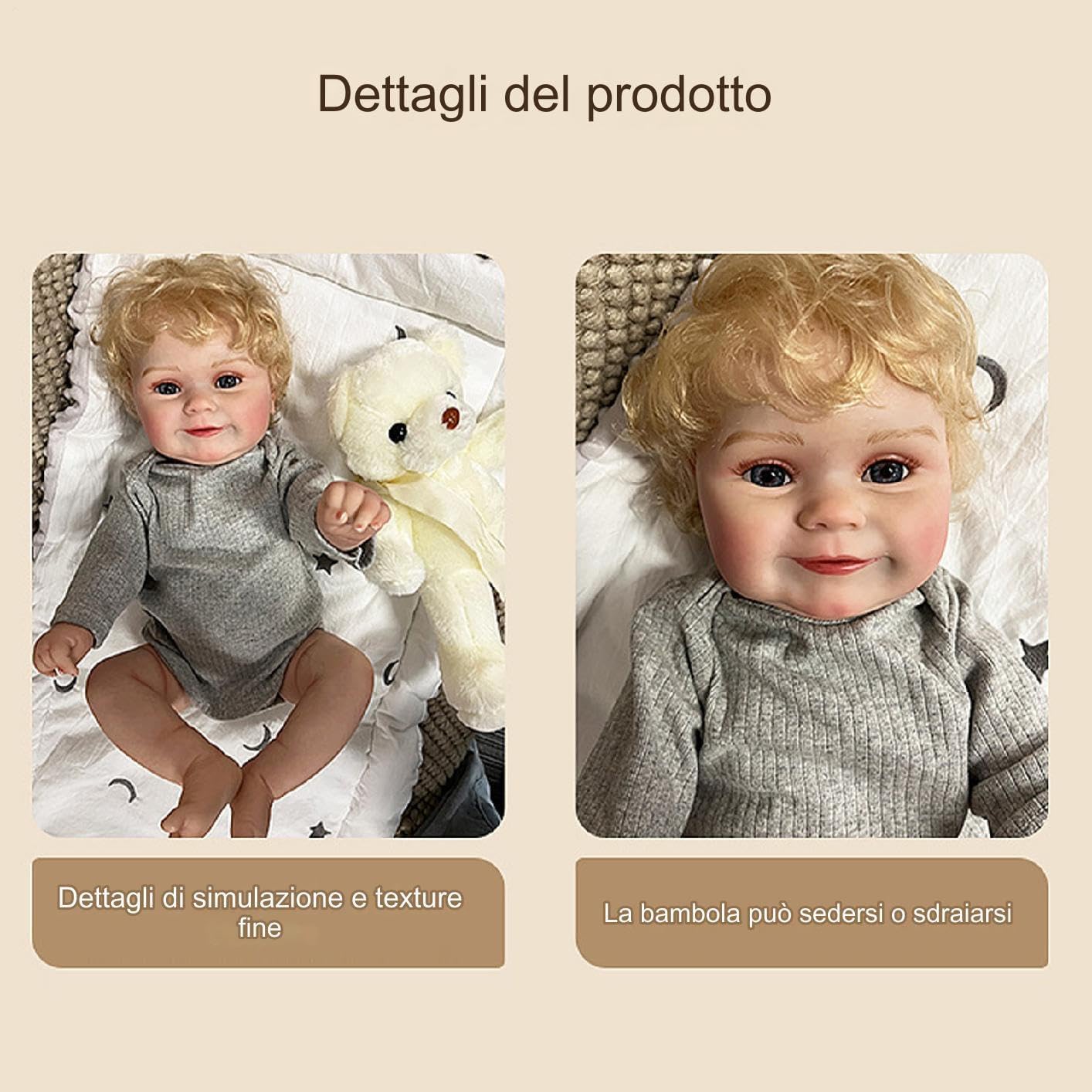 Silicone Morbido e Naturale: Costruita con silicone ecologico, morbido ed elastico, questa dona una sensazione identica alla pelle di un bambino reale, rendendola perfetta per abbracci prolungati e sessioni di gioco. Il silicone utilizzato è delicato al contatto e si adatta al calore del corpo, offrendo un'esperienza tattile e realistica. Ideale per chi cerca un compagno di gioco affettuoso, promuove momenti di tenerezza e allegria. La in silicone ecologico è Articolazioni Flessibili: Questa bambino vanta articolazioni flessibili che consentono di posarla in multiple posizioni, da sdraiata a seduta a tenuta in braccio, offrendo un'esperienza interattiva sia diversificata che fedele alla vita reale. Le articolazioni garantiscono movimenti fluidi e naturali, migliorando il realismo e arricchendo le possibilità di gioco con una gamma di autentiche. Autenticità Insuperabile e Realistica: Questa utilizza una tecnologia di produzione avanzata per ripristinare fedelmente l'aspetto di un vero neonato, con espressioni facciali accuratamente progettate, una texture della pelle raffinata e dettagli corporei precisi. Ogni elemento contribuisce a un realismo straordinario, catturando le caratteristiche di un bebè reale in modo naturale e coinvolgente, ideale per appassionati che cercano un prodotto di alta qualità e dettagli iperreali Partner per lo Sviluppo Emotivo: Questo partner emotivo aiuta ad alleviare lo stress, insegnare la compassione e coltivare un senso di responsabilità nei bambini. Offre un sostegno emotivo che contribuisce a donare felicità ideale e duratura, supportando la maturazione affettiva e sociale. La è progettata per essere un punto di riferimento stabile nel percorso di crescita, promuovendo valori positivi e serenità. Kit Completo: Dotato di una gamma di vestiti e squisiti, questo vivido giocattolo aumenta il fattore mentre favorisce le abilità di vita di base e rende il processo di cura più piacevole. Il kit completo con è progettato per stimolare l'immaginazione e l'apprendimento attraverso il gioco di ruolo. Include tutto il necessario per una cura realistica, aiutando a sviluppare competenze pratiche in modo educativo e divertente con la toddler e i suoi
