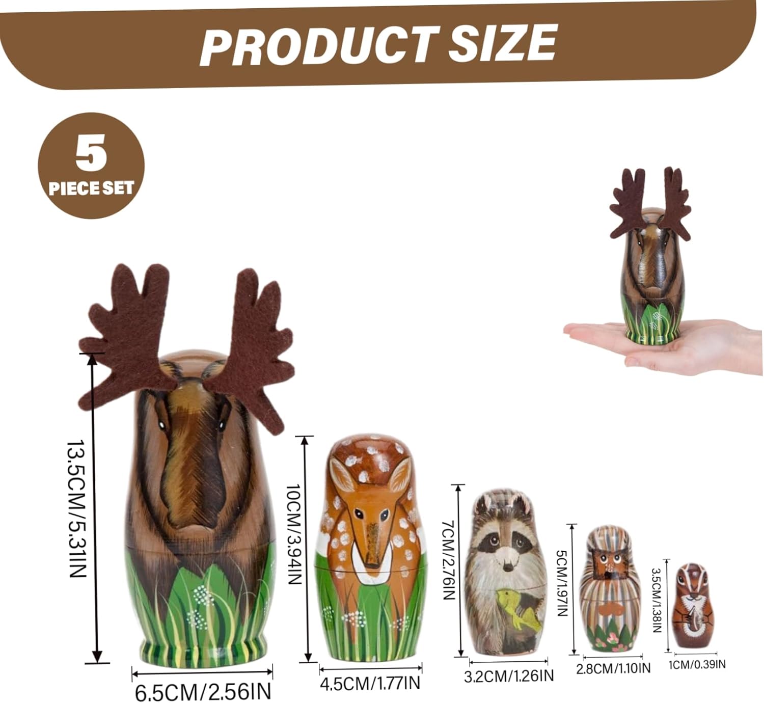 Bambola più alta con corna: la bambola più alta in questo set è il cervo, alto 5,3 pollici e dotato di corna..Ciò aggiunge una caratteristica extra di fascino e unicità al set. Superficie liscia: la superficie di queste bambole nidificanti è liscia, garantendo un tocco confortevole..Le bambole sono realizzate con cura con levigatura e lucidatura di precisione, rendendole sicure per i bambini da maneggiare e con cui giocare. Simpatici disegni di animali: questo set di bambole che nidificano include cinque bambole, raffiguranti un cervo con corna di morbido feltro, una cerva, un procione, un riccio e uno scoiattolo..Ogni bambola presenta dettagli intricati e colori vivaci, dando vita agli animali. Decorazione perfetta e per la casa: queste bambole che nidificano con animali sono eccezionali e premurose..Sono perfetti per i compleanni, soprattutto per i ragazzi e le ragazze che amano gli animali..Inoltre, possono essere utilizzati come deliziose decorazioni per la casa, aggiungendo un tocco di e fantasia a qualsiasi spazio. Set di bambole che nidificano con animali: le bambole che nidificano con animali sono un set di bambole che nidificano in legno, note anche come bambole russe o bambole matrioska..Queste bambole di legno sono progettate a forma di vari animali, ogni bambola diminuisce di dimensioni e inserisce l'una nell'altra.