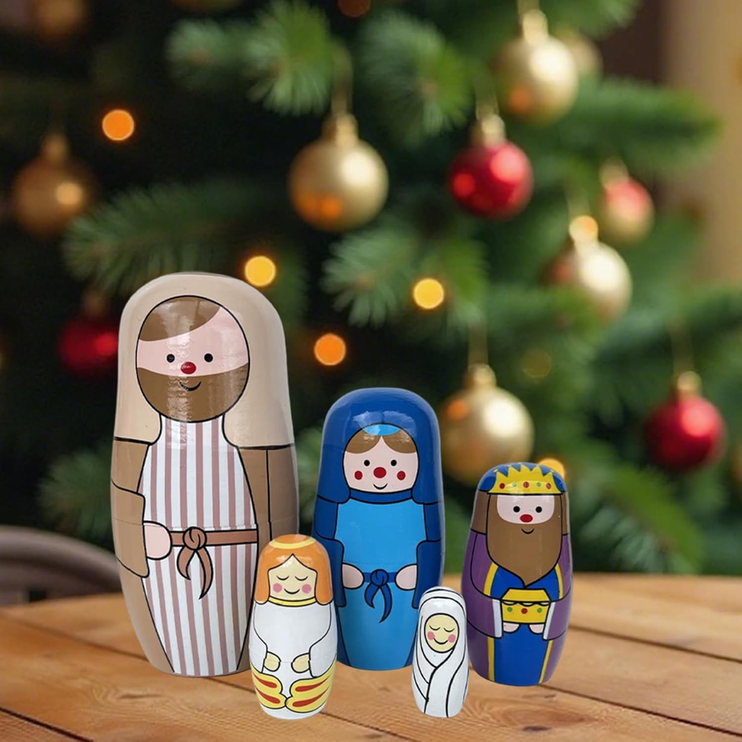 Autentica arte del presepe: dipinte a mano con dettagli squisiti, queste bambole da nidificazione in legno raffigurano magnificamente il presepe di Gesù, portando uno spirito sincero e tradizionale alle tue celebrazioni di Natale, Pasqua o compleanno..Ogni bambola sfoggia colori vivaci e un design significativo che onora la storia della stagione. Set compatto e da collezione: questo set di bambole da nidificazione da 5 pezzi è compatto per riporlo e trasportarlo facilmente, incoraggiando la raccolta e l'esposizione..La sua miscela unica di design tradizionale della bambola russa con il simbolismo della Natività cristiana la rende un ricordo prezioso. Artigianato in legno di alta qualità: realizzate in legno stabile, queste bambole matrioska in stile russo offrono un fascino duraturo e una finitura liscia sicura per i bambini..La struttura robusta garantisce anni di divertimento e visualizzazione in famiglia. Regalo e decorazione perfetti: ideale da presentare a Natale, Pasqua o compleanni, questo set funge sia da regalo significativo che da decorazione festosa per la casa..La vivace opera d'arte a tema Natività migliora l'arredamento natalizio e ispira la celebrazione. Divertimento educativo e interattivo: progettate per neonati e bambini, queste bambole da nidificazione promuovono le capacità motorie, la coordinazione occhio-mano e il gioco fantasioso..La loro funzione di annidamento incoraggia la risoluzione dei problemi e la curiosità, rendendo l'apprendimento gioioso e coinvolgente per i bambini.