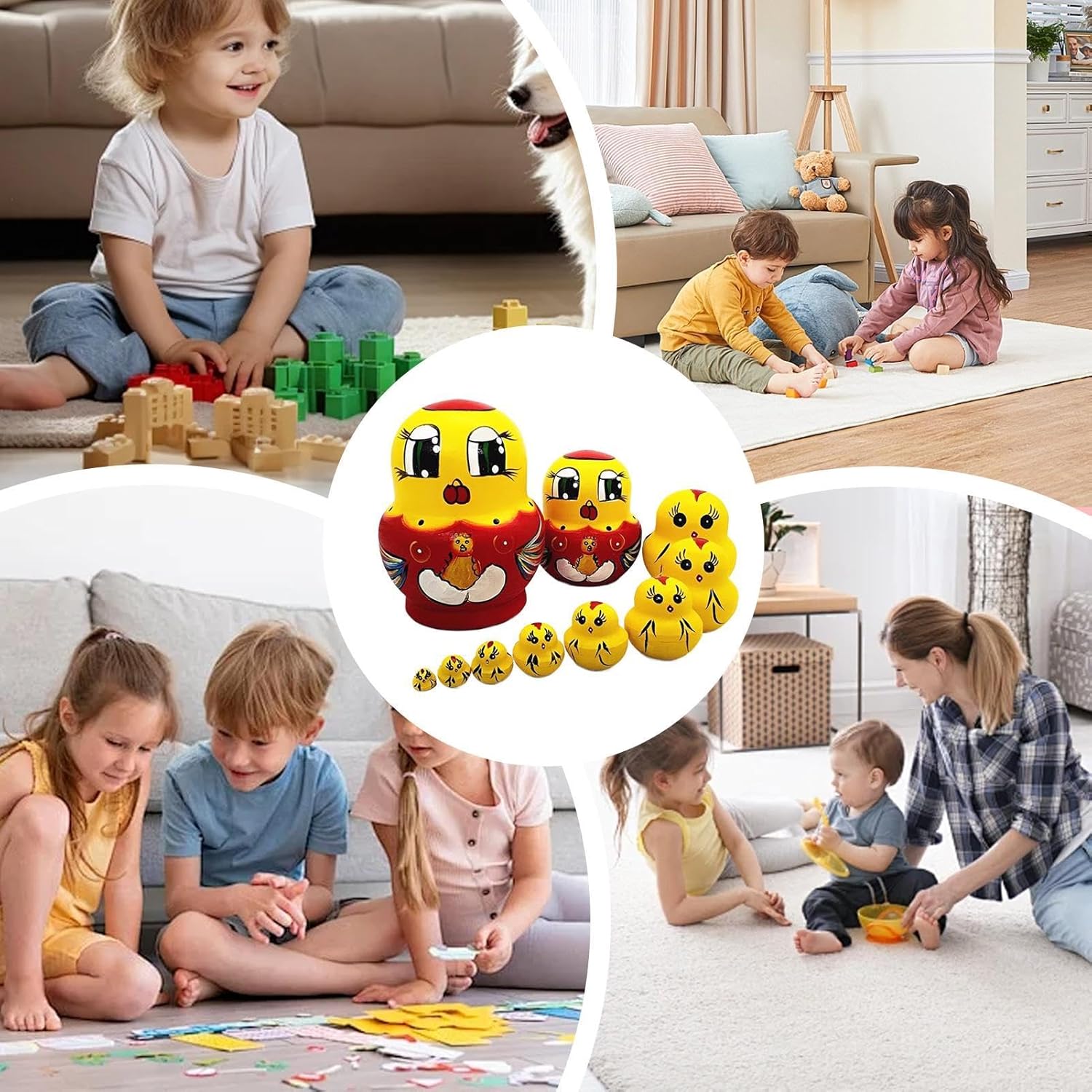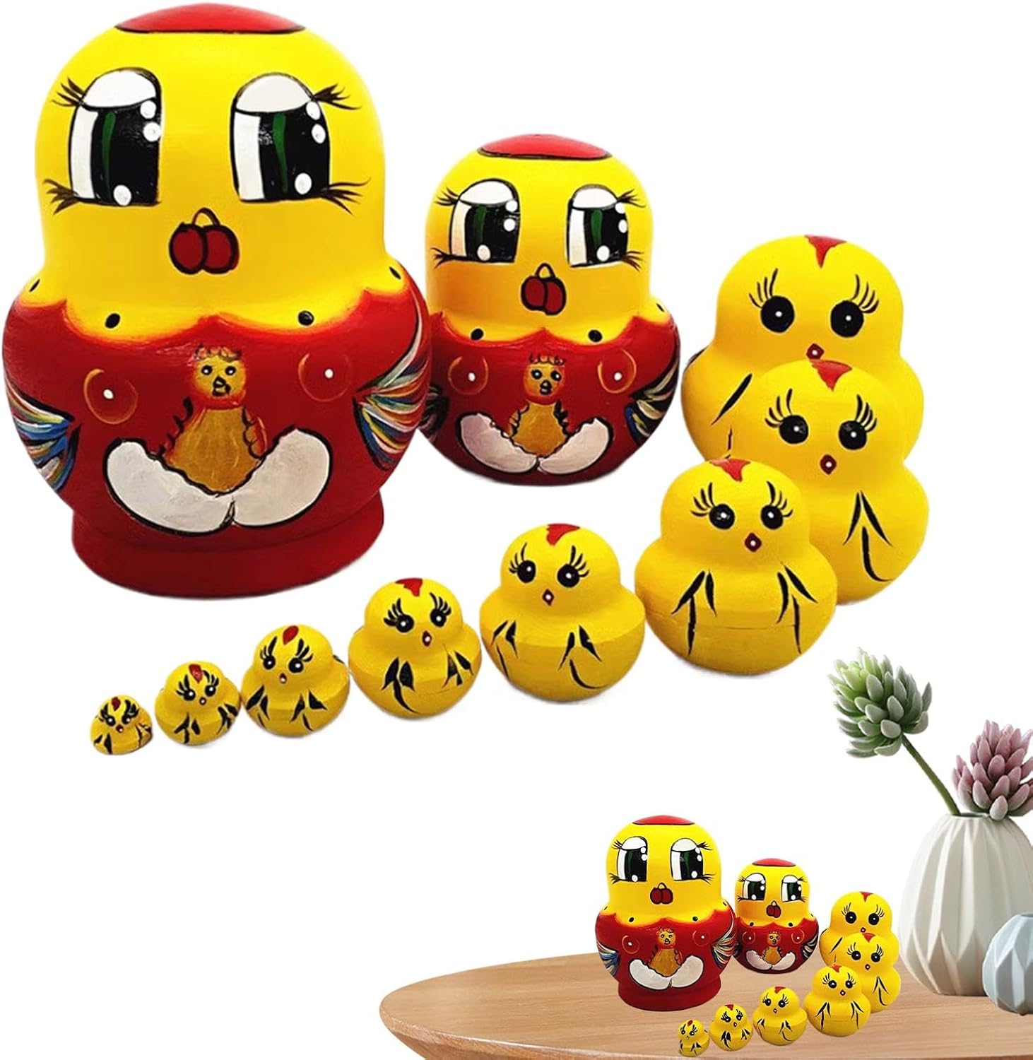 Ottima fattura: goditi l'allegria natalizia con le nostre bambole che nidificano che mostrano un'attenta lavorazione artigianale, un robusto materiale in legno e una finitura per migliorare l'eleganza del tuo arredamento domestico Aspetto degli animali: porta un tocco di fascino natalizio con le nostre bambole nidificanti. Il loro simpatico aspetto animale, caratterizzato da affascinanti motivi di panda, Babbo Natale, pulcini e anatre gialle, è perfetto per aggiungere un tocco di fantasia a tutto lo spazio Migliora le capacità motorie: sapientemente progettate per promuovere il gioco fantasioso dei bambini, queste bambole nidificanti sviluppano capacità motorie e riconoscimento dei colori, mantenendo i bambini impegnati per ore Buone decorazioni per la casa: queste bambole nidificanti fungono da accenti unici per l'arredamento della casa che si abbinano facilmente ad ogni angolo della casa, rendendole le osservazioni di apertura perfette per molte occasioni. Aggiungi un tocco di fascino festoso all'arredamento della tua casa con questi pezzi distintivi I migliori regali: abbellisci le tue decorazioni natalizie con le nostre intricate bambole nidificanti. Ogni bambola è splendidamente realizzata con grande attenzione ai dettagli, rendendola il regalo perfetto per chiunque apprezzi i giocattoli artistici. Ideale per aggiungere un tocco di eleganza alle occasioni speciali
