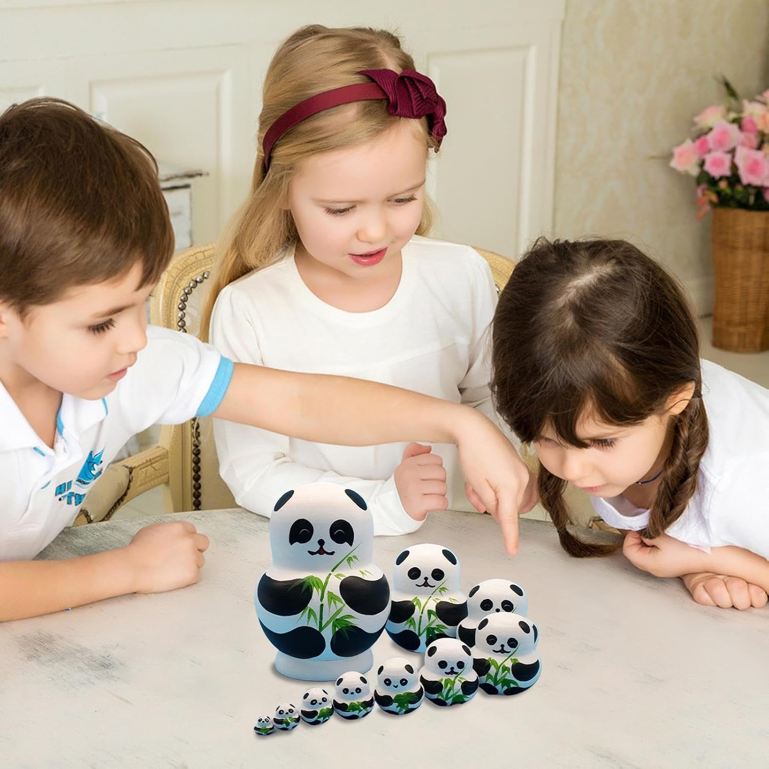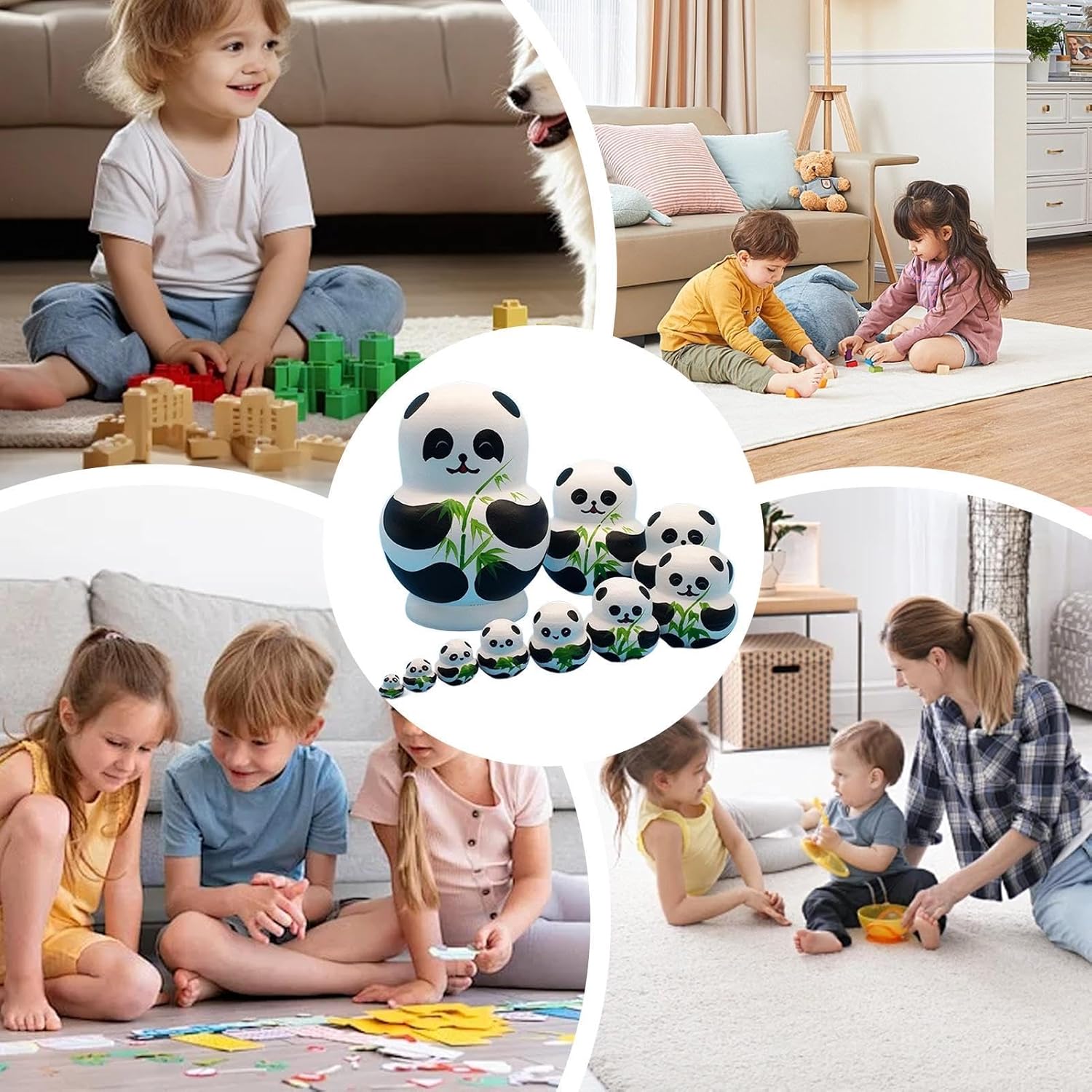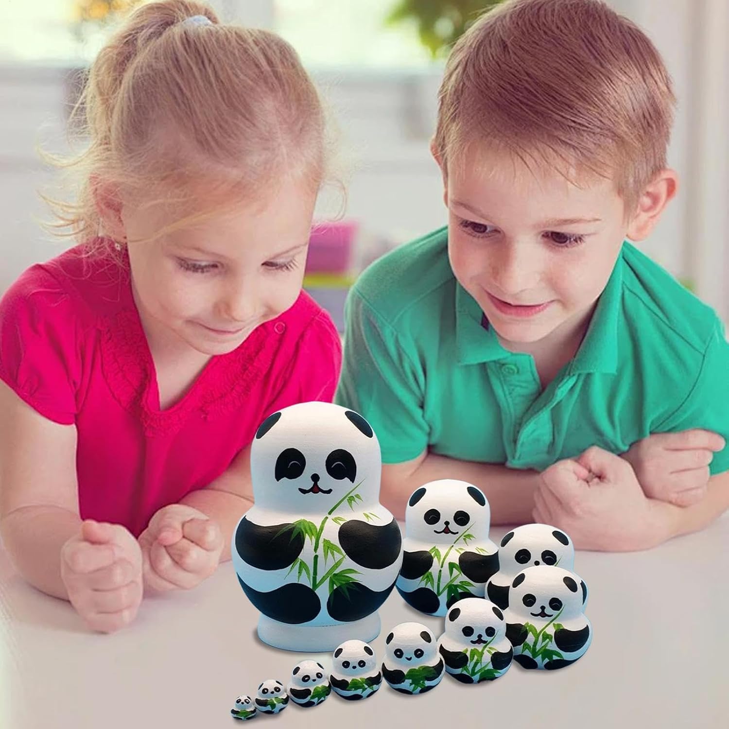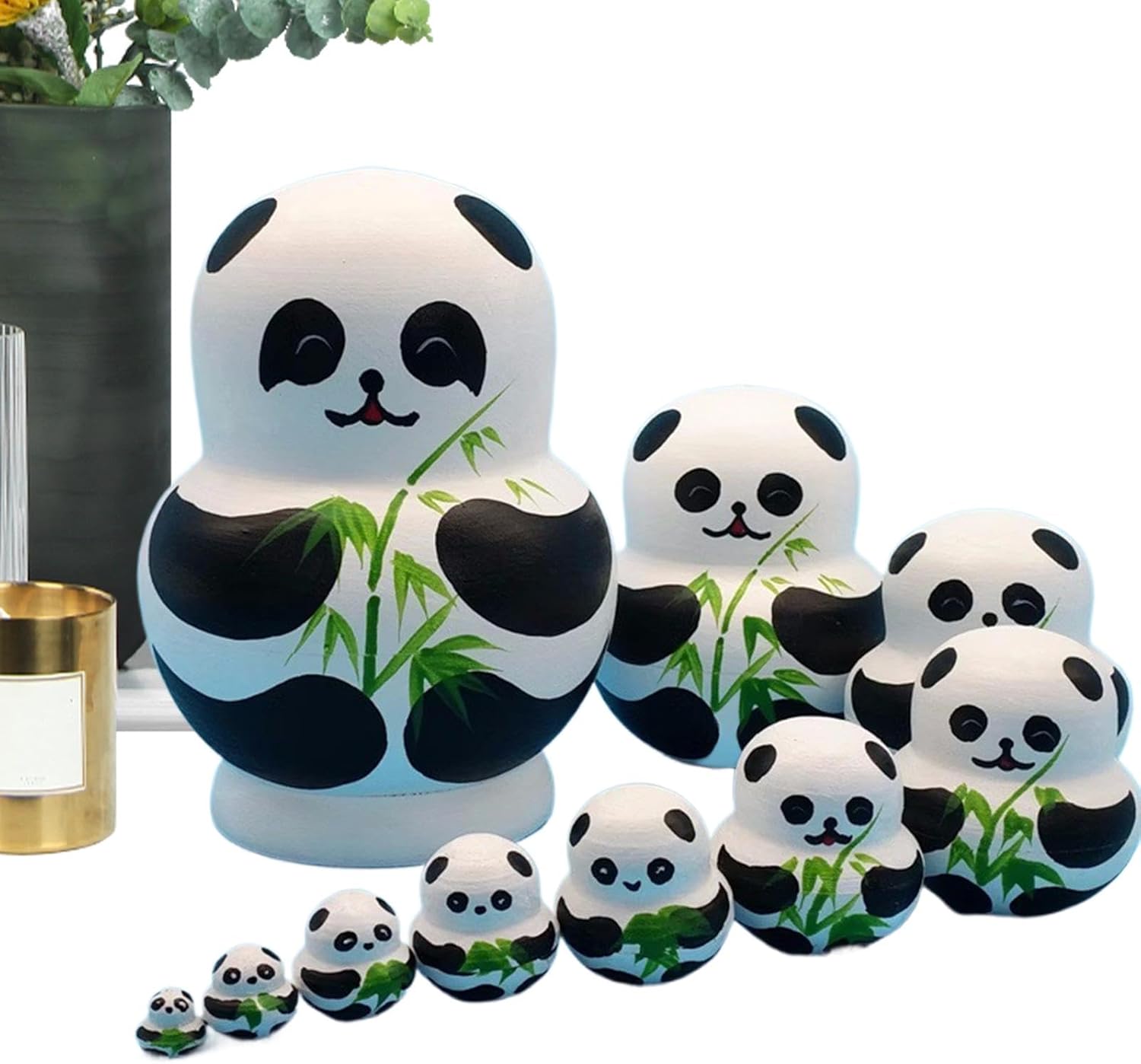 Eccezionale maestria: realizzate con cura a mano in materiale di legno, queste bambole da nidificazione, caratterizzate da una lavorazione perfetta, resistenza e una finitura, miglioreranno l'arredamento della tua casa Aspetto degli animali: porta un tocco di fascino natalizio con le nostre bambole nidificanti. Il loro simpatico aspetto animale, caratterizzato da affascinanti motivi di panda, Babbo Natale, pulcini e anatre gialle, è perfetto per aggiungere un tocco di fantasia a tutto lo spazio Miglioramento delle capacità motorie: queste bambole da nidificazione sono perfette per promuovere le capacità motorie e incoraggiare il riconoscimento dei colori, il tutto stimolando la creatività e l'immaginazione del tuo bambino Delicate decorazioni per la casa: queste bambole che nidificano sono un'aggiunta perfetta a tutto l'arredamento della casa. Con il loro tocco festoso, un'atmosfera unica che si adatta ad ogni angolo della casa. Perfetto per stimolare conversazioni tra gli appassionati di decorazioni per la casa I migliori regali: abbellisci le tue decorazioni natalizie con le nostre intricate bambole nidificanti. Ogni bambola è splendidamente realizzata con grande attenzione ai dettagli, rendendola il regalo perfetto per chiunque apprezzi i giocattoli artistici. Ideale per aggiungere un tocco di eleganza alle occasioni speciali