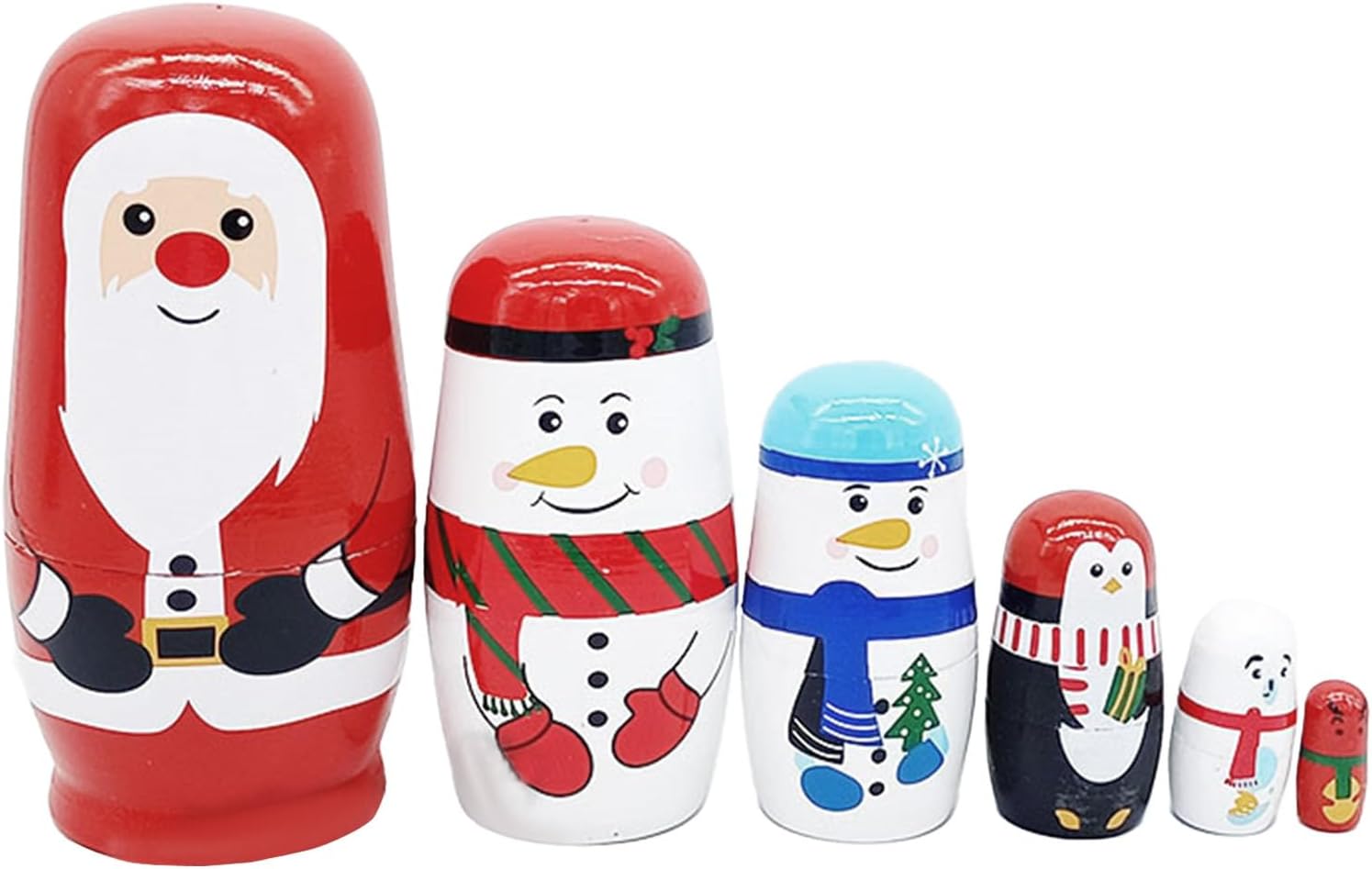 Uso a lungo termine: le nostre bambole da nidificazione natalizie sono realizzate artigianalmente utilizzando legno di alta qualità per mostrare perfettamente la sua struttura . Ogni bambola mostra un'immagine realistica e dettagliata che la rende una straordinaria aggiunta a qualsiasi arredamento festivo Comodo da riporre: questo set di bambole da nidificazione natalizio è facile da riporre e ogni bambola può essere posizionata nella bambola precedente, il che ti offrirà grande comodità, quindi non preoccuparti della sua conservazione Multifunzionali: oltre ad essere utilizzate come astucci o contenitori per piccoli oggetti, queste bambole da nidificazione natalizie sono anche perfette decorazioni per l'albero e ampiamente apprezzate non per la funzionalità ma anche per le case decorative e affascinanti Intensifica la tua celebrazione del Natale: migliora l'arredamento delle tue vacanze con le nostre classiche bambole da nidificazione natalizie, perfette per creare una forte atmosfera natalizia e migliorare la gioia della stagione. Una grande aggiunta alla tua decorazione natalizia che tutti adoreranno Ottimo regalo: stupisci la amata con questo set di bambole nidificanti natalizie, realizzate a mano con cura e perfette per ogni occasione speciale. Una meravigliosa aggiunta a qualsiasi collezione di tesori artigianali