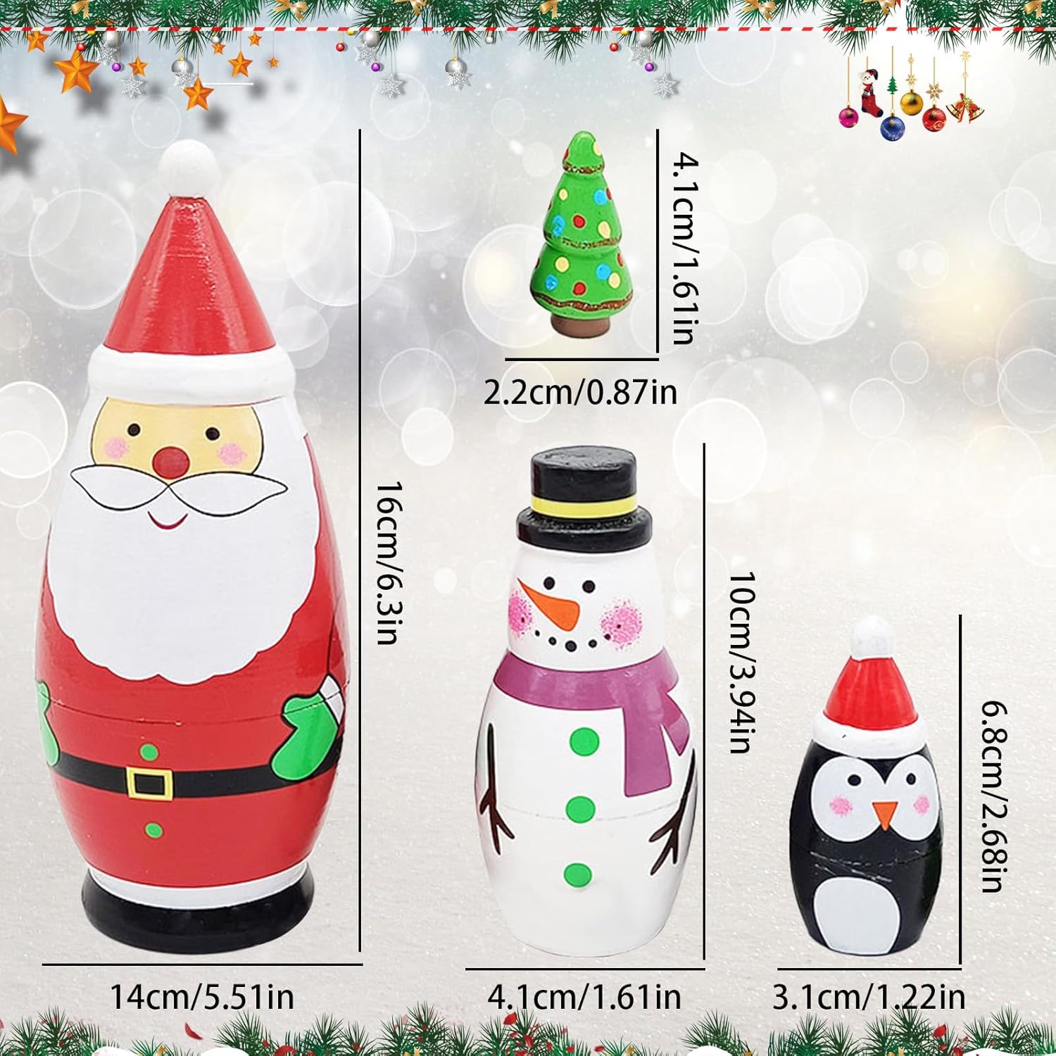 Uso a lungo termine: le nostre bambole da nidificazione natalizie sono realizzate artigianalmente in legno di alta qualità per mostrare perfettamente la loro solida struttura. Ogni bambola mostra un'immagine realistica e dettagliata, rendendola un'aggiunta straordinaria a qualsiasi decorazione festiva. Facile da riporre: non devi preoccuparti di riporre questa bambola giocattolo da nidificazione, ogni bambola può essere inserita nella bambola precedente, il che è molto conveniente. Questo simpatico set di bambole nidificanti natalizie può migliorare le tue decorazioni natalizie. MULTIUSO: non limitare queste bambole da nidificazione natalizie al solo utilizzo come astuccio o per riporre oggetti. Puoi anche aggiungere un tocco di allegria natalizia al tuo albero come decorazioni per l'albero. Non solo per la loro utilità ma anche per il loro fascino decorativo: sono ampiamente utilizzati e amati come versatili decorazioni domestiche Migliora l'atmosfera natalizia: queste bambole sono progettate con amore con un classico tema natalizio e sono i giocattoli natalizi perfetti che creano una forte atmosfera natalizia come decorazione natalizia ideale Ottimo regalo: stupisci i tuoi cari con questo set di bambole nidificanti natalizie, realizzate artigianalmente con cura e perfette per ogni occasione speciale. Una meravigliosa aggiunta a qualsiasi collezione di tesori fatti a mano