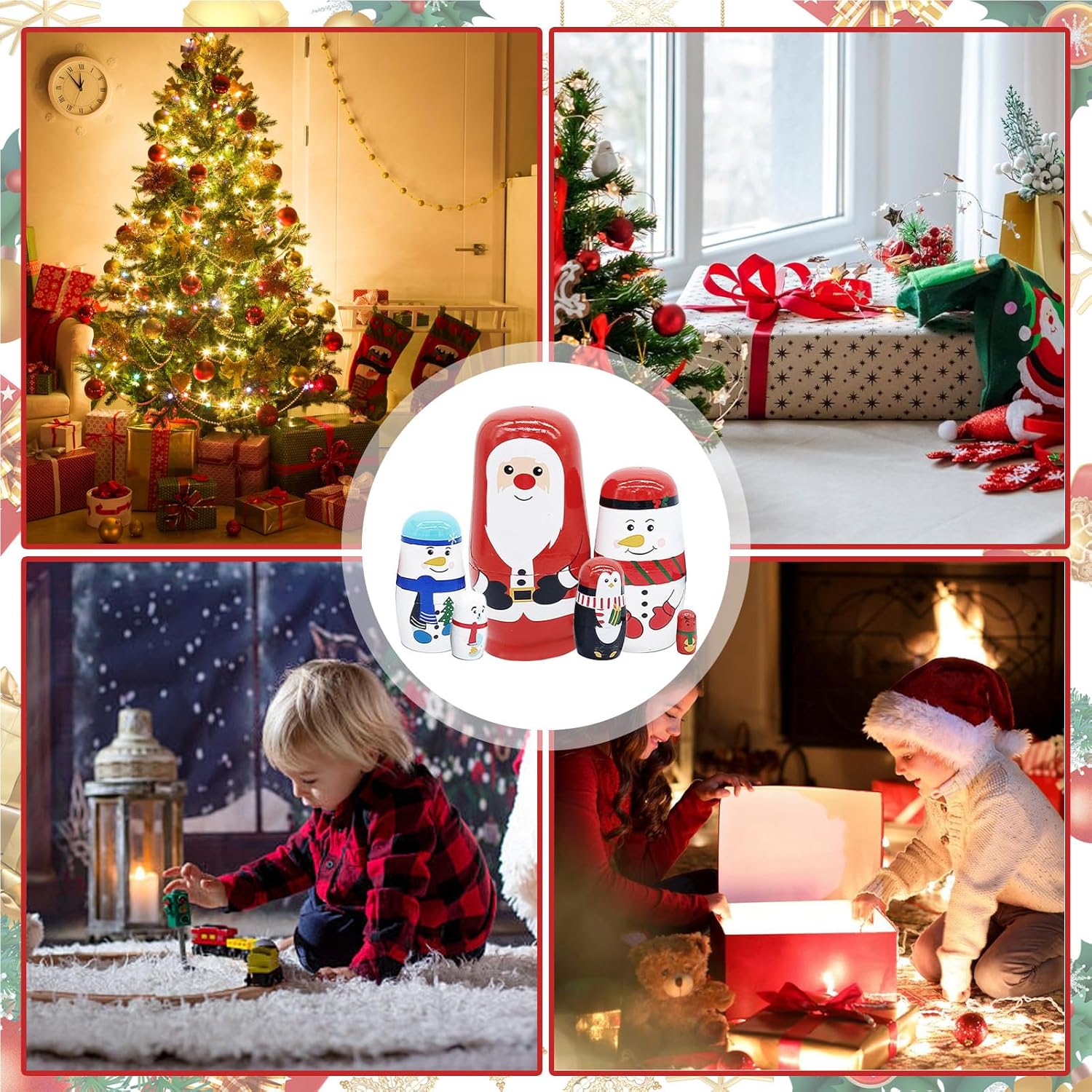 Materiale robusto: queste bambole da nidificazione natalizie mostrano un'immagine dettagliata e realistica di ogni bambola e utilizzano materiale in legno di alta qualità e trame solide. Realizzate artigianalmente per una perfetta decorazione natalizia Facili da riporre: queste bambole nidificanti natalizie hanno adorabili Babbo Natale e simpatici motivi di animali, e ogni bambola può essere posizionata all'interno della bambola precedente, il che è molto comodo per riporle nella scatola portaoggetti Multifunzionale: oltre ad essere utilizzate come astucci o contenitori per piccoli oggetti, queste bambole nidificanti natalizie sono anche perfette decorazioni per l'albero e sono molto popolari nelle case non solo per la loro funzionalità ma anche per il loro fascino decorativo Crea un'atmosfera festosa: migliora le tue decorazioni natalizie con questi adorabili nidificanti a tema natalizio bambole. Queste bambole in legno fatte a mano sono perfette per aggiungere un tocco di fantasia e gioia alle tue decorazioni natalizie e migliorare l'atmosfera festosa per te. Regalo perfetto: delizia qualsiasi collezionista con questo splendido set di bambole nidificanti natalizie, realizzate con cura per un design unico e intricato. Un regalo perfetto per ogni occasione speciale e una meravigliosa sorpresa natalizia per i bambini
