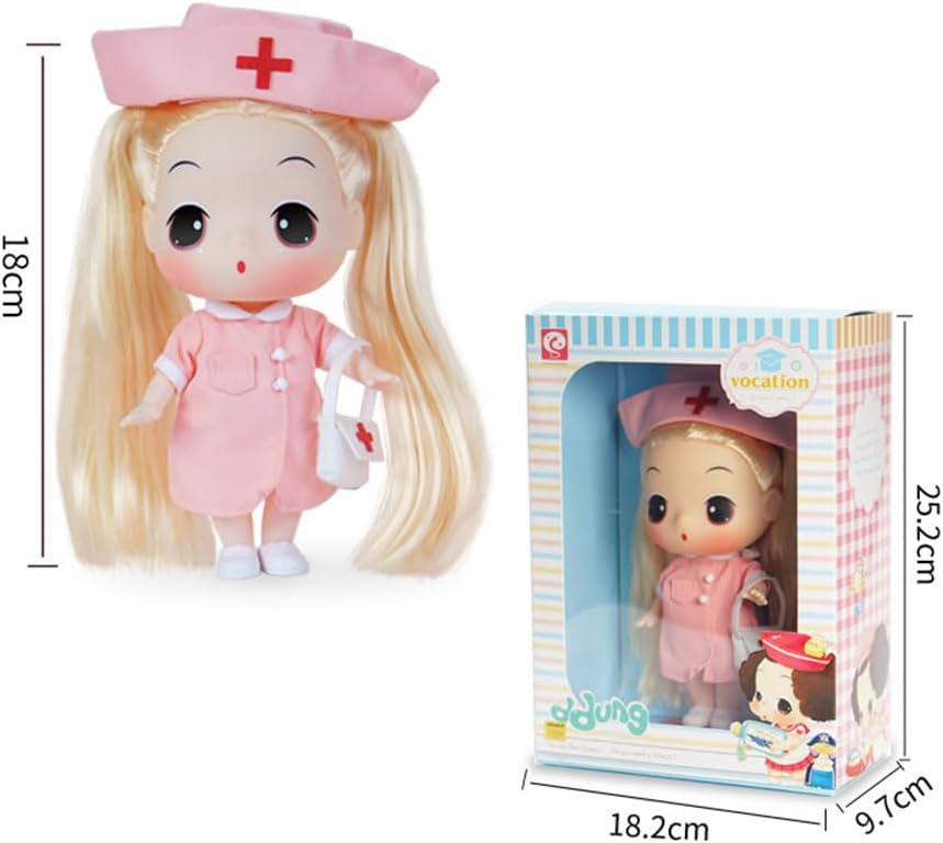 ❤ Dimensioni: L18,2*9,7*25,2 cm (dimensioni della confezione); Altezza della bambola: H18CM (7,09 pollici); Questa dimensione è perfetta per i bambini da tenere in mano e giocare sempre e ovunque. ❤ Questa serie di bambole ha tredici articolazioni che possono muoversi in modo flessibile e le braccia, i palmi, le ginocchia e le piante dei piedi possono ruotare di 360 gradi. Le bambole possono sedersi o sdraiarsi e cambiare diverse posture. ❤ Materiale: plastica + vinile + tessuto; Sicuro e sano, adatto ai bambini da abbracciare. Le bambole in vinile simulato, morbide e confortevoli, fanno sì che i bambini le preferiscano. ❤ Questa bambola alla moda con stili diversi ha un viso delicato e dolce e capelli simulati in nylon di facile manutenzione (che si tratti di vestiti per bambole o accessori), che sono molto belli e fatti a mano. I bambini possono vestire da soli le loro bambole per migliorare e coltivare le loro abilità pratiche. ❤ Occasioni applicabili: molto adatto per regali di festa, regali per bambini, regali di compleanno, regali di Natale. Ogni bambola ha le sue caratteristiche per aiutare i bambini a capirle meglio.