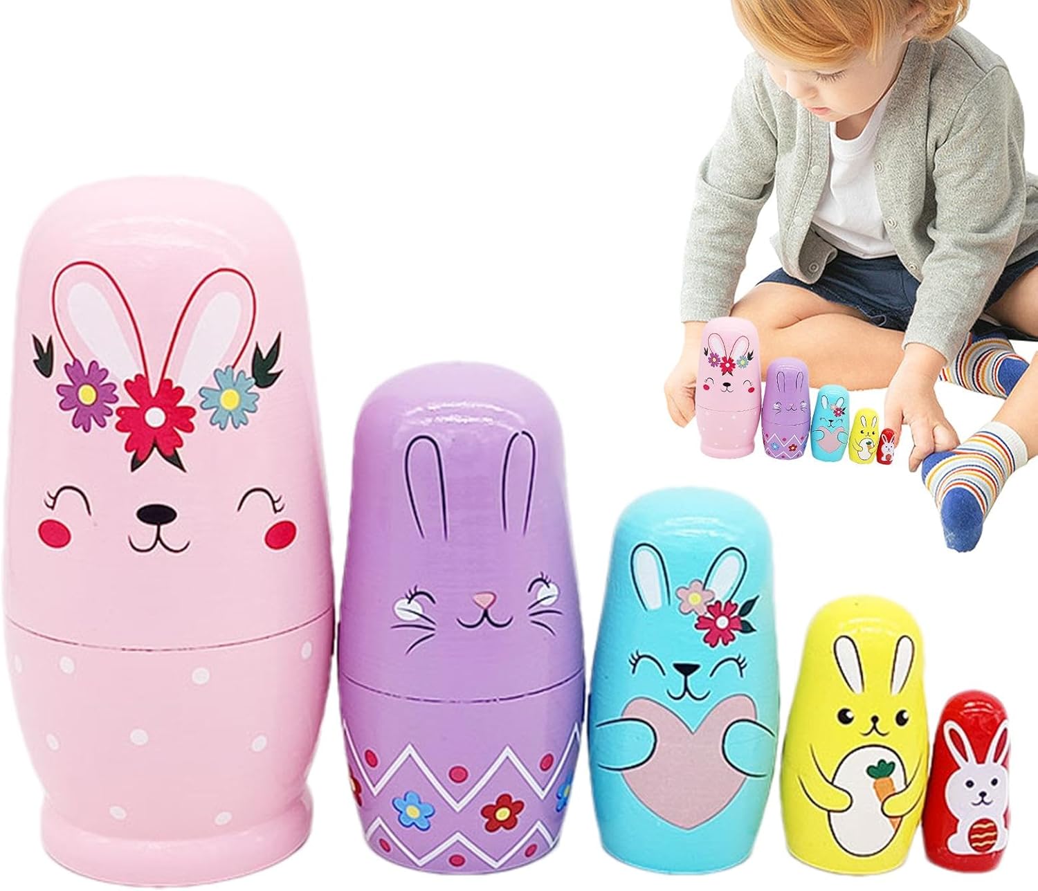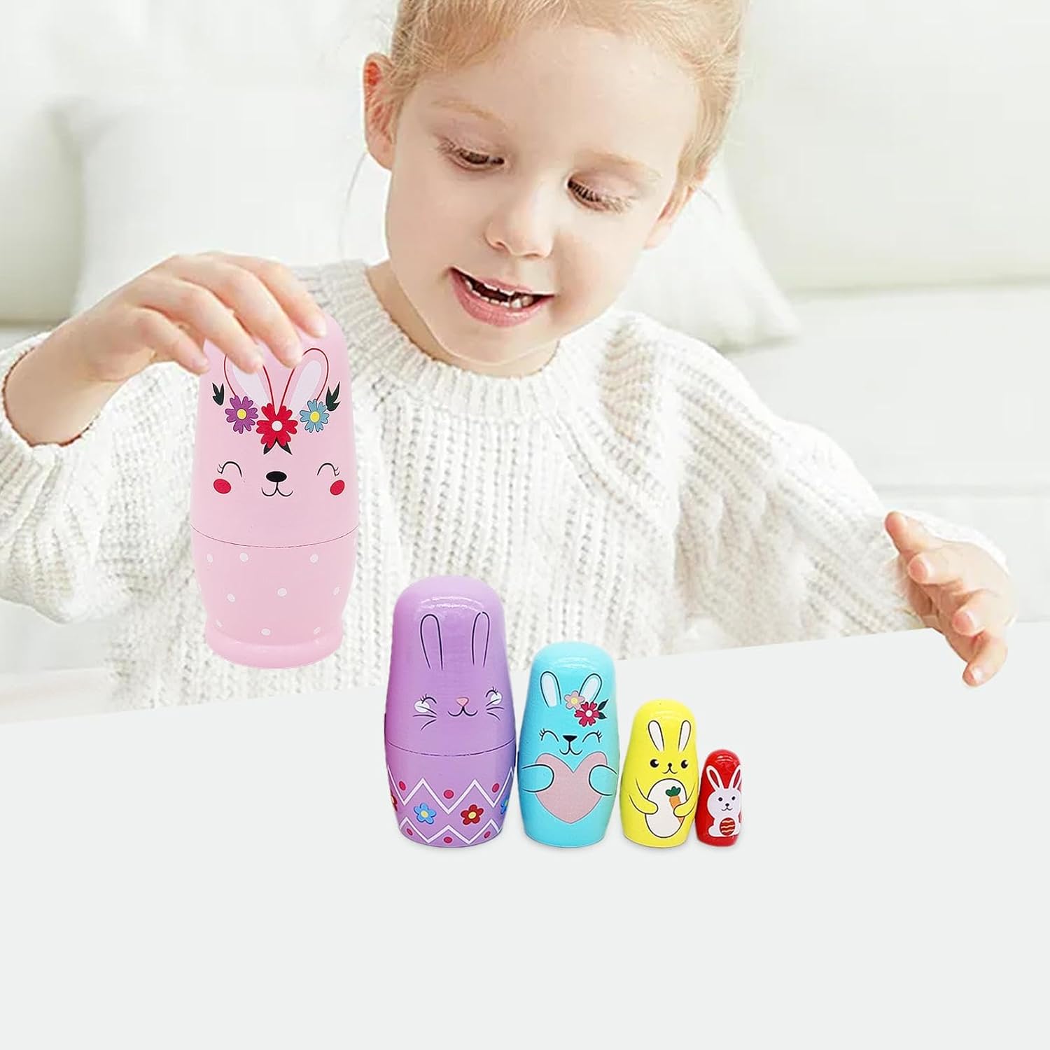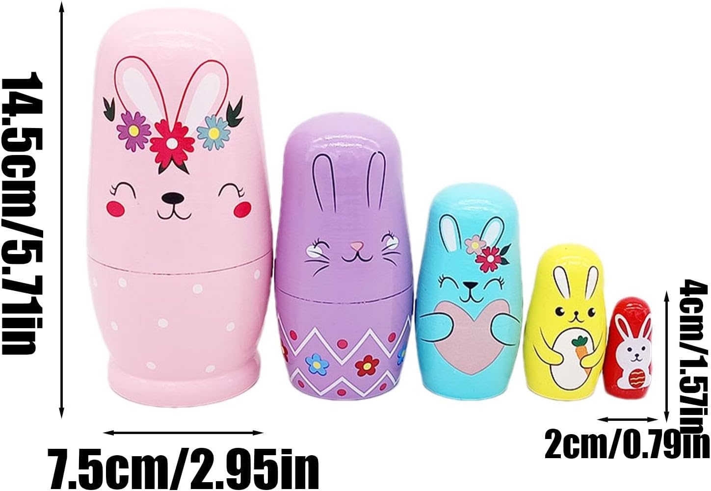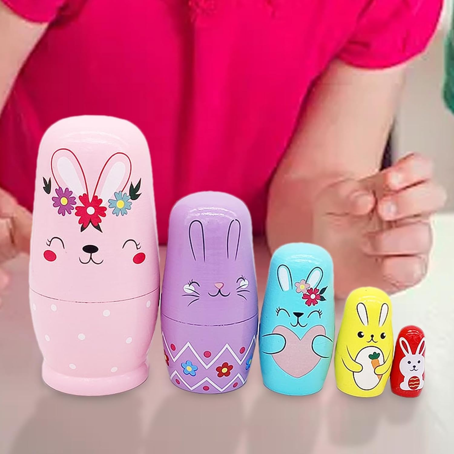 Basto di coniglio fascino: splendidamente progettati con un modello di coniglio, queste bambole vantano un forte fascino, rendendole regali e interessanti per tutte le età Competenze di favola: migliorando lo sviluppo delle competenze, queste bambole nidificanti di coniglio stimolano la concentrazione, migliorano le capacità pratiche e perfezionano le capacità motorie per ispirare la creatività Materiale robusto: le bambole di nidificazione del coniglio sono realizzate con un eccellente materiale in legno che garantisce una qualità duratura, ideale per coloro che trovano bambole nidificate durature e sicure Manutenzione senza sforzo: migliorare la convenienza pulendo senza sforzo con un panno asciutto, mantenendo le bambole nidificanti immacolate; garantisce un design di facile cura. Le bambole di nidificazione del coniglio sono facili da prendersi cura Presente straordinario: ideale per ragazzi e ragazze, queste affascinanti bambole di nidificazione di coniglio rendono speciale qualsiasi vacanza o evento di compleanno - un regalo eccellente, sicuro di deliziare