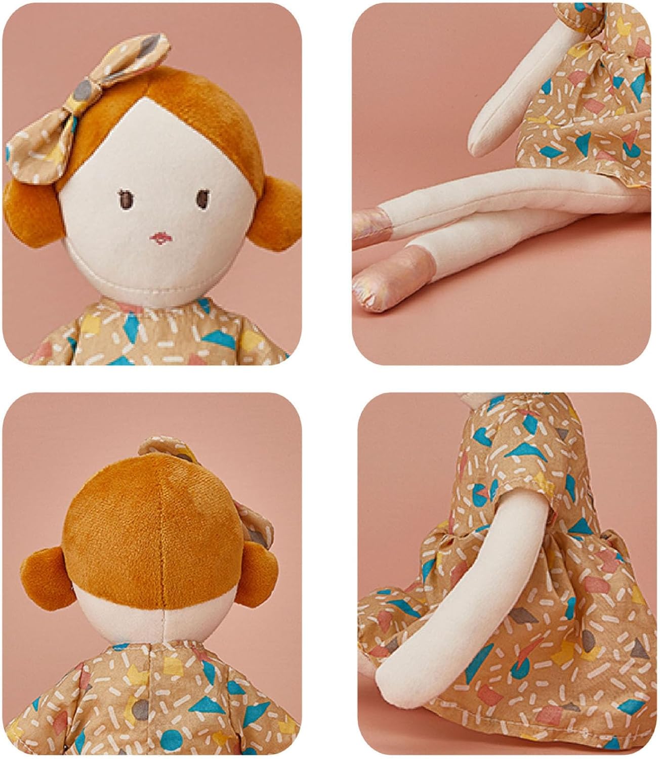Assolutamente sicuro e facile da lavaggio a mano Cute & Cuddly: le bambole sono 15,7 altezza dalle alle dita dei piedi e da 8" seduti, comodi per i bambini e adulti da portare con sé. Ha un abito floreale e un tappo per capelli Bowknot Ottimo regalo: le bambole sono un regalo per ogni occasione come rivelazioni genere, docce per bambini e compleanni. essere utilizzato anche per un pezzo decorativo nel vivaio infantile Buon a tutti i collezionisti bambole piacerà le bambole per bambini, sono compagno perfetto per le bambole per bambini, adolescenti e adulti Braccia e gambe floppy: braccia e gambe floppy sono divertenti da e abbracciare! Realizzato con un robusto ripieno peluche che le garantisce che non deforma facilmente