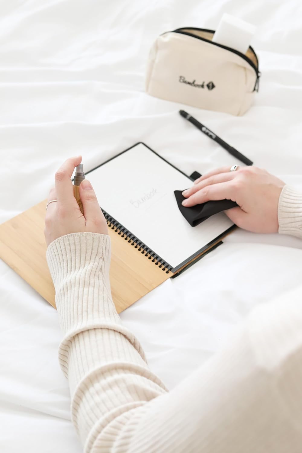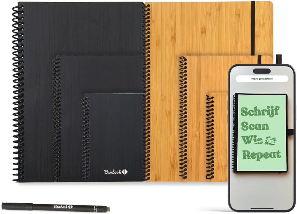 Bambook è il quaderno con lavagna cancellabile. La versione Classic è disponibile con copertina morbida in cartoncino di bambù nero e con copertina rigida in legno di bambù in formato A6. Usa questo taccuino come taccuino, taccuino ad anelli, taccuino, taccuino accademico e diario dei proiettili. Il taccuino riutilizzabile Classic è dotato di rilegatura a spirale per raccogliere le pagine, e di un pratico portapenne laterale che ti permette di avere sempre la tua penna Bambook a portata di mano. Scansiona e digitalizza i tuoi appunti con l'app Bambook. Archivia istantaneamente tutte le tue informazioni importanti e contribuisci a un futuro sostenibile e senza carta. Personalizzato, pratico ed ecologico. Contiene una penna Bambook gratuita. Queste penne hanno uno spessore di scrittura di 0,6 mm e l'inchiostro è nero. Sul retro del pennarello si trova una gomma per piccole correzioni nei tuoi taccuini. Il taccuino Bambook è un taccuino con pagine cancellabili. Ideale per schizzi, appunti ed elenchi temporanei di cose da fare. Completamente cancellabile e riutilizzabile. Pianta 1 albero per ogni taccuino Bambook. Copertina rigida