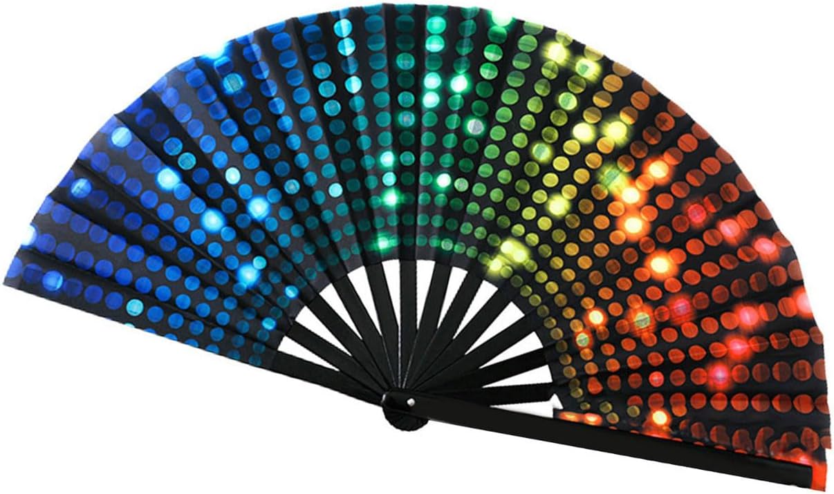 Questo ventole multiuso funziona come strumento raffreddamento che come accessori decorativi luminosi, con articolazioni rinforzate per durata della ondata ritmica Essenziale per appassionati festival, i bambini e artisti cosplay che cercano distinguere accessori per l'autoespressione Perfetto per festival musicali all'aperto, feste a tema, convenzioni eventi danza che richiedono soluzione rilievo calore portabilità Rave pieghevoli pieghevoli ventilatore da ventola da leggero e tessuto reattivo, espandi a 26 pollici per visibilità per catturare occhi all'evento affollato Caratteristiche precise design pieghevole a 33 cm con lucido a mano costole e motivo fluorescente vibrante che pulsa sotto le luci nere