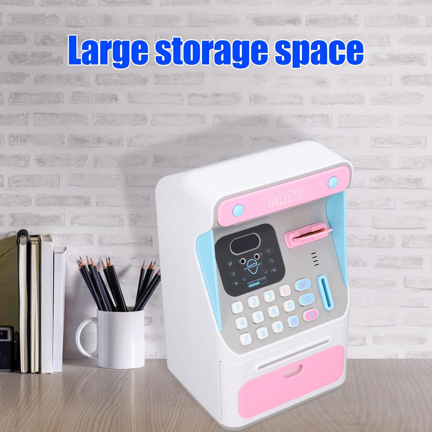 [Banca di grandi capacità] La banca dei soldi per bambini vanta una grande capacità che può contenere fino a 600 monete o 100 banconote, rendendolo una scelta ideale per i bambini che stanno imparando a risparmiare denaro. Il suo design spazioso incoraggia i giovani risparmiatori a sviluppare presto abitudini di salvataggio disciplinate. Questa banca di denaro per i risparmi bancomat non è un giocattolo; È strumento educativo che insegna la responsabilità finanziaria in modo divertente [Sicurezza per la password] Dotato di una funzionalità di password a cifre, questa banca bancomat per bambini garantisce che il risparmio di tuo figlio rimanga sicuro. La password predefinita è impostata su 0000, ma può essere modificata facilmente in qualsiasi combinazione di tua scelta. Se la password viene inserita in modo errato, la macchina rimane bloccata, fornendo un ulteriore livello di sicurezza che imita esperienze bancarie nella vita reale per tuo figlio. [ di riconoscimento del volto divertente] La banca di denaro per il risparmio bancario presenta una funzione innovativa di riconoscimento del viso che migliora l'esperienza dell'utente, rendendola un straordinario per i bambini. Questa caratteristica coinvolgente rende il risparmio di denaro eccitante e interattivo, catturando l'attenzione di tuo figlio mentre imparano il valore della gestione del denaro. [Bobina automatica a banconote] I bambini adoreranno la bobina automatica di banconote su questo macchina per banche di denaro. Basta posizionare una banconota sulla bobina e verrà disegnata senza intoppi e automaticamente nel dispositivo. Questa interazione pratica affascina i bambini e li tiene coinvolti nel loro percorso di educazione finanziaria, rendendo il processo di salvataggio sia pratico che divertente. [Materiale sicuro ed ecologico] Costruito in plastica ecologica, la banca ATM di risparmio per bambini è per il tuo bambino e consapevole dell'ambiente. La sua costruzione robusta e robusta garantisce la longevità mantenendo gli standard di sicurezza. Questa banca di denaro è un'ottima scelta di deposito per i bambini, che combina valore educativo con la sicurezza e la responsabilità ambientale.