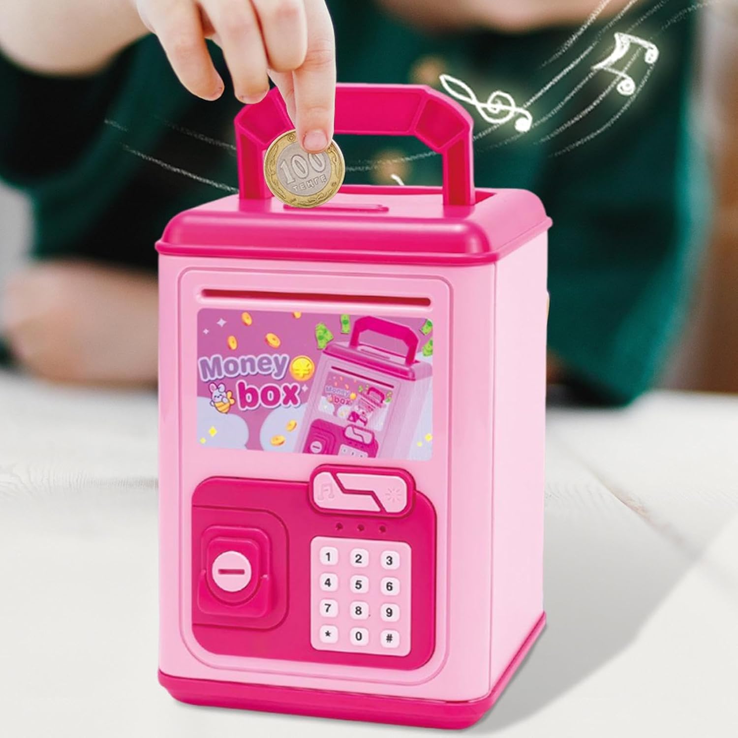 Divertimento di risparmio integrato: affascina i giovani utenti con melodie interattive innescate dai depositi di monete, motivandoli a risparmiare mentre si godono un processo giocoso e coinvolgente Pratico da usare: consente il rotolamento automatico della carta moneta tramite l'assunzione attivata dal sensore, fornendo un modo senza soluzione di continuità per conservare monete e banconote insieme con il minimo sforzo durante i depositi Materiale di alta qualità: realizzato con ABS ecologico ad alta resistenza, che garantisce integrità di lunga durata, perfetta durata e resistenza costante all'usura e agli urti Responsabilità finanziaria Starter: Insegna il valore del risparmio promuovendo parsimonia e disciplina, promuovendo abitudini regolari per costruire la consapevolezza precoce del denaro e incoraggiare la responsabilità finanziaria permanente nei bambini Regalo eccellente: un regalo perfetto per le festività e un regalo premuroso per compleanni, adatto per festival, celebrazioni e come sorpresa pratica ma divertente per i bambini, rendendolo ideale per presentare occasioni