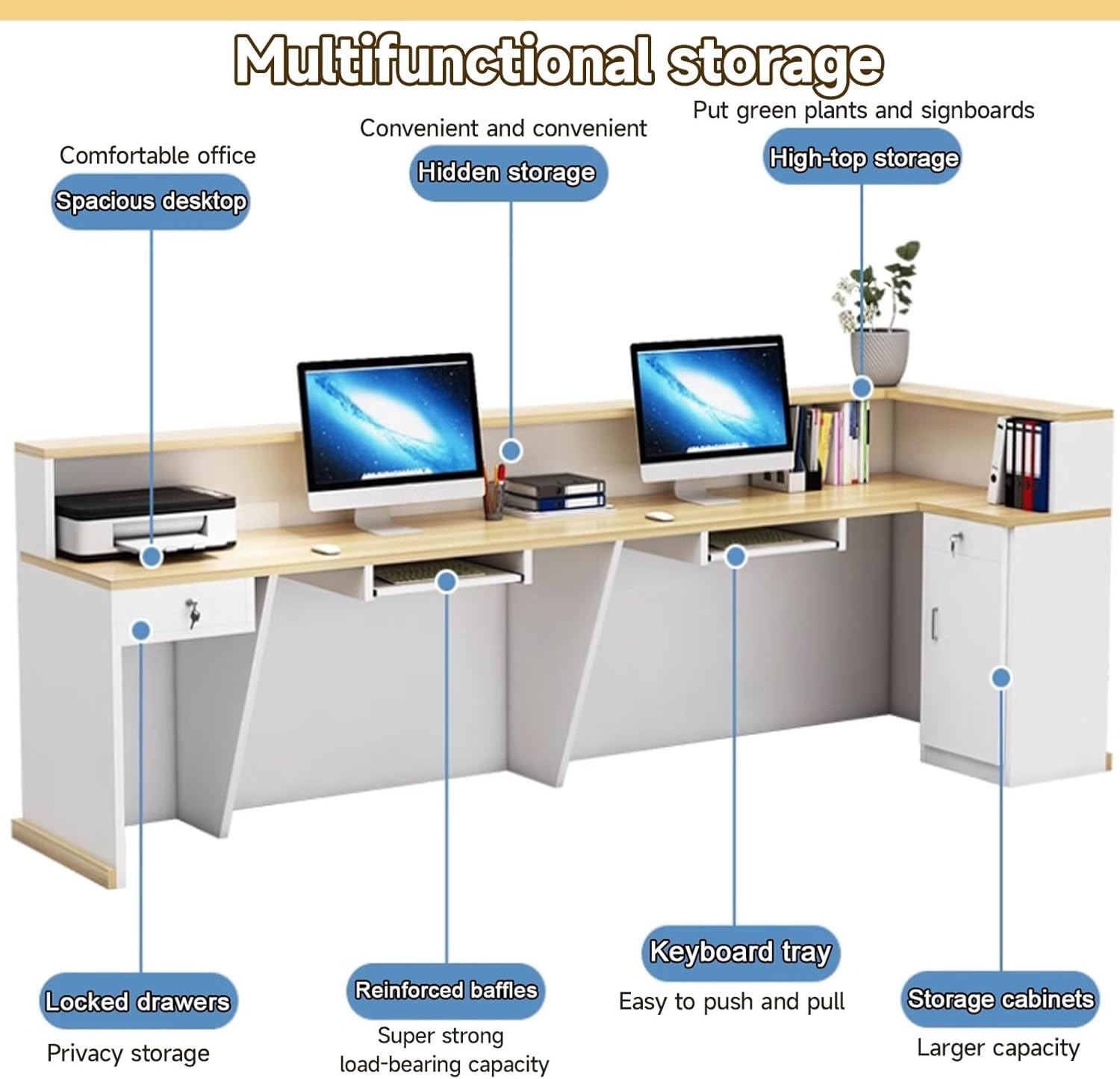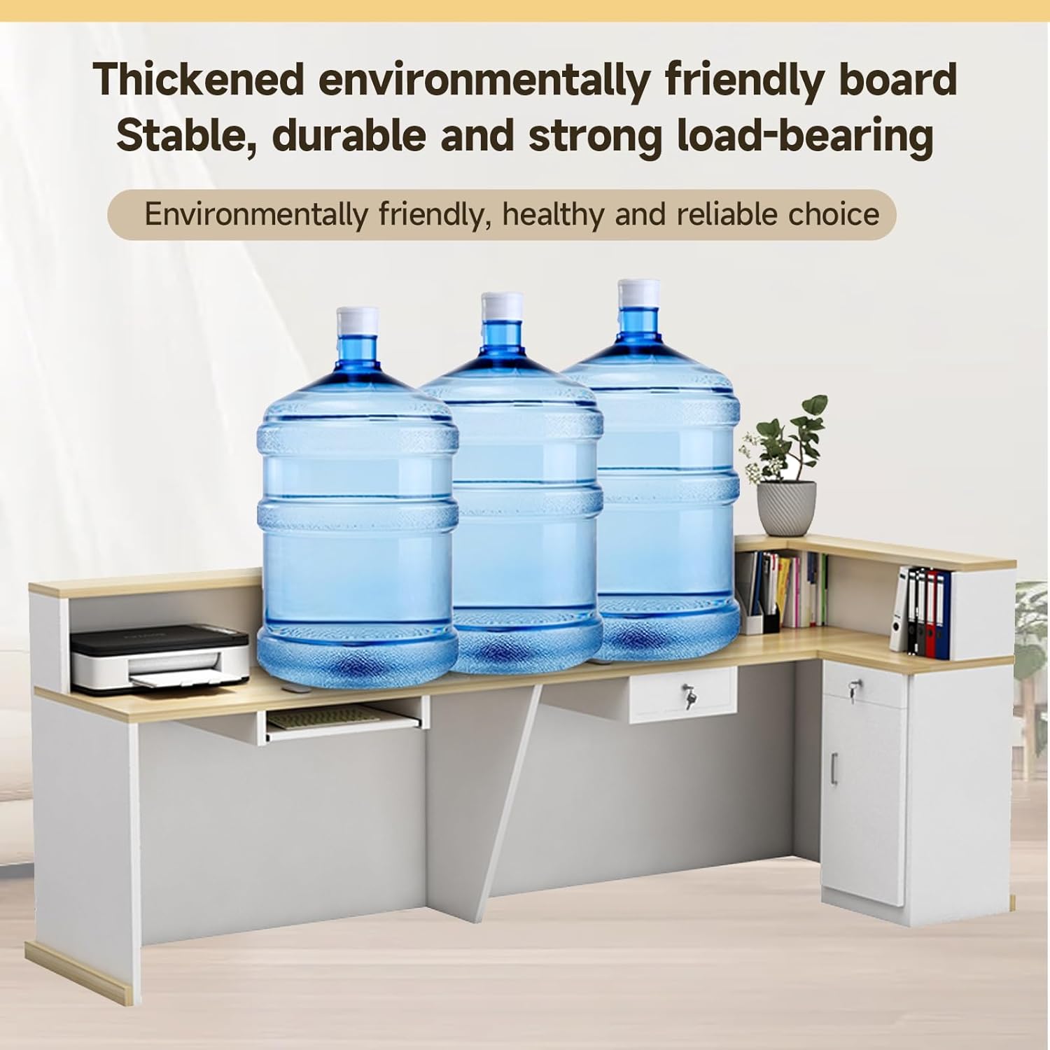 Moderno registratore di cassa con ampio design desktop. Layout accuratamente analizzato per una maggiore usabilità. Dispone di fori filettati nascosti per mantenere il cablaggio organizzato, eliminando il disordine. Offre ampio spazio di archiviazione con design multistrato per un facile accesso. Un design semplice ma elegante che eleva il comfort dell'ufficio. Perfetto per ambienti di vendita al dettaglio e ospitalità. Migliora il tuo spazio commerciale con il nostro Modern Reception Desk. Caratterizzato da un'illuminazione ambientale migliorata e un design elegante, questo elegante bancone presenta linee semplici e materiali ecocompatibili. Non solo migliora l'estetica del tuo negozio, ma garantisce anche privacy e sicurezza personale. Ideale per creare un'atmosfera accogliente, questa reception è un'aggiunta perfetta a qualsiasi azienda. Il nostro Banco Reception per Supermercati è ideale per vari ambienti e spazi multifunzionali. Il suo design pulito e semplice si fonde perfettamente in uffici, ingressi, negozi e aree di accoglienza. Facile da montare: la guida illustrata e i componenti chiaramente etichettati rendono l'installazione un gioco da ragazzi. Perfetto per migliorare l'aspetto professionale in qualsiasi ambiente. 【 salvaspazio】Questo ne reception con ne amplia lo spazio del tuo ufficio, offrendoti più soluzioni di archiviazione in modo ordinato e con diverse modalità di archiviazione. È dotato di un cassetto con serratura e di un ripiano per tastiera. Il cassetto con serratura può essere utilizzato per riporre oggetti personali e il ripiano per tastiera può essere senza estratto problemi. 【Multiuso】Il nostro ne reception per supermercati è adatto a vari scenari e spazi multifunzionali. Sarà la tua facciata impeccabile in ogni situazione. Il design e chiaro si integra perfettamente in vari ambienti come uffici, hall, negozi e sale di ricevimento. Facile da montare: la guida illustrata e i componenti chiaramente contrassegnati ti aiuteranno a montare facilmente questo mobiletto.