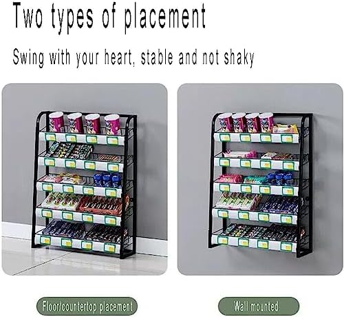 Realizzato in acciaio laminato a freddo di alta qualità con spruzzatura elettrostatica, questo scaffale è resistente all'usura e durevole per un uso duraturo. Dispone di ripiani a cinque livelli con design a griglia laterale per evitare che gli oggetti cadano, rendendolo ideale per organizzare snack o altri oggetti in vari spazi. Incorpora un design a corno a braccio e artiglio per una struttura stabile, consentendo al ripiano di essere posizionato piatto o inclinato per soddisfare le diverse esigenze di visualizzazione. Facile da montare e utilizzare, con particolare attenzione alle funzionalità; per qualsiasi richiesta, l'assistenza clienti è prontamente disponibile per assistere con l'installazione o domande. Aiuta a mantenere una casa organizzata o un negozio inserendosi in spazi inattivi o spazi vuoti, migliorando l'efficienza di archiviazione e mantenendo le aree pulite e ordinate.