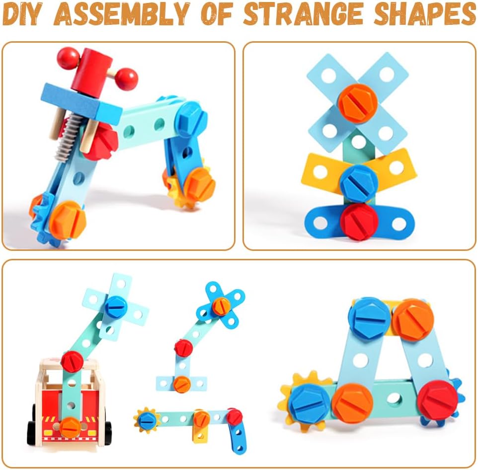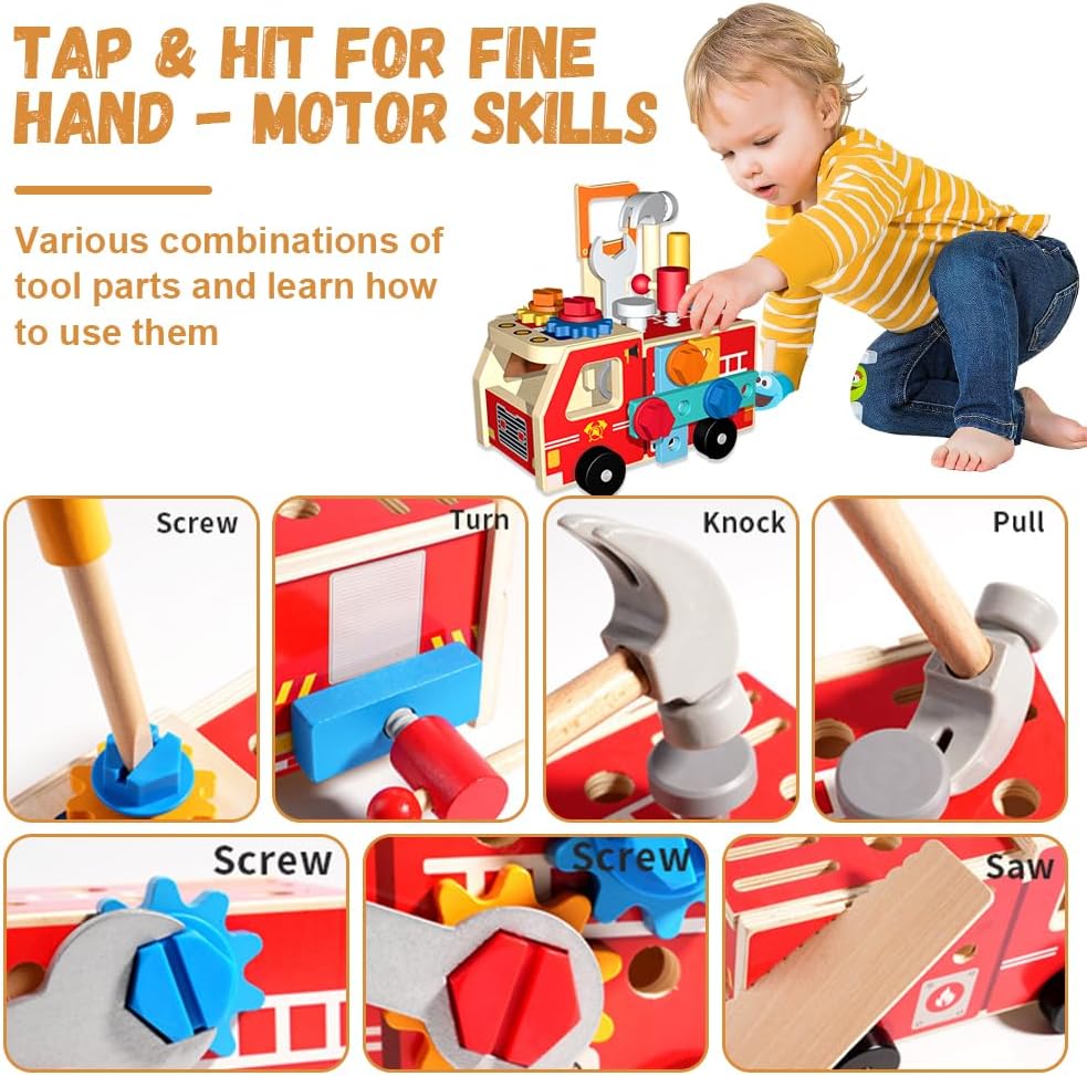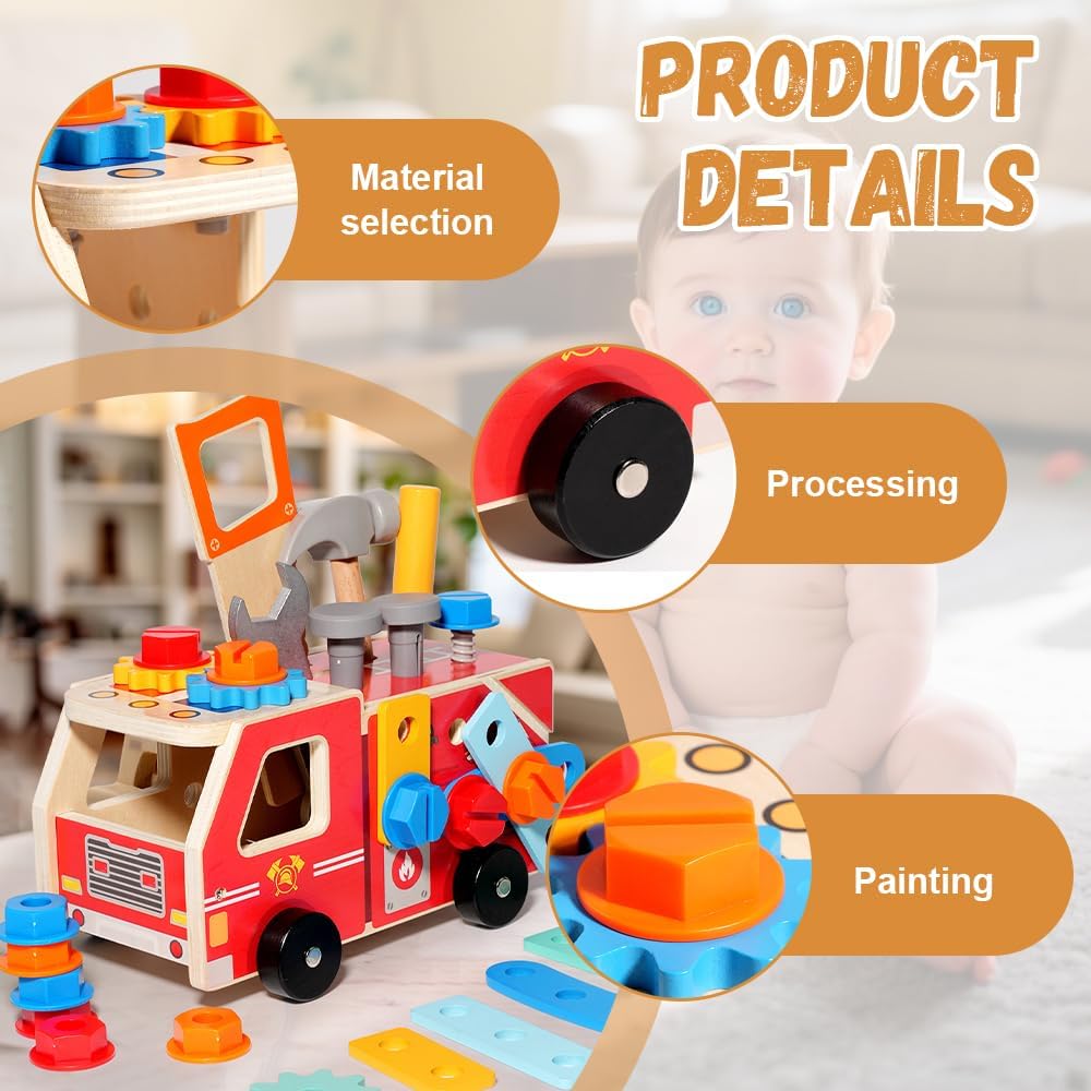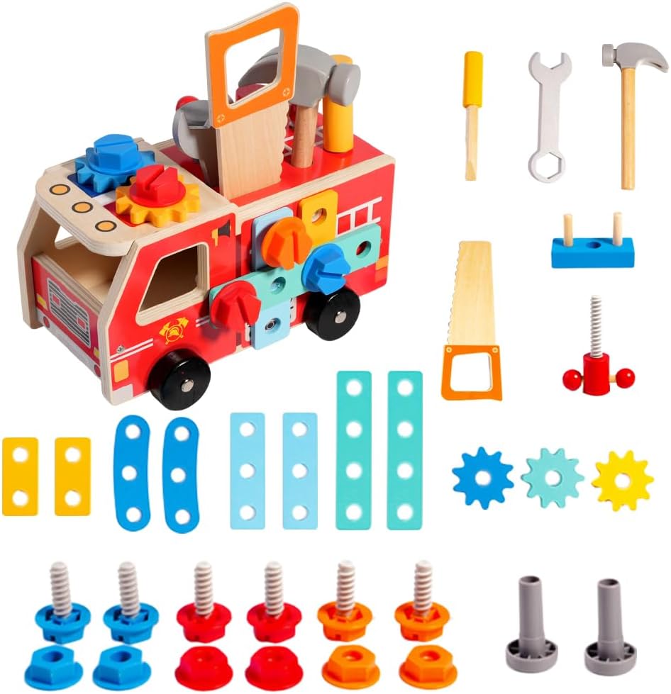 【Giocattolo in legno Montessori】La macchinina in legno Montessori offre una vasta gamma di attività per i bambini piccoli. I bambini possono piantare chiodi, avvitare viti, ecc. senza usare veri attrezzi e senza ferirsi accidentalmente. Il banco da lavoro per bambini offre ai più piccoli infinite opportunità di gioco e apprendimento, migliorando le loro capacità pratiche e promuovendo la motricità fine. I giocattoli Montessori sono più adatti ai bambini dai tre anni in su. 【Set di attrezzi in legno da 32 pezzi】La cassetta degli attrezzi per bambini contiene una vasta gamma di accessori, tra cui viti, chiavi inglesi, chiodi, parti di treni dei pompieri, un martello, un cacciavite e chiodaie. Il banco da lavoro multifunzionale per bambini è adatto come giocattolo Montessori per bambini. 【Giocattolo educativo con cassetta degli attrezzi】Ogni piccolo ingegnere sogna di costruire il proprio giocattolo. I bambini possono assemblare vari giocattoli come divani, auto da corsa, ecc. partendo da piccole parti. La manipolazione di utensili e componenti stimola le capacità motorie fini, la coordinazione occhio-mano e la capacità di problem solving dei bambini, stimolandone l'immaginazione. 【Materiali di alta qualità】 Il banco da lavoro per bambini è realizzato in legno di alta qualità, liscio e senza sbavature, garantendo un'esperienza di gioco sicura per i più piccoli. Il carrello portautensili presenta una varietà di colori vivaci e accattivanti, e la grafica è chiara e resistente allo sbiadimento, attirando l'attenzione dei bambini e stimolandone lo sviluppo visivo. 【Regalo squisito】 Progettata per bambini dai 3 anni in su, la cassetta degli attrezzi per bambini offre il perfetto equilibrio tra sfida e divertimento per tenerli occupati e intrattenuti. Adatta come regalo per il 2°, 3°, 4°, 5° e 6° compleanno per bambini e bambine, come regalo di Natale, come regalo per la scuola materna, ecc.