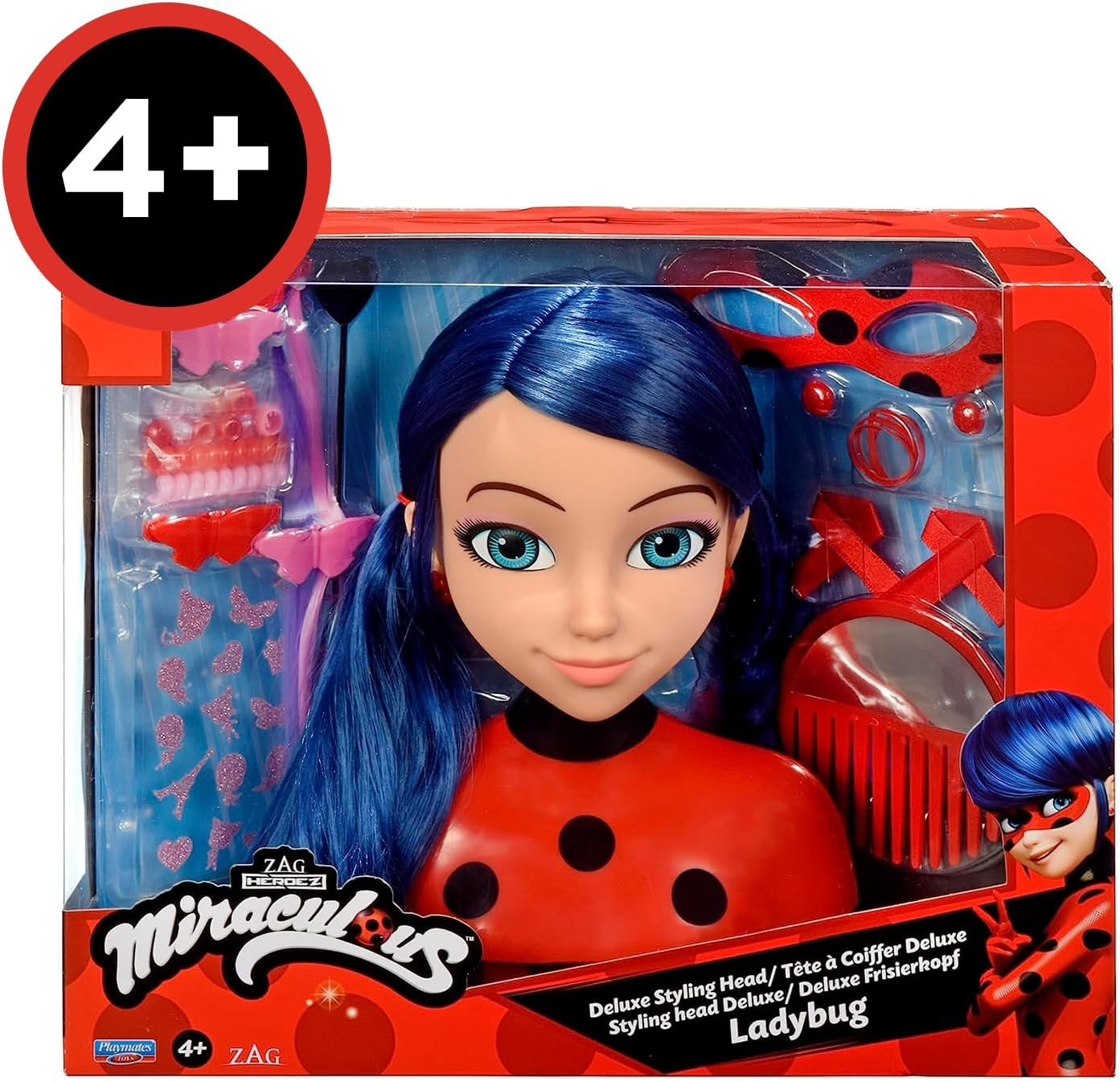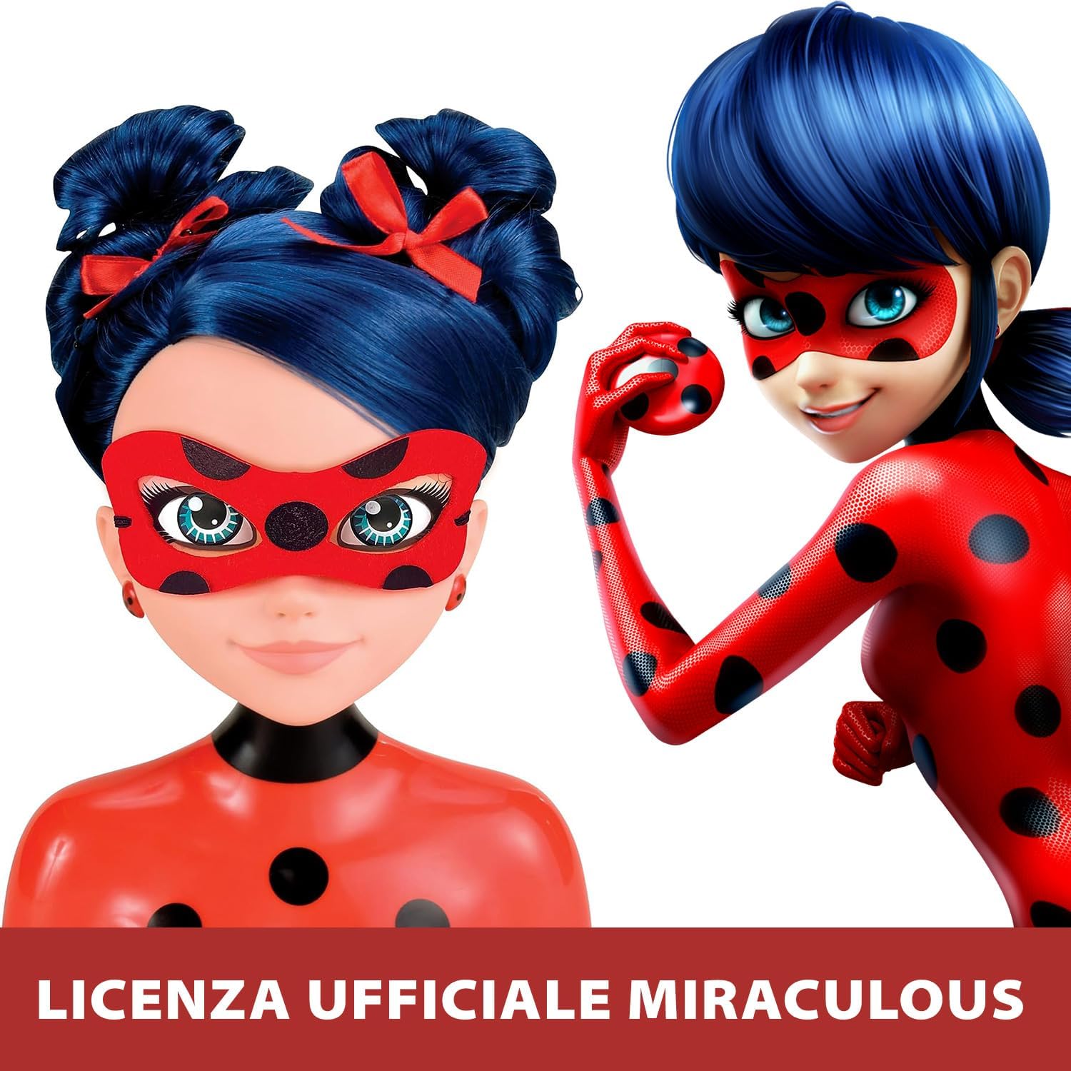 LICENZA UFFICIALE - Crea nuove acconciature per Marinette, l’eroina della serie, con la testa da pettinare Miraculous Deluxe. Che aspetto daranno i tuoi figli a Marinette oggi? FACILE DA USARE - Testa da pettinare di Marinette da 21 cm, un formato ideale per facilitare la presa da parte dei bambini. 30 ACCESSORI INCLUSI - Contenuto della confezione: 1 testa da pettinare di Marinette + 30 accessori, tra cui 1 pettine a specchio, 2 extension colorate dei capelli, 2 elastici per capelli, 2 mollette per capelli, 2 nastri, 2 spirali per capelli, 1 paio di orecchini rossi + 1 paio di orecchini rosa, 12 sfere + 1 applicatore, 1 maschera di Ladybug e 1 foglio di sticker luccicanti da applicare sul viso di Marinette. ACCONCIATURE CREATIVE - Infinite possibilità di look grazie ai lunghi capelli di Marinette e agli accessori. Giocattolo ideale per riprodurre le acconciature di Marinette viste nella serie Miraculous e per sviluppare la creatività dei bambini. Adatto a bambini a partire da 4 anni. COLLEZIONE MIRACULOUS - Scopri l'intera gamma di giocattoli Miraculous di Bandai: universo di gioco, bambole articolate da 26 cm, mini-bambole da 12 cm, peluche kwami, testa da pettinare di Marinette, kit di trasformazione e accessori.