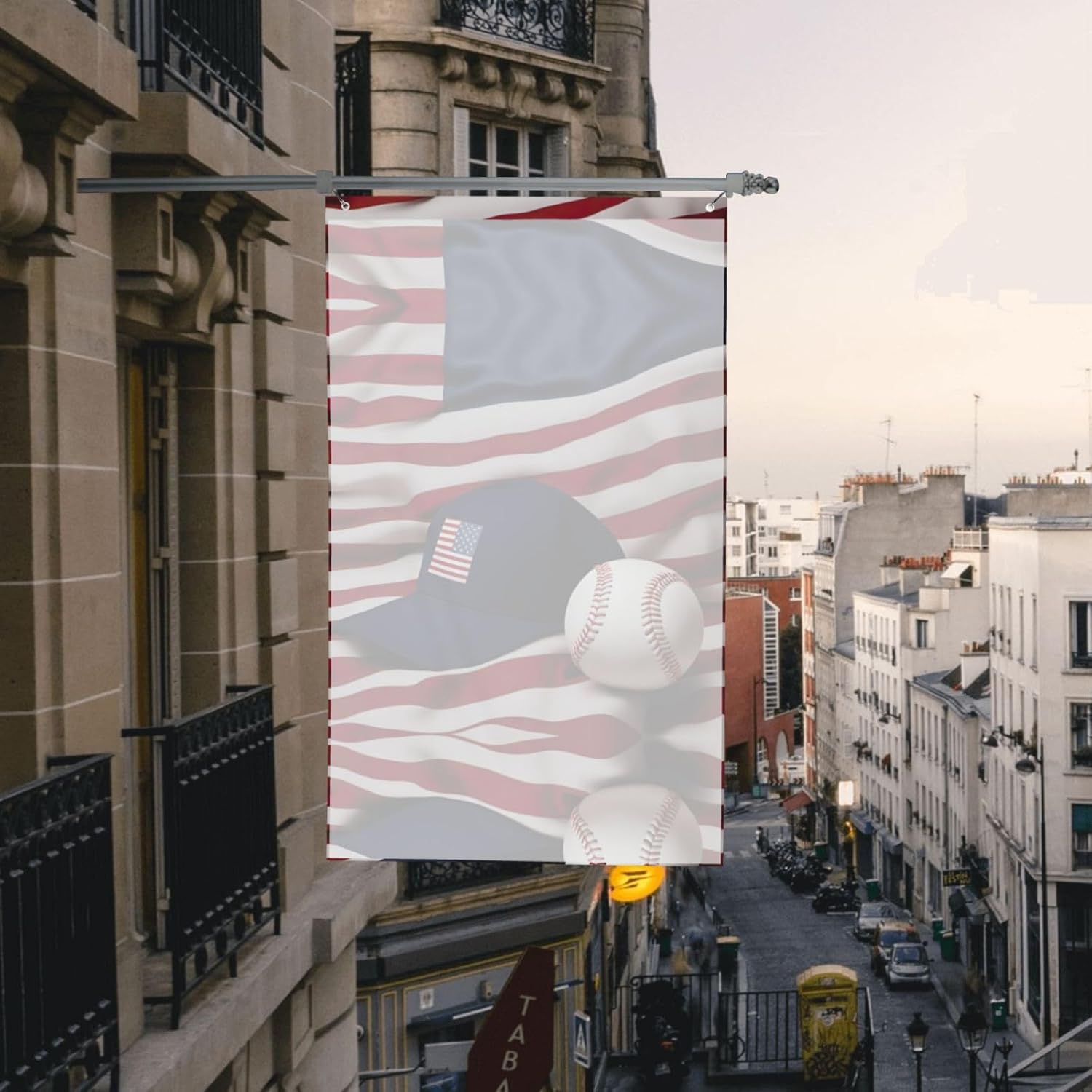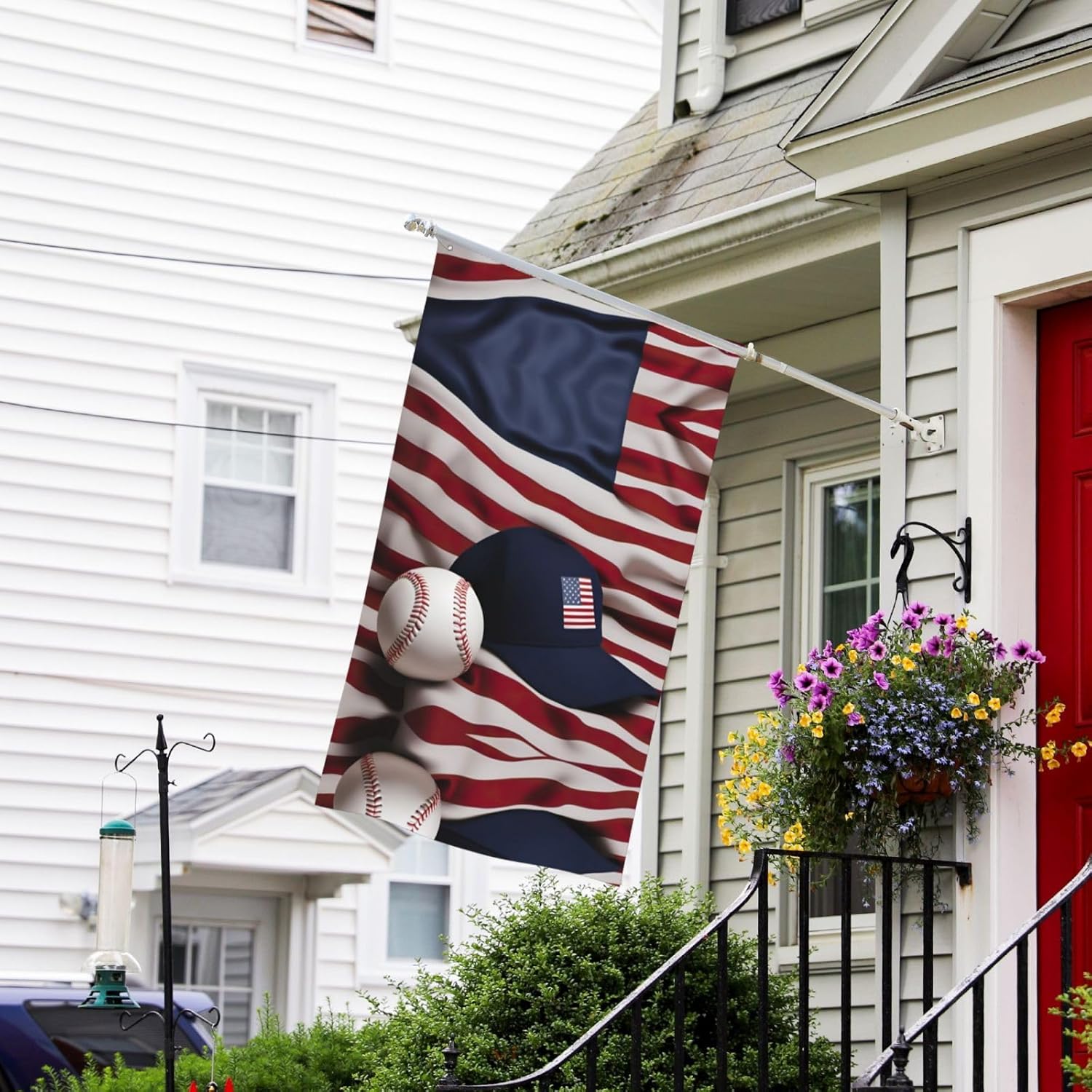 Bandiera americana e baseball Decorazione esterna Cortile Patio Compleanno Laurea Bandiere per feste Banner 3 piedi x 6 piedi