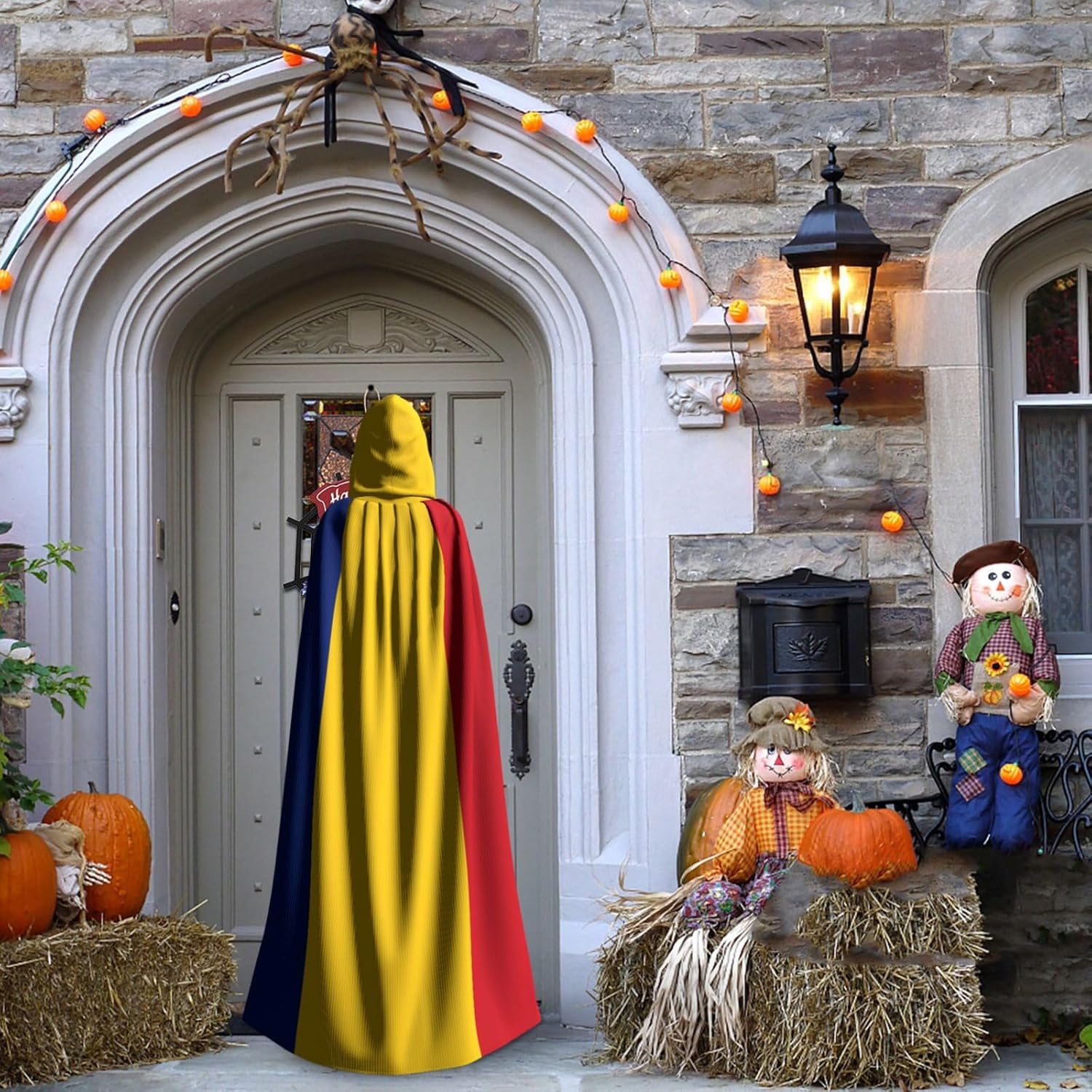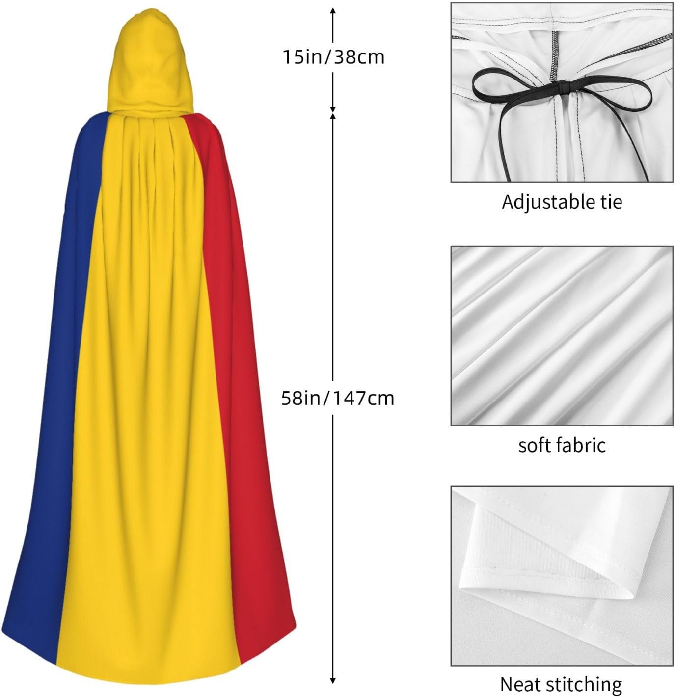 Bandiera della Romania Mantello con cappuccio per adulti di Halloween con mantello oversize con cappuccio, è con papillon, senza cerniera, adatto per Halloween, costumi cosplay, costumi da palco, mascherata, feste a tema, balli, fumetti, ecc. Può essere utilizzato per feste, martedì grasso, Halloween, feste in costume e molto altro ancora.