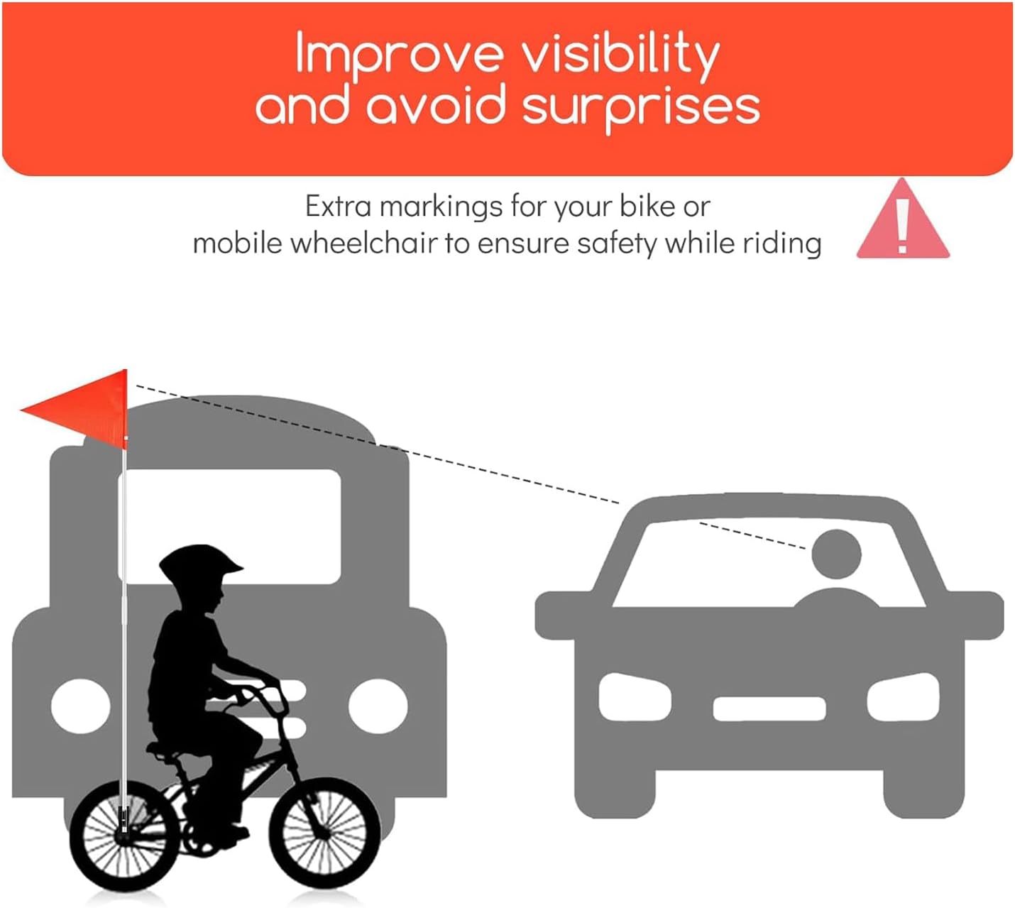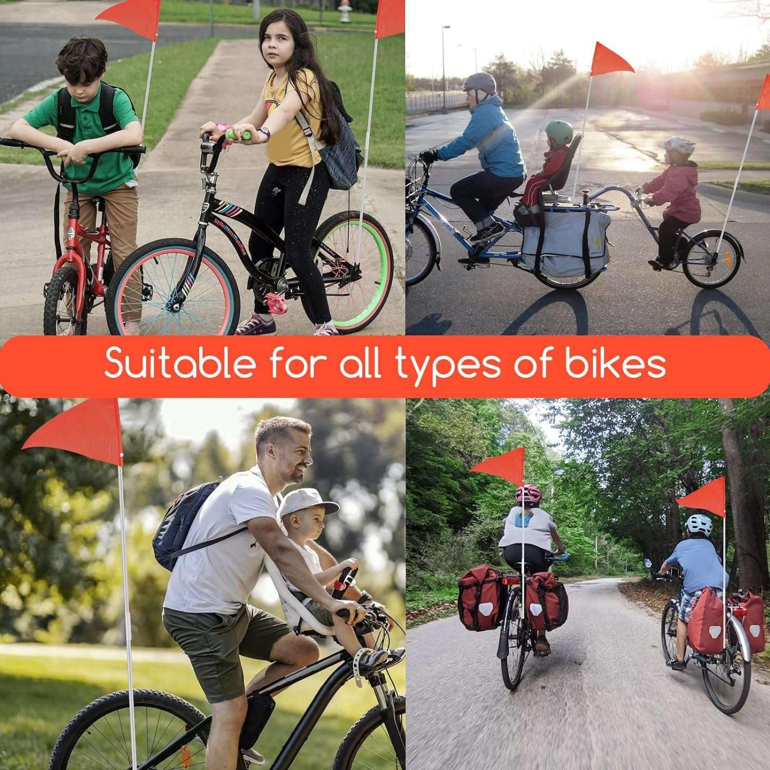 Adatto alla maggior parte dei modelli di biciclette: la bandiera di sicurezza per bicicletta è perfetta per i viaggi in città degli adulti, i viaggi dei bambini e le gite scomode per gli anziani. Le bandiere di sicurezza possono essere utilizzate su biciclette, rimorchi o sedie a rotelle per mantenerli al sicuro. Avviso di colore brillante: la bandiera è arancione su entrambi i lati, consentendoti di essere identificato rapidamente e facilmente durante la guida. La bandiera di sicurezza ad alta visibilità garantisce la sicurezza dei ciclisti durante la guida su strada. Impermeabili e resistenti: queste bandiere per bicicletta sono realizzate in poliestere e l'asta della bandiera è realizzata in fibra di vetro di alta qualità. sono resistenti all'acqua e allo strappo e abbastanza resistenti da resistere ai venti forti e alle condizioni esterne.