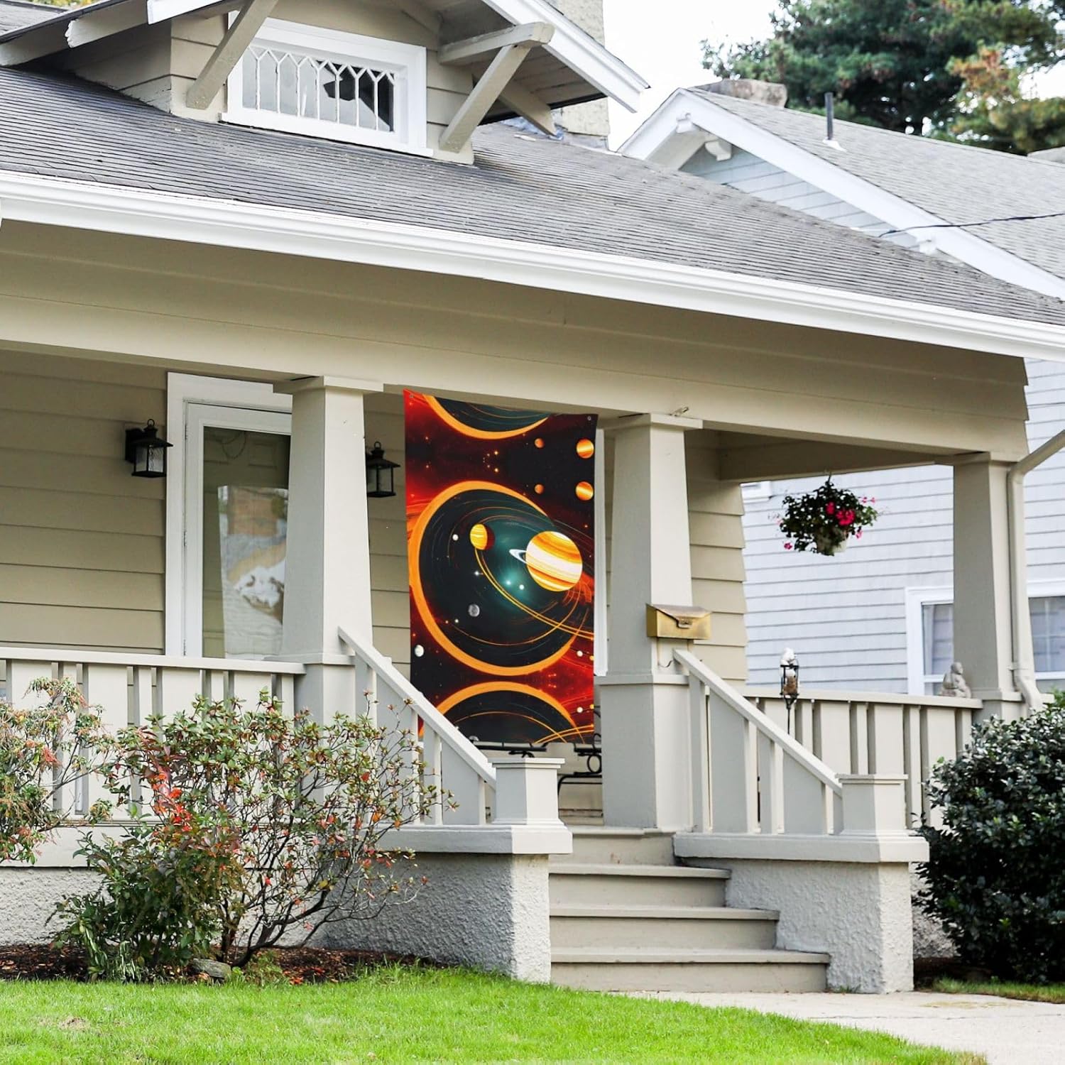 Bandiere decorative del sistema solare Giove Saturno, cortile esterno, patio, compleanno, laurea, festa, striscione 9,1 x 1,8 m