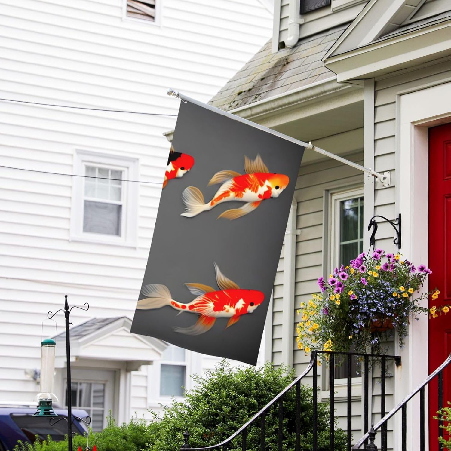 Bandiere decorative tradizionali con puntini di carpa Koi per cortile esterno, patio, compleanno, laurea, festa, striscione 9,1 x 1,8 m