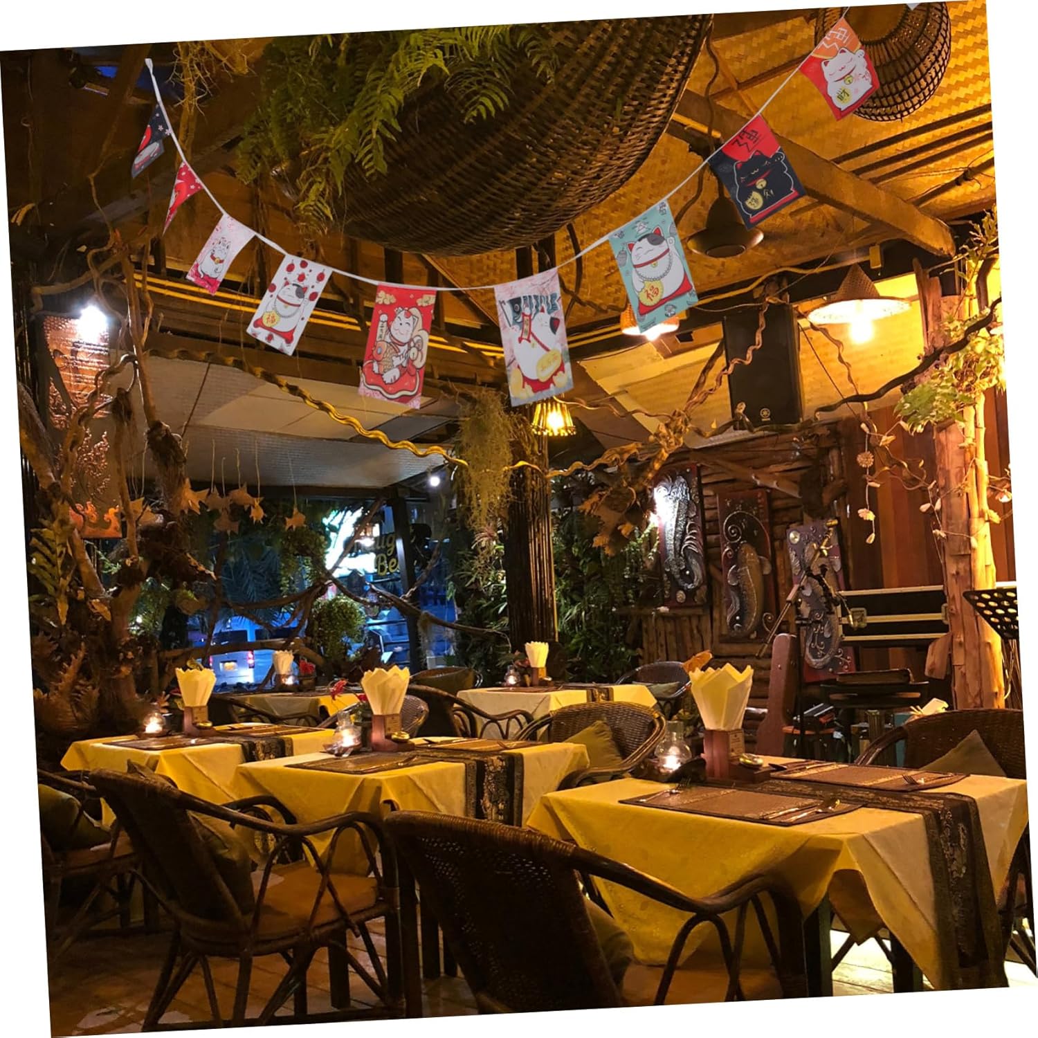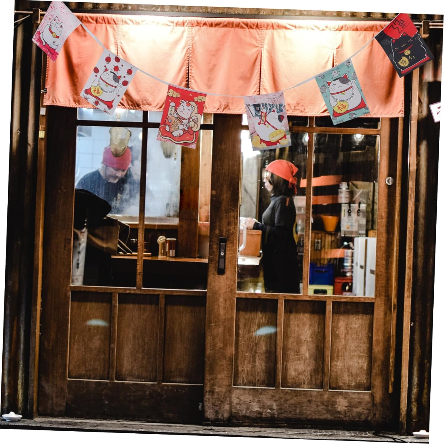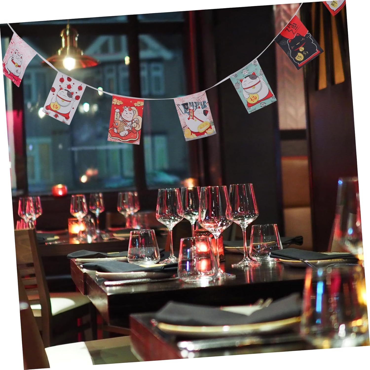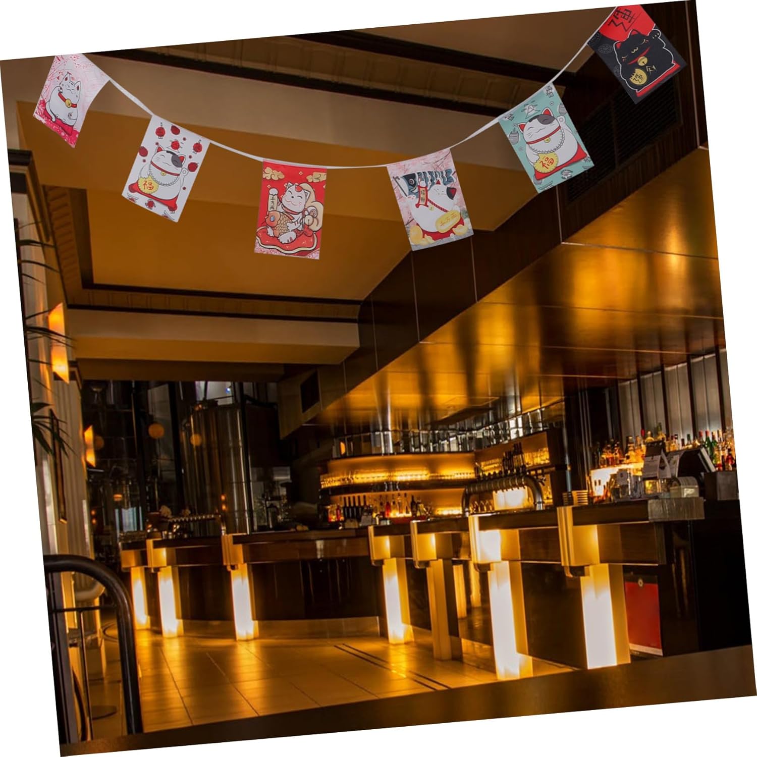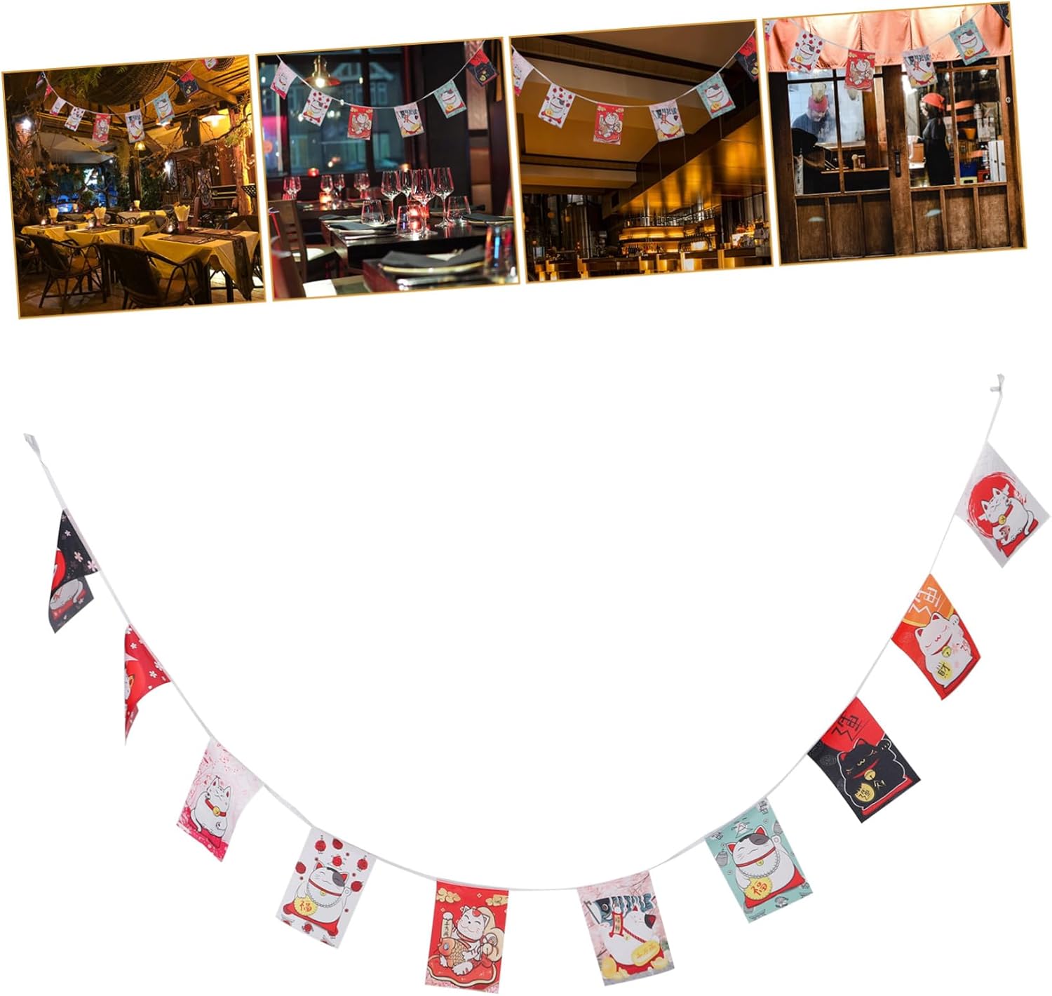 Decorazione esterna: la bandiera appesa è adatta per aggiungere un tocco di cultura giapponese a casa, ufficio o ristorante. Bandiere sospese Bandiera del negozio di sushi: i motivi intricati e i disegni unici delle bandiere le rendono una bellissima decorazione, Decorazioni per striscioni sospesi Bandierina Maneki Neko: lo striscione con gatti giapponesi è facile da installare e ti consente di decorare il tuo spazio con un tema giapponese in pochi minuti. Bandiere con gagliardetti a catena Maneki per ristoranti di sushi giapponesi: che tu sia un fan della cultura giapponese o semplicemente apprezzi il bel design, un must per ogni amante della decorazione, bandiera con gagliardetti sospesi Banner in stile giapponese: alla festa, queste bandiere diventano elementi indispensabili per decorare la cucina, il camino, la porta d'ingresso e le scale, bandiere con gagliardetti