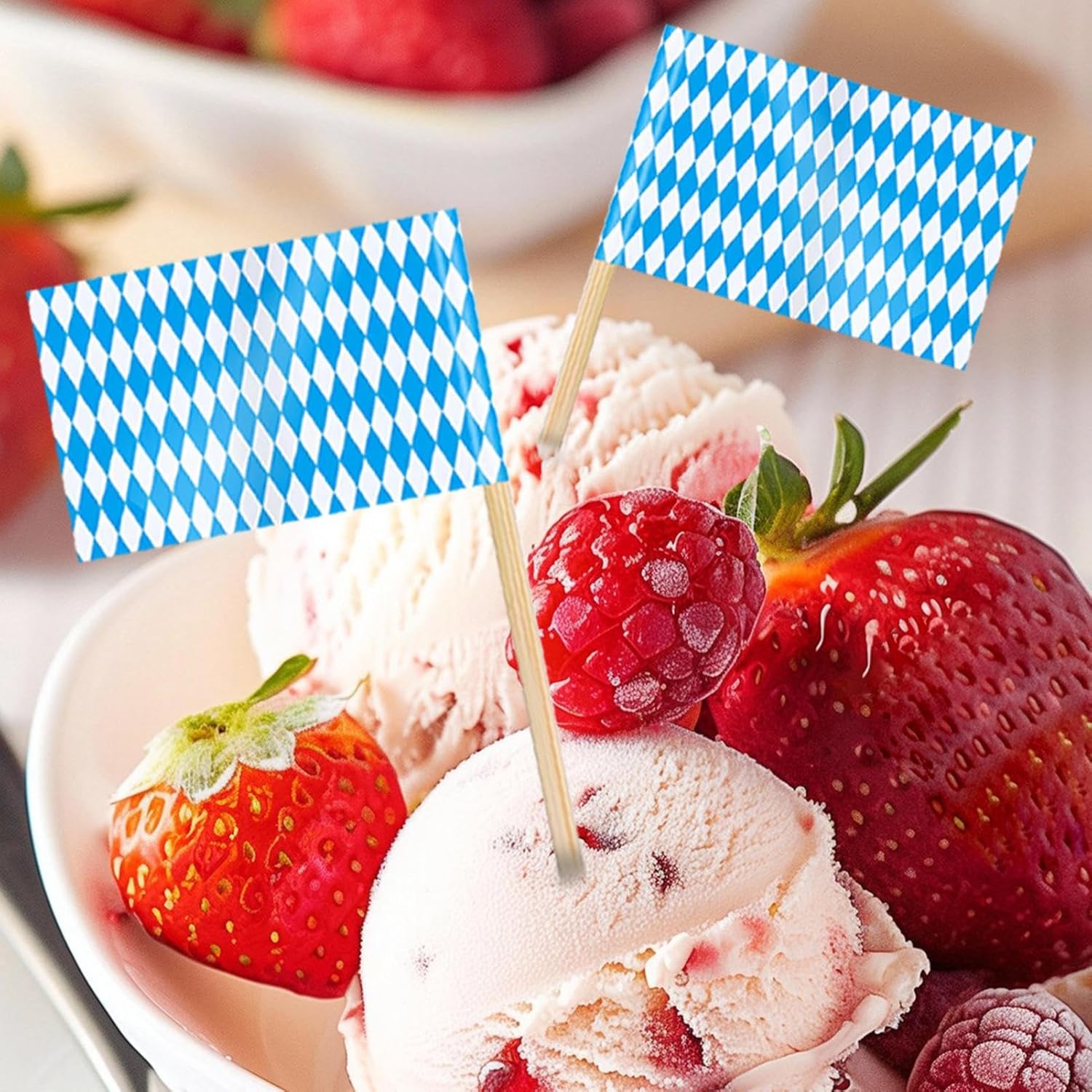 Sicurezza e Chiarezza: Stampa fronte/retro su carta robusta ad alta densità, garantisce superficie liscia e resistenza ottimale, mantenendo sicurezza costante e nitidezza in ogni stuzzicadenti Funzionalità Multiple: Migliorano le celebrazioni 'Oktoberfest integrando elementi culturali con un tocco decorativo festoso, ideali per feste a tema per creare un'atmosfera gioiosa Estetica Migliorata: Le bandierine bianco-blu a scacchi offrono decorazioni versatili, ideali per impreziosire la tavola con un tocco festoso accattivante che esalta naturalmente l'estetica e composizioni gastronomiche Quantità Ampia: 100 bandierine per stuzzicadenti standard offrono opzioni di posizionamento versatili e ingombro ridotto per soddisfare ogni esigenza decorativa con praticità immediata Colori vivaci: Contrasto bianco e blu marcato ottenuto con stampa ad alta precisione, arricchisce la stratificazione dei dettagli creando un effetto decorativo accattivante e dinamico per le vostre esposizioni