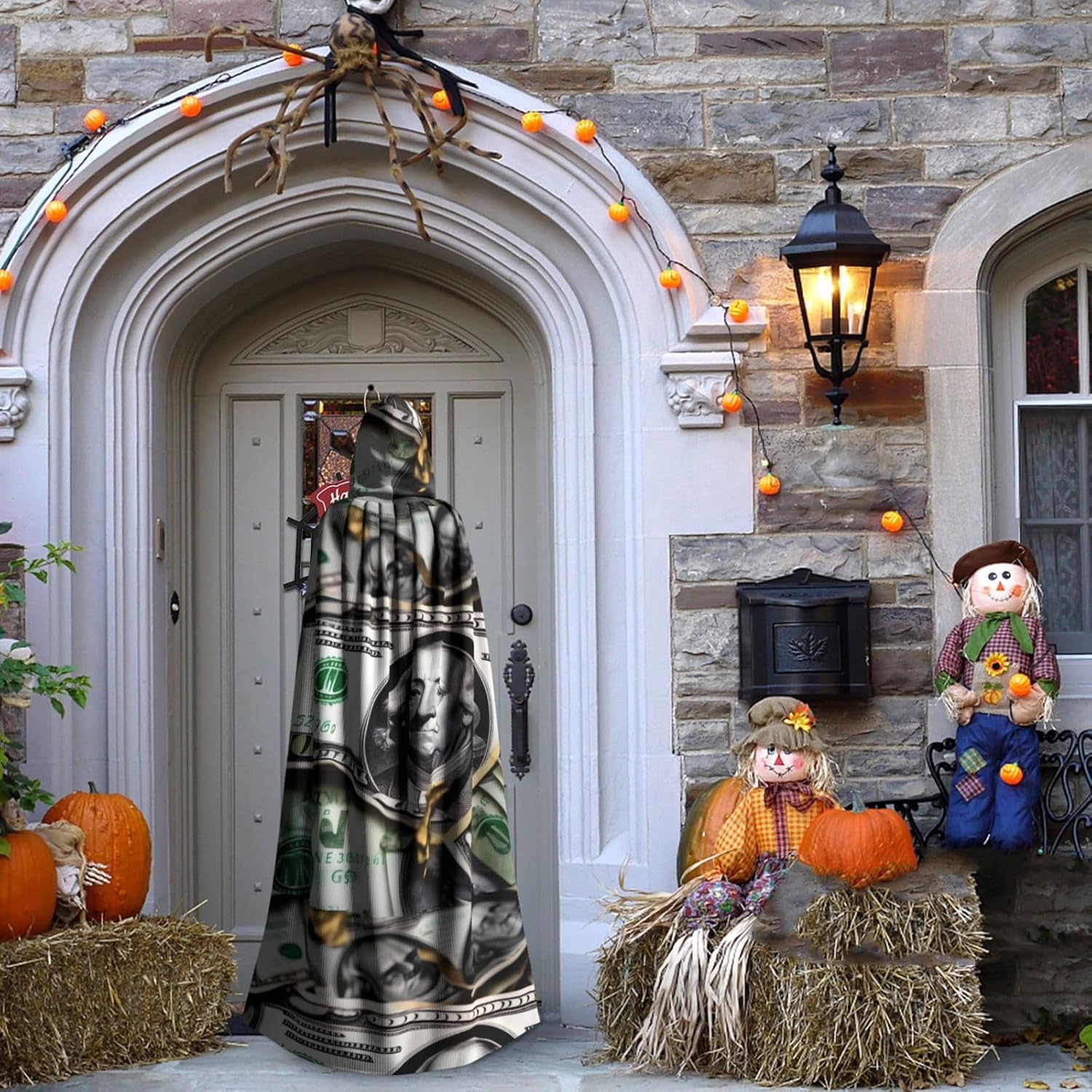 Modelli di banconote Prestazioni del costume: poncho oversize con cappuccio, senza cerniera, nodo a cravatta, comodo vestito con cappuccio Dimensioni: Lunghezza: 57,87 pollici, larghezza: 60,6 pollici, altezza del cappello: 14,96 pollici Composizione materiale: 100% fibra di poliestere (poliestere) Scena adatta: festa, carnevale, Halloween, festa in costume, costumi cosplay, costumi di scena, mascherata, festa a tema, Convenzione dei fumetti, ecc. Istruzioni di lavaggio: lavabile in lavatrice, facile da pulire, durevole