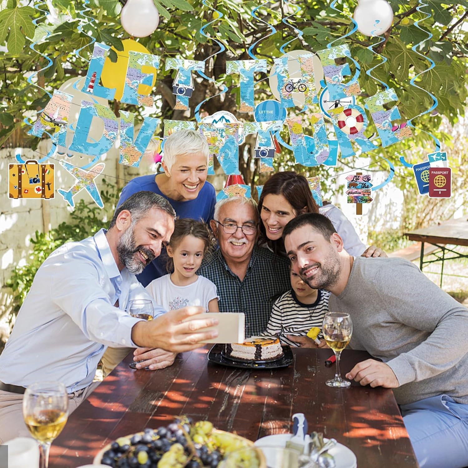 DECORAZIONI PER LA FESTA DEL VIAGGIO: Riceverete 28 decorazioni per la festa a tema viaggio, tra cui 20 striscioni “Let the Adventure Begin” e 8 decorazioni a spirale sospese. Ogni lettera dell'alfabeto è stampata su uno striscione separato con una mappa del mondo sullo sfondo; la palette di colori è blu e verde, a simboleggiare il cielo e la terra, che si adatta perfettamente al tema del viaggio e dell'avventura. Gli slogan accattivanti ispirano le persone a intraprendere nuovi viaggi. VARI DISEGNI: Le nostre decorazioni per feste a tema Viaggio intorno al mondo includono una varietà di bellissimi elementi appesi, come mongolfiere, valigie, passaporti, mappe, aerei e bussole, ecc. Si adattano perfettamente al tema del viaggio intorno al mondo e creano un'atmosfera forte e allegra che aggiunge divertimento e atmosfera alla festa. MATERIALE DI ALTA QUALITÀ: Tutte le nostre decorazioni per feste d'addio sono realizzate in materiale cartaceo di alta qualità, sicuro, atossico, inodore, resistente, non facile da strappare, riutilizzabile e di bell'aspetto. Adatte per le decorazioni di feste per varie occasioni, aggiungono più gioia alla vostra festa di compleanno e così via, creano un'atmosfera molto romantica. FACILE DA USARE: Ci vuole poco tempo per assemblare lo striscione, e le decorazioni sono facili da appendere. Si possono appendere in modo semplice e veloce in qualsiasi momento senza complicate fasi di installazione, risparmiando tempo e stress durante la preparazione della festa. Si possono appendere a soffitti, finestre, pareti, alberi, porte, corridoi e altro ancora, risparmiando tempo e fatica. DECORAZIONI IDEALI PER LE FESTE: Questo set di decorazioni per feste di viaggio e avventura è perfetto per tutte le occasioni, ideale per feste di laurea, feste di pensionamento, feste a tema viaggio, feste di cambio lavoro o carriera, feste di avventura, feste di addio e altro ancora per celebrare l'inizio di un nuovo viaggio.