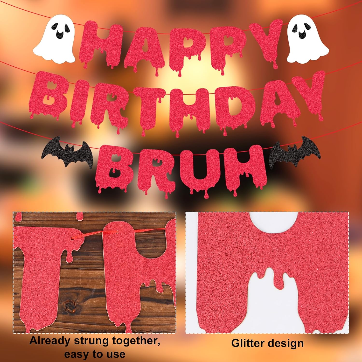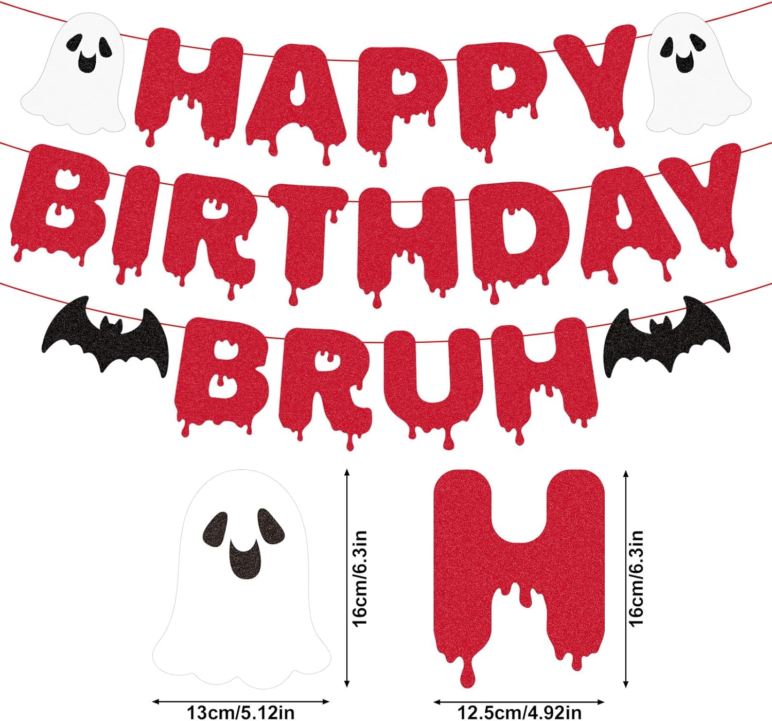Contenuto della confezione: Riceverai un set di striscioni pre-infilati Happy Birthday Bruh Halloween, ideali per creare un'atmosfera spettrale di Halloween alla tua festa di compleanno. Materiale affidabile: lo striscione glitterato di buon compleanno realizzato in carta di alta qualità con una finitura scintillante non è facile da perdere, è durevole, di lunga durata e garantisce un display abbagliante. Design divertente: presenta lettere glitterate in stile sangue gocciolante "HAPPY BIRTHDAY BRUH", accentate con graziosi fantasmi e ritagli di pipistrelli, che fondono perfettamente le spettrali vibrazioni di Halloween con la celebrazione del compleanno. Area per appendere: il nostro striscione di compleanno è già assemblato in una corda robusta, facendoti risparmiare tempo e fatica così potrai concentrarti sul divertimento della festa. Ideale per pareti, mantelli, fondali fotografici o allestimenti per feste all'aperto. Uso versatile: i vivaci accenti rossi e scintillanti fanno sì che il nostro striscione di compleanno attiri l'attenzione. Ideale per feste di compleanno a tema Halloween, eventi in casa stregata, feste horror, baby shower, celebrazioni spettrali e molto altro.