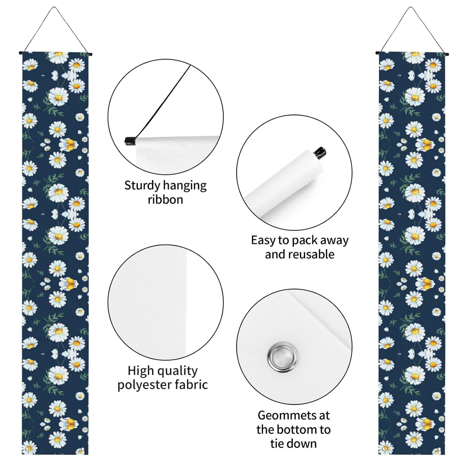 Caratteristiche per un utilizzo conveniente: i nostri striscioni di laurea sono dotati di un palo e di una corda per appenderli, che li rendono facili da installare e pronti per essere appesi ovunque tu voglia. Materiale: realizzati in tessuto di poliestere di alta qualità, questi striscioni a margherita sono robusti, durevoli, lavabili e riutilizzabili, garantendo che durino per molte celebrazioni. DIMENSIONI PER VISIBILITÀ: Con 11,8 pollici di larghezza e 67 pollici di altezza, offrono un'ottima visibilità e fanno una dichiarazione alla tua festa di laurea. Regalo per i laureati: questi striscioni sono un meraviglioso regalo di laurea, aggiungendo un tocco di festa a qualsiasi ambiente, sia all'interno che all'esterno. Occasioni di versatilità: adatti a tutti i tipi di feste di laurea, riunioni e celebrazioni, questi striscioni sono versatili e possono essere utilizzati per qualsiasi cerimonia o evento.