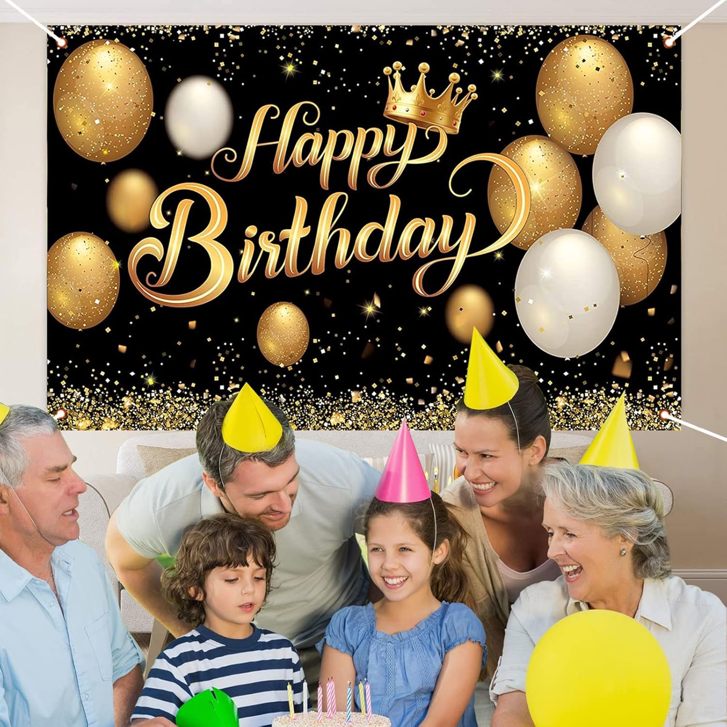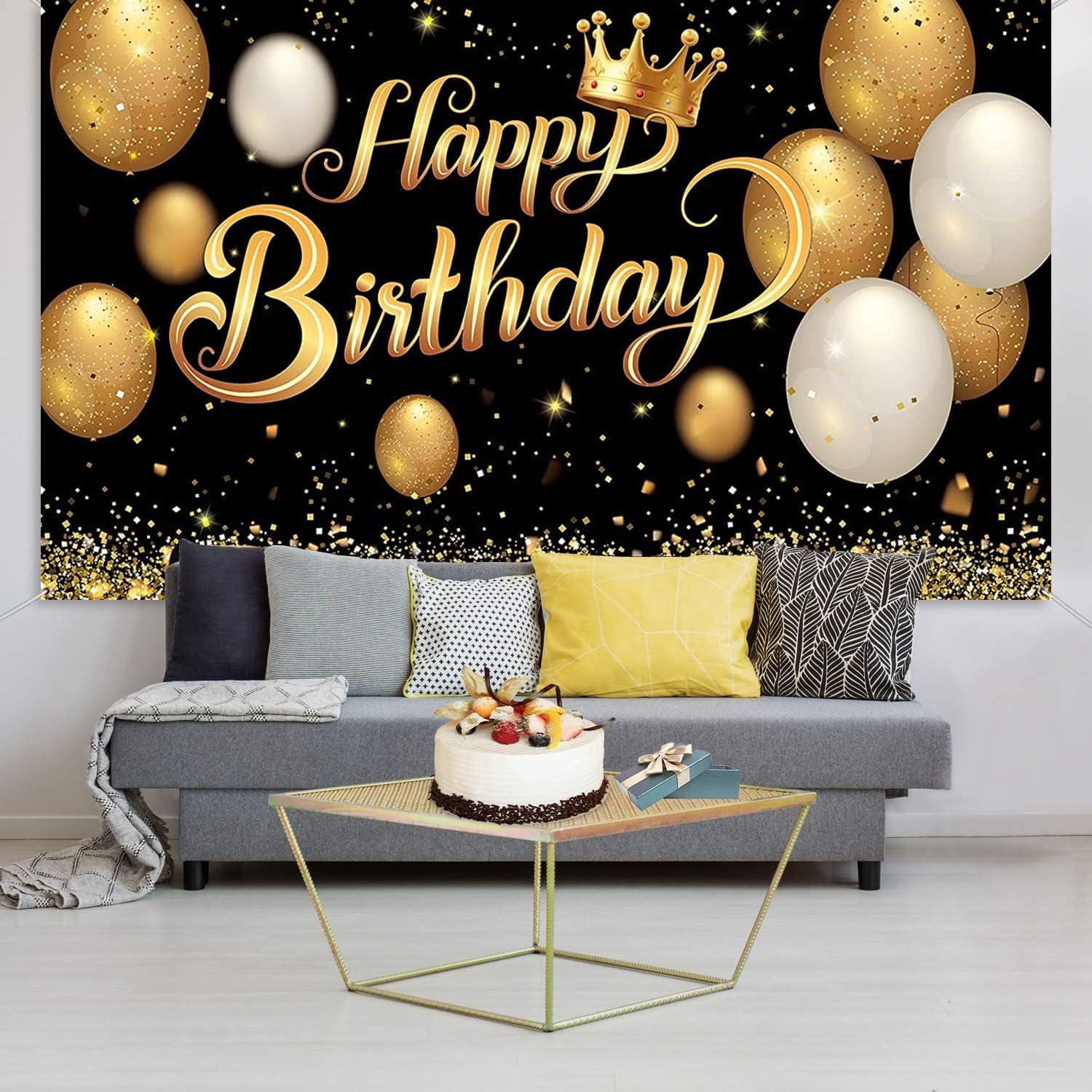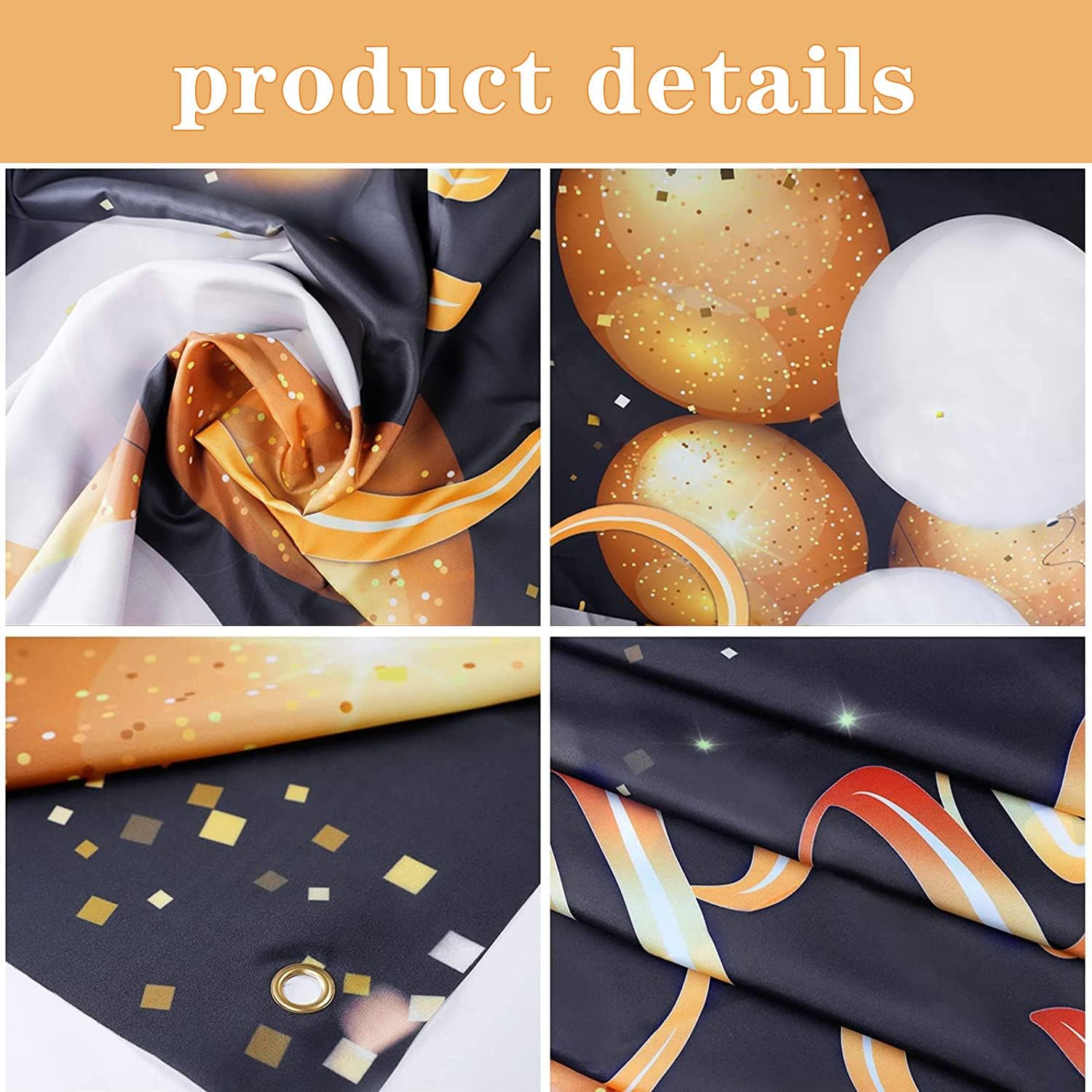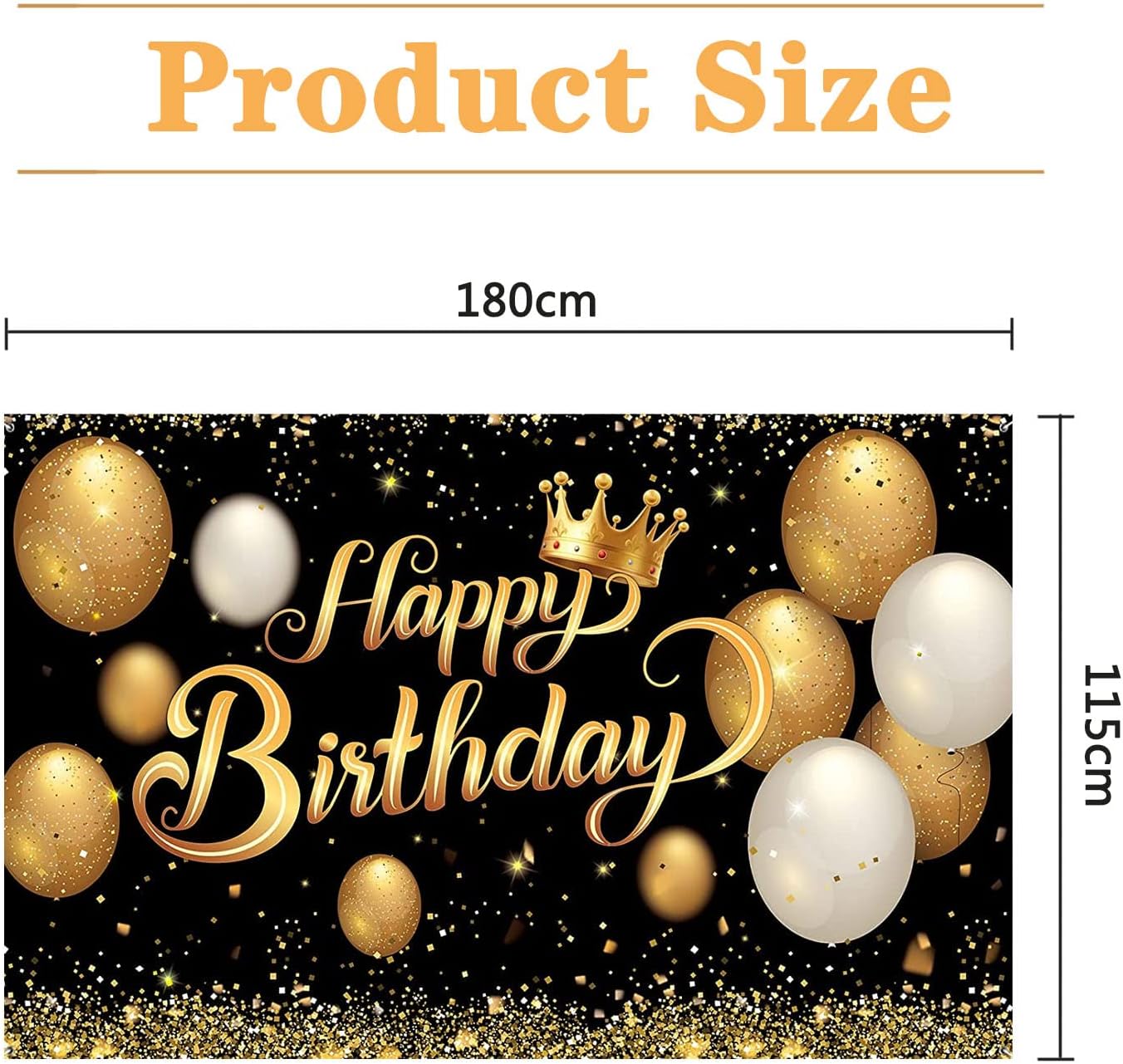 Ottima decorazione per la festa: usa il nero brillante e l'oro stampato con palloncini e stelle scintillanti per aggiungere atmosfera alla festa, ravvivare immediatamente l'ambiente della festa e rendere i tuoi ospiti più felici di godersi la festa. Puoi anche scriverci sopra qualche parola per rendere la tua festa di compleanno un evento impressionante. Dimensioni attraenti: la decorazione dello sfondo è 180 x 115 cm, abbastanza grande per fotografare feste di compleanno e amici alla festa e aggiungere un tocco in più alla tua festa di compleanno. Materiale premium: realizzato in resistente tessuto di poliestere, questo prodotto è leggero, pieghevole, facile da trasportare, lavabile e resistente agli strappi. Facile da usare: viene fornito con un pezzo di banner fondale Happy Birthday e una corda a nastro di circa 10 m per facilitare il passaggio attraverso l'anello di tenuta in rame del banner fondale per fissarlo a pareti interne o esterne, giardini, parchi giochi, ecc. Ampia applicazione: il poster con logo in oro nero può essere utilizzato all'interno o all'esterno, sfondo per feste di compleanno, adatto per fotografie, immagini, cabine fotografiche, decorazioni per la casa, carta da parati, tende, tovaglie, scene di sfondo o decorazioni per pareti.
