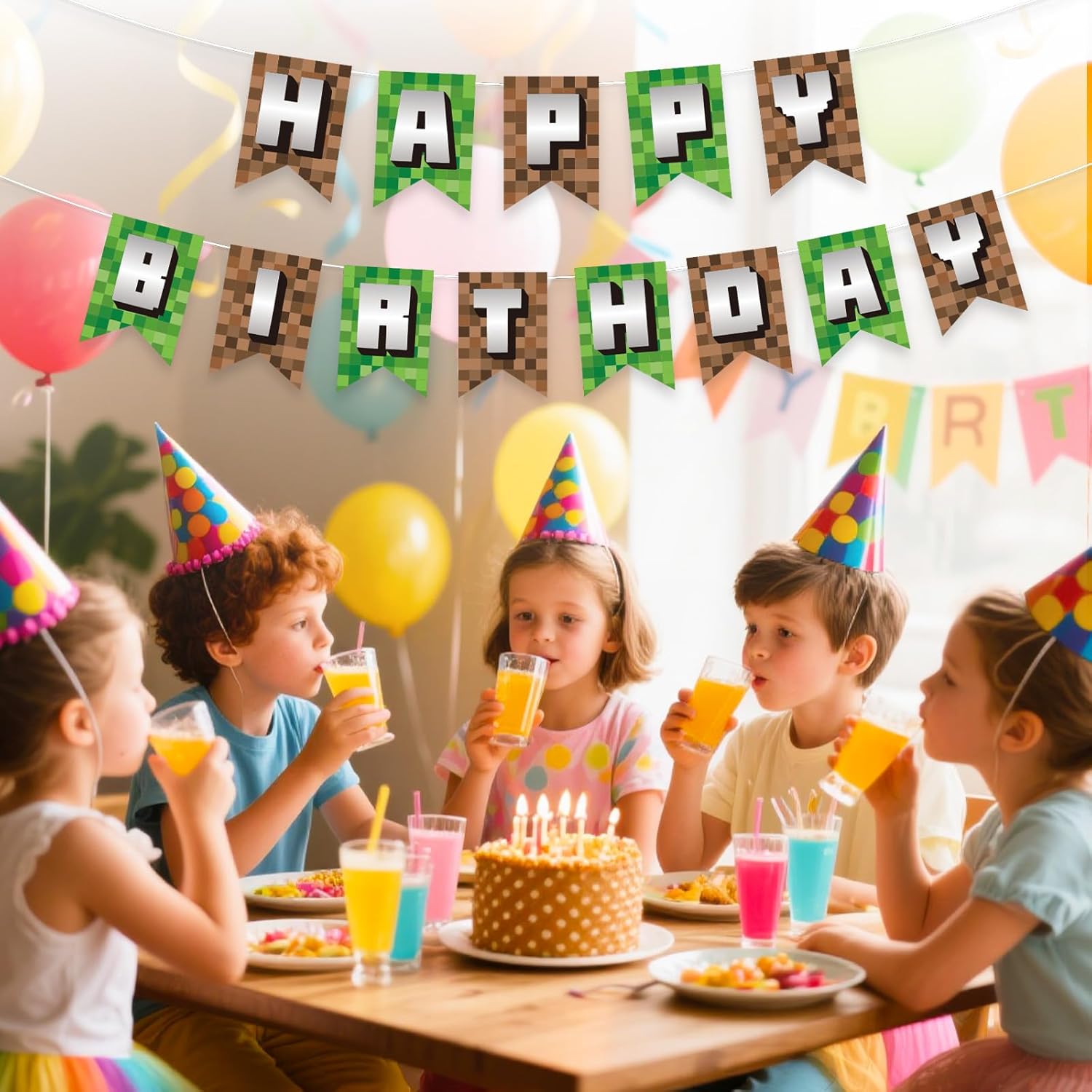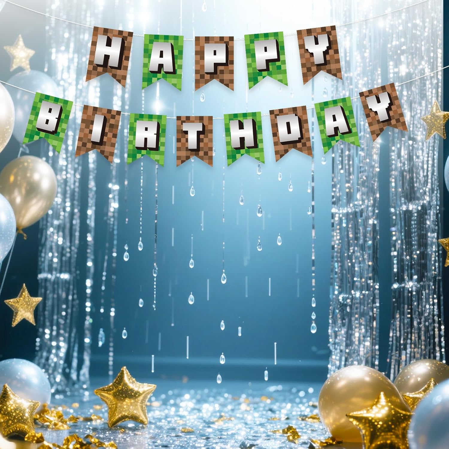 Contenuto della confezione: riceverai 2 striscioni di buon compleanno predecorati con design a tema Pixel creativo e vivaci colori verde e marrone. Perfetto per feste di compleanno, decorazioni murali e fondali fotografici per creare celebrazioni indimenticabili. Materiale Materiale: questi striscioni di buon compleanno sono realizzati in materiale cartaceo resistente con stampe nitide e vivaci. I ricchi colori verde e marrone rimangono vibranti durante tutto l'evento, per decorazioni per feste interne ed esterne. Design a tema pixel: i nostri banner per videogiochi presentano divertenti opere d'arte minerarie in stile pixel che aggiungono un tocco giocoso agli appassionati di giochi. Perfetto per gli appassionati di giochi, feste di compleanno, compleanni avventurosi e sfondi fotografici creativi. Facile da usare: i nostri striscioni di buon compleanno sono precaricati con fori precaricati che non richiedono passaggi o strumenti complessi per l'installazione. Basta allegare le lettere e goderti facilmente le forniture per feste istantanee. Uso multiuso: questi eleganti banner a tema pixel sono adatti a varie occasioni come feste di compleanno, oggetti fotografici, eventi all'aperto e possono anche abbinarsi ad altre decorazioni.