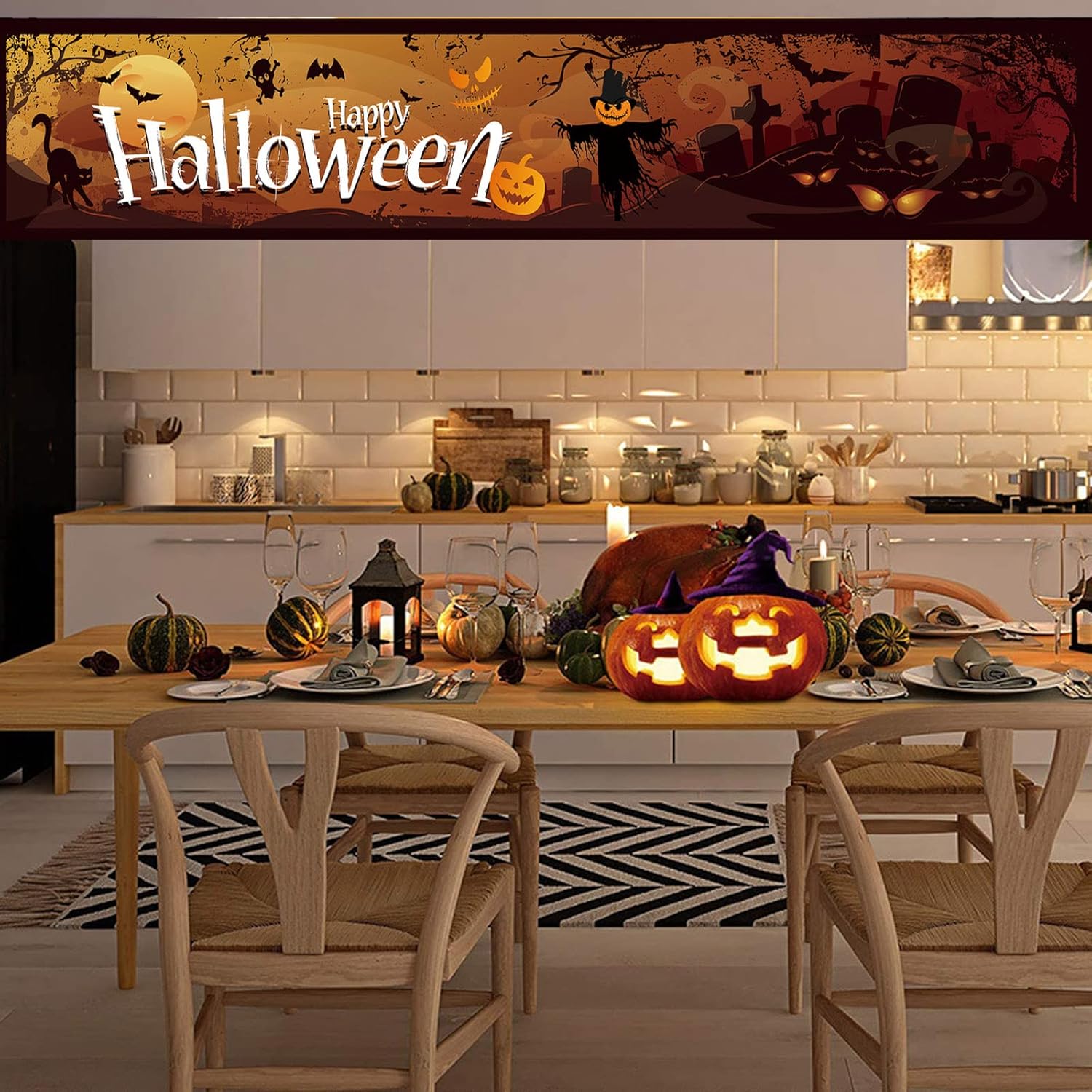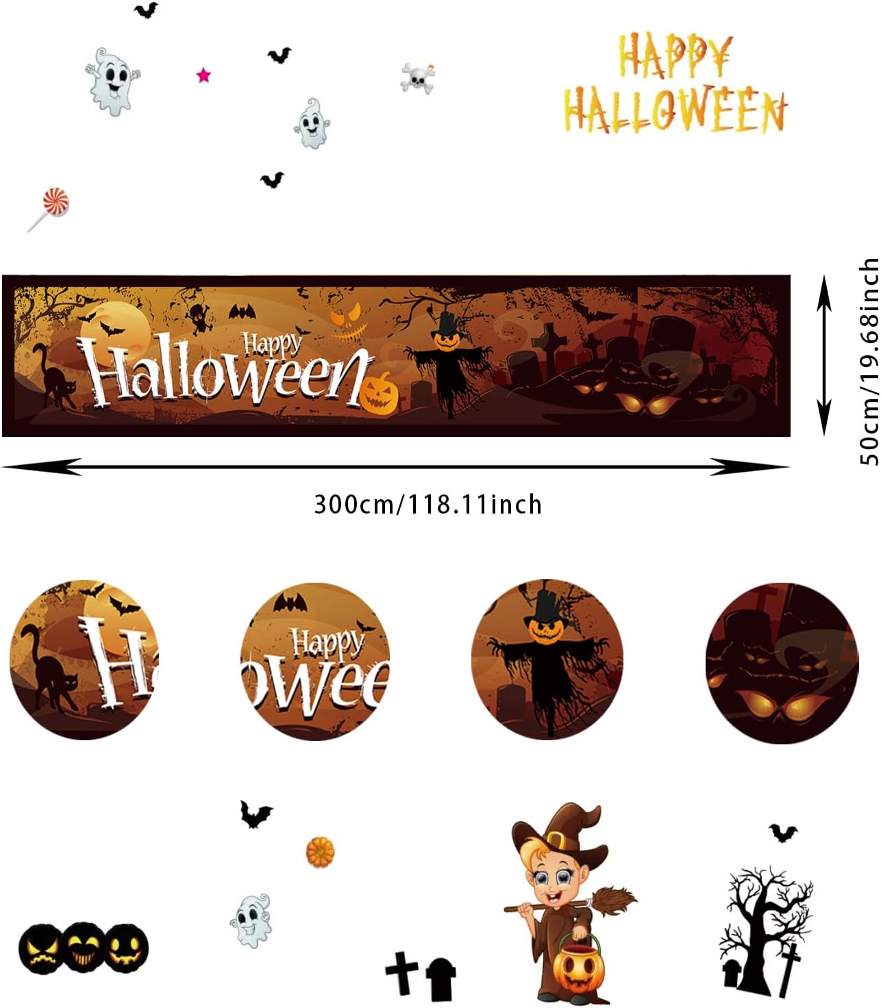 👻Decorazioni per le feste di Halloween👻Riceverai 1 pezzo di grande tessuto per striscioni Happy Halloween, che misura circa 300 x 50 cm/118,1 x 19,6 pollici. E ogni set sarà confezionato con 1 pezzo di corda da 6 m per appendere lo striscione sullo sfondo di Halloween. 👻Design horror e divertente👻Il design dello sfondo del banner del giardino di Halloween è unico e vivace. Lo striscione di Halloween presenta un grande cartello "HAPPY HALLOWEEN" e molti elementi di Halloween. Questi disegni sono stampati in alta risoluzione e si abbinano bene ai diversi colori. Ottieni questo perfetto striscione decorativo di Halloween per sorprendere tutti i tuoi ospiti e rendere la festa un grande successo! 👻Alta qualità e riutilizzabile👻Il nostro banner di sfondo di Halloween è realizzato in tessuto poliestere di alta qualità e resistente agli strappi, dai colori vivaci, resistente ai raggi UV, durevole e adatto al riutilizzo. Puoi facilmente piegarlo dopo l'uso e conservarlo per il prossimo utilizzo. 👻Facile da installare e appendere👻Lo striscione con il cartello di Halloween è dotato di 4 occhielli agli angoli e una corda per appenderlo facilmente. Puoi collegare 4 occhielli con lo spago e appenderlo dove vuoi. Come muri, cortili, portici, alberi, soggiorni, recinzioni o altri luoghi interni ed esterni. Si prega di stirare leggermente o aprire prima della festa se sono presenti rughe. 👻Ampia applicazione👻La squisita decorazione per striscioni con poster di Halloween è adatta per decorare feste a tema Halloween, feste a tema spettrali o all'aperto o altre celebrazioni festive. Inoltre, puoi utilizzare questo sfondo anche per scattare foto commemorative con la tua famiglia e i tuoi amici, risparmiando tempo e fatica per la decorazione e creando rapidamente e facilmente un'atmosfera festosa per la festa.