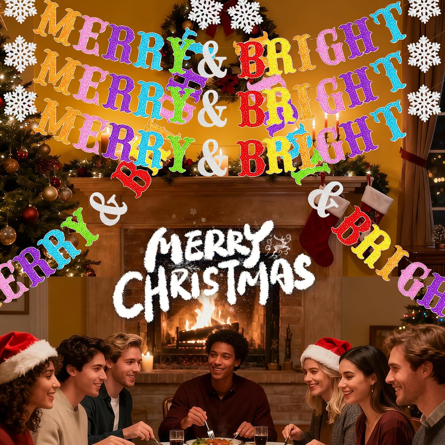 Banner di lettere creative multicolori per ragazze e ragazzi, decorazioni per feste di compleanno di buon Natale