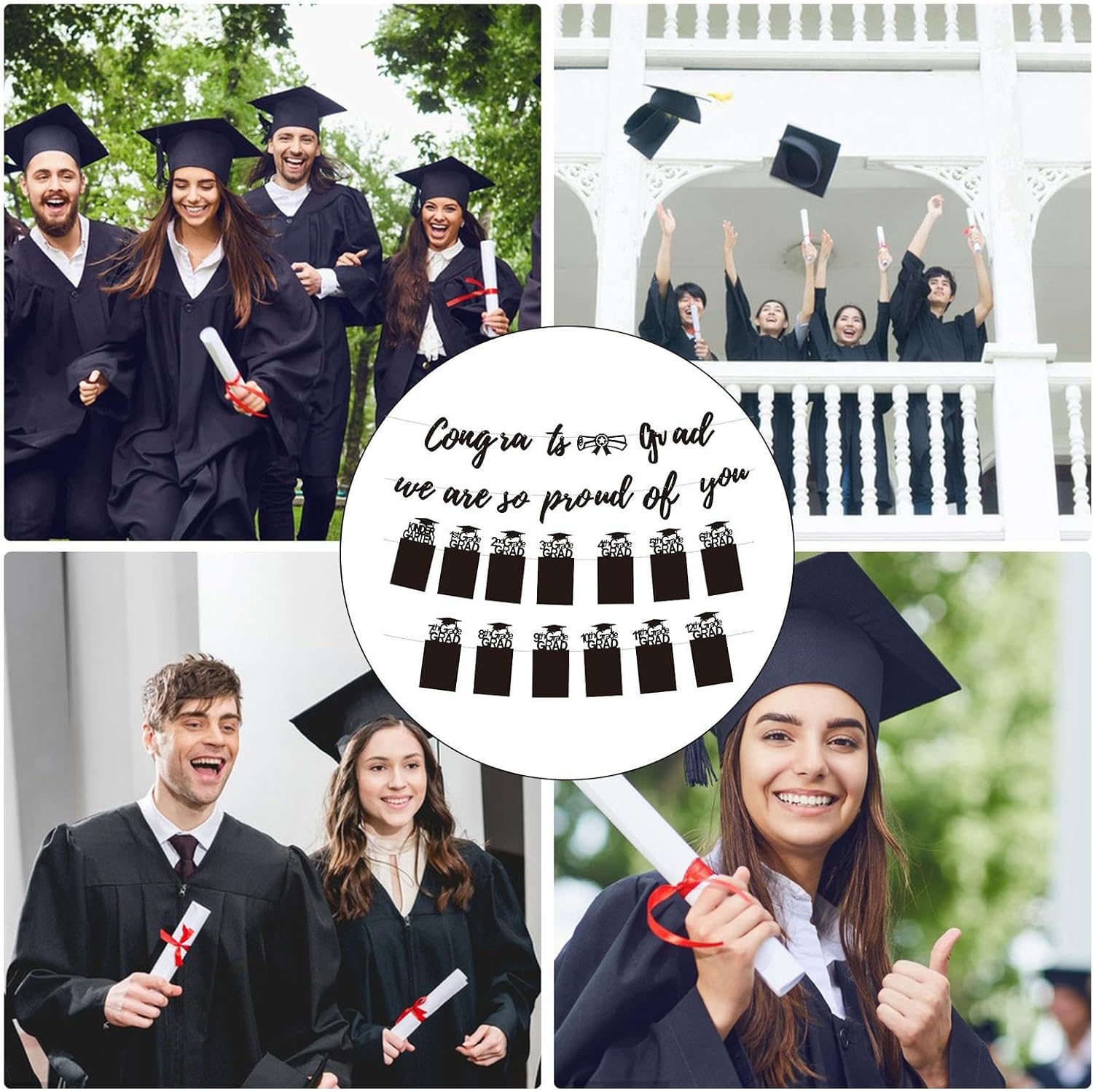 Struttura durevole: questo striscione di laurea utilizza materiale durevole per un'esposizione di lunga durata, combina morbidezza e resistenza per prevenire rotture e mantiene il suo aspetto attraverso molti usi Installazione semplice: modernizza la preparazione del tuo evento con uno striscione di laurea per aumentare l'efficienza della decorazione, con un gancio facile da installare per un fissaggio semplice e senza problemi: sicuro e assemblato in pochi secondi Applicazioni flessibili: progettato per cerimonie di laurea, crea un'atmosfera festosa invitante. Adatto per asili nido, istituti scolastici e università. Può essere utilizzato universalmente in una varietà di situazioni celebrative grazie al suo design versatile. Sfondo speciale per celebrazioni: decorazione classica per la laurea che presenta elementi di congratulazioni e offre una cornice decorativa unica e riconoscibile. Realizzato con dettagli speciali per il tuo sfondo festivo. COMBINAZIONE FACILE: il nostro striscione di laurea è facile da installare e può essere facilmente combinato con altri oggetti come palloncini e fiocchi. Questo crea un accordo di celebrazione armonioso e vivace.
