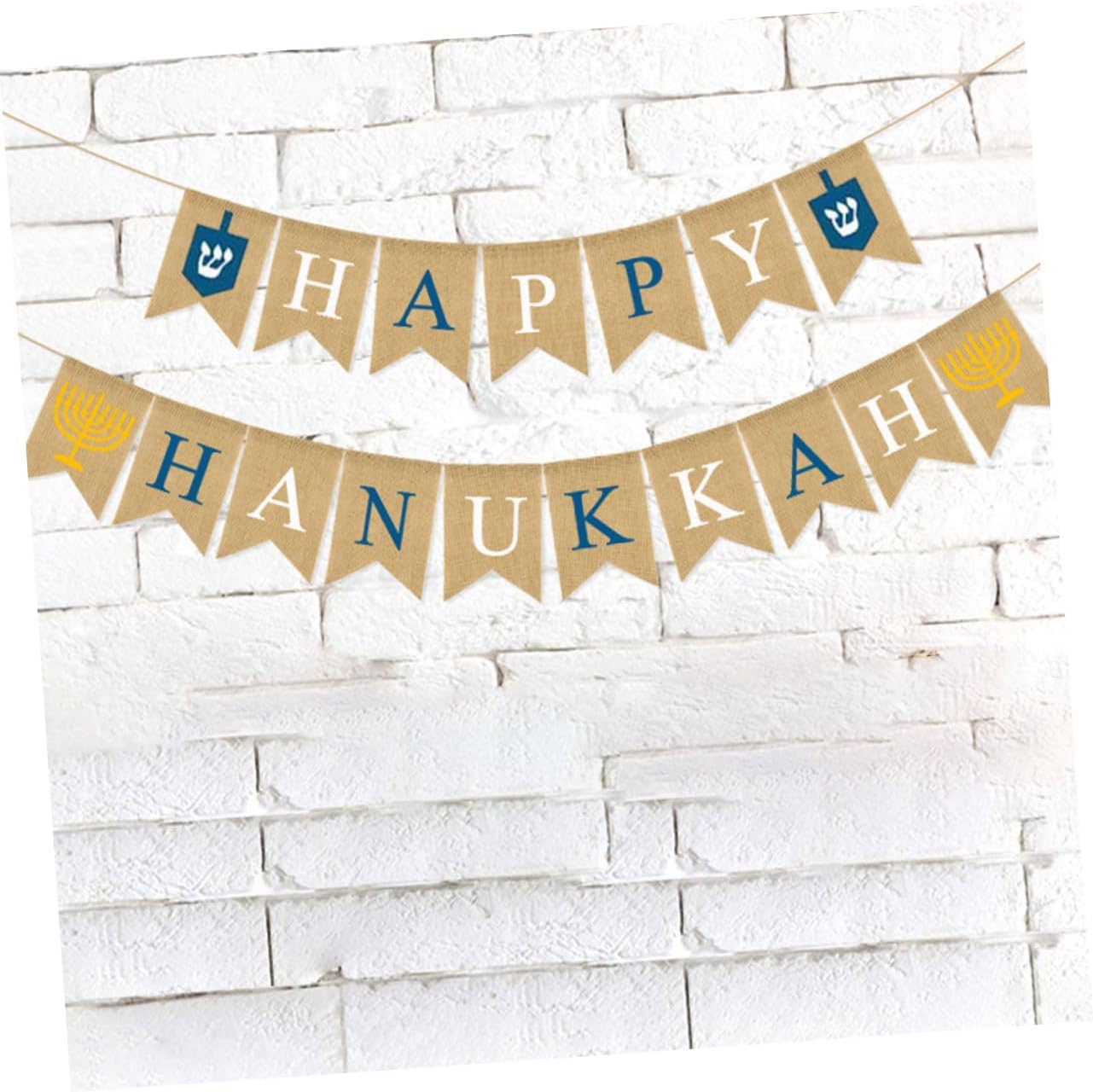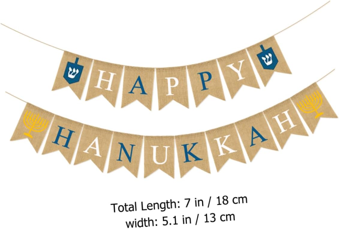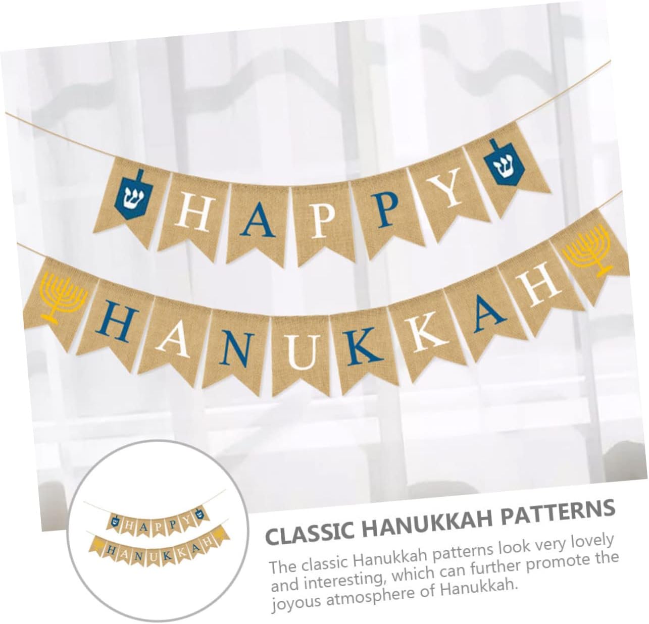 Decorazione per banner con lettere di Hanukkah: posizionala sul portico, sulle finestre e sulle pareti per un saluto unico per tutti i tuoi ospiti, gancio da parete decorativo. Banner di Hanukkah in iuta: la pregevole fattura garantisce una stampa di motivi chiari e un design accurato dei dettagli, pratico da usare, decorazioni per lo sfondo del festival. Ghirlanda di Natale - Gli elementi classici di Hanukkah sono molto creativi, particolarmente adatti per Hanukkah, candelieri decorativi. Striscione rustico con gagliardetto: il prodotto finito, facile da usare, basta appenderlo direttamente con la corda sopra, decorazione del caminetto. Banner decorativo di Hanukkah - Questi striscioni sono realizzati in materiale di alta qualità con bellissimi, pieni di fantastica atmosfera di Hanukkah, striscioni festivi.