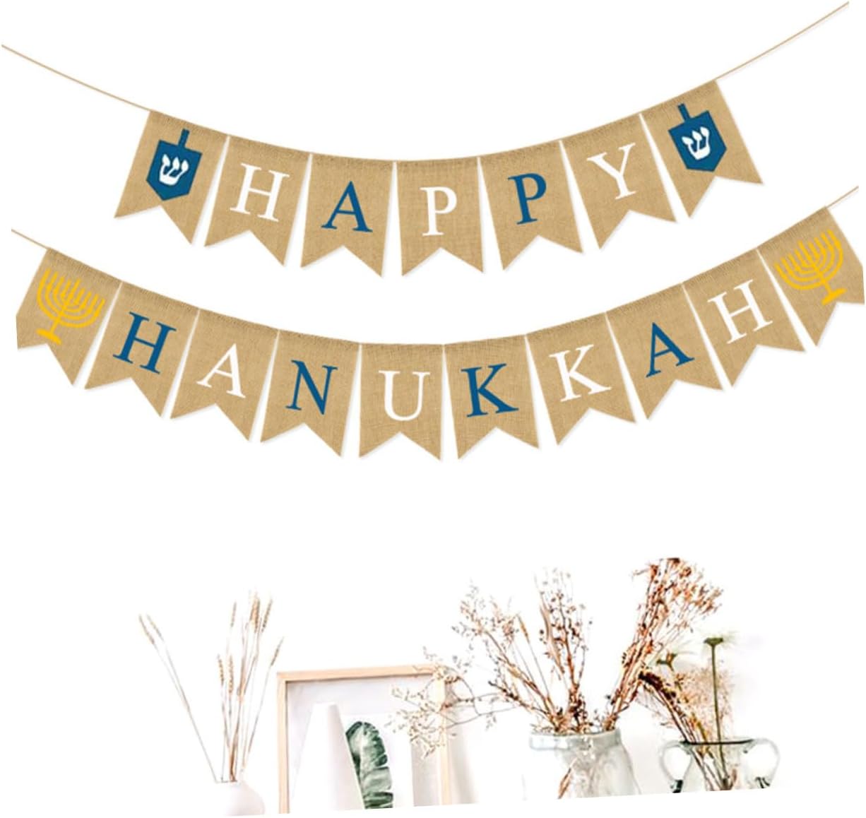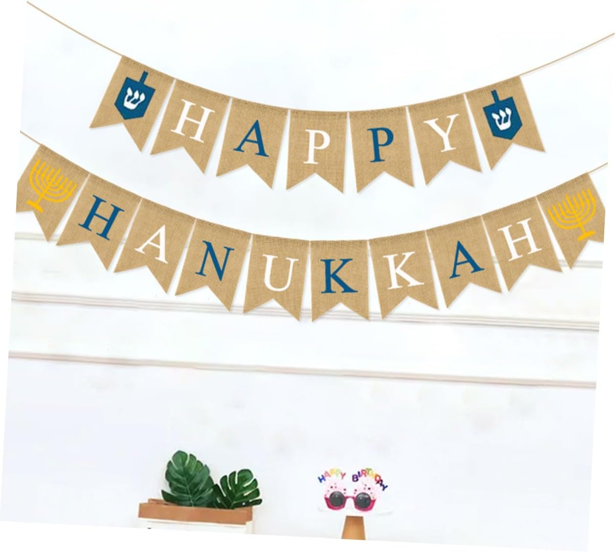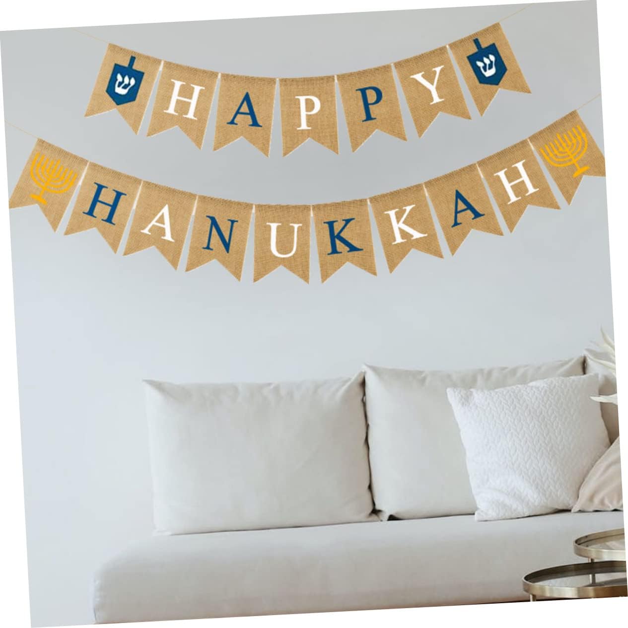 Decorazione per banner con lettere di Hanukkah: posizionala sul portico, sulle finestre e sulle pareti per un saluto unico per tutti i tuoi ospiti, gancio da parete decorativo. Banner di Hanukkah in iuta: la pregevole fattura garantisce una stampa di motivi chiari e un design accurato dei dettagli, pratico da usare, decorazioni per lo sfondo del festival. Ghirlanda di Natale - Gli elementi classici di Hanukkah sono molto creativi, particolarmente adatti per Hanukkah, candelieri decorativi. Striscione rustico con gagliardetto: il prodotto finito, facile da usare, basta appenderlo direttamente con la corda sopra, decorazione del caminetto. Banner decorativo di Hanukkah - Questi striscioni sono realizzati in materiale di alta qualità con bellissimi, pieni di fantastica atmosfera di Hanukkah, striscioni festivi.