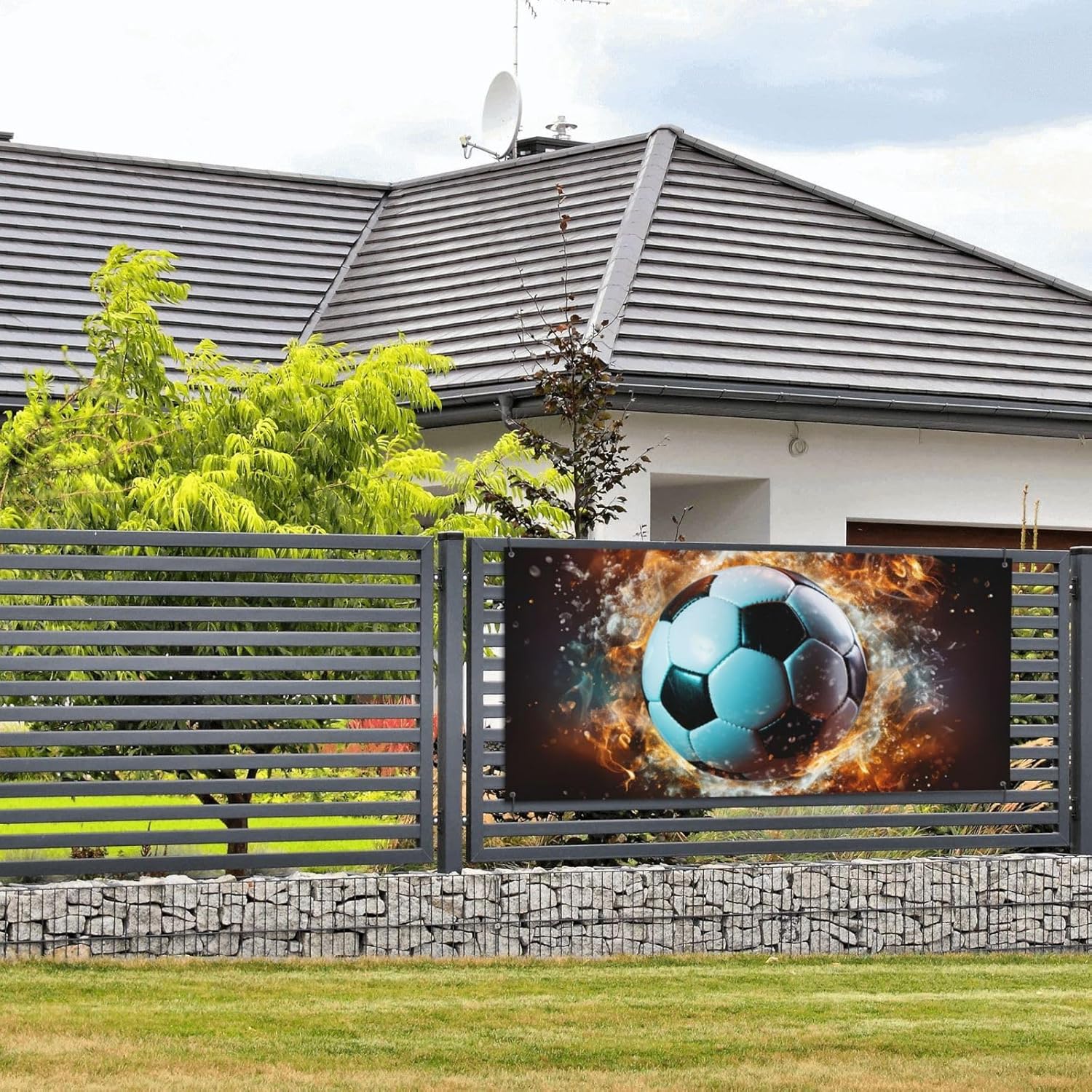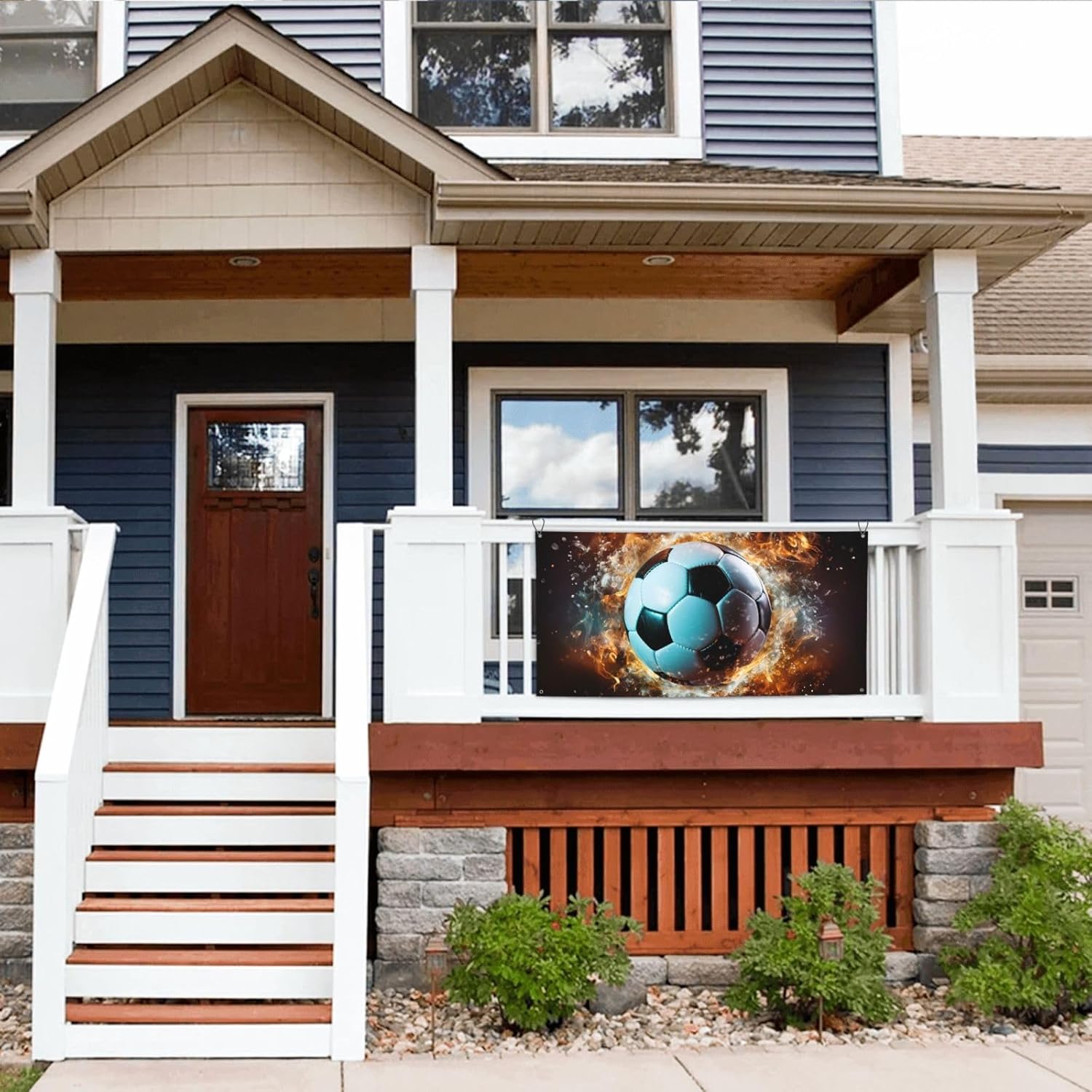 Banner natalizio con striscioni personalizzati Fondali per feste Calcio che vola in aria Decorazione da parete Striscione di compleanno Striscione grande per feste con 4 fori Striscione natalizio per interni e esterni