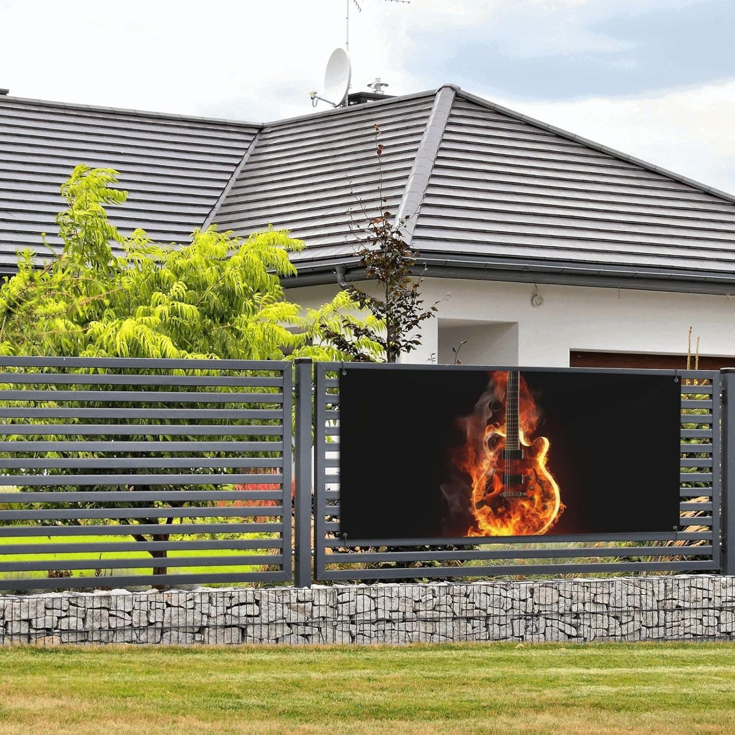 Banner per feste con stampa di chitarra antincendio Decorazioni per banner per feste morbide e non sbiadite Decorazioni per festival per riunioni di compleanno di Natale piccole