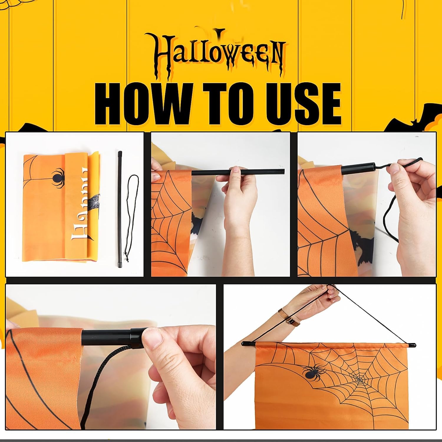 🎃La confezione include: 2 striscioni per porta di Halloween con lettere Happy Halloween e Dolcetto o scherzetto 🎃Materiale: realizzato in resistente tessuto di poliestere, con tocco morbido e colori brillanti, può essere riutilizzato, perfetto come decorazione della porta durante la festa di Halloween. 🎃Dimensioni: 180x30 cm/pezzo 🎃Decorazione classica di Halloween: sugli striscioni sono presenti disegni di zucca, strega e ragno, questi elementi sono piuttosto classici e con questo bellissimo design, possono aggiungere divertimento per Halloween e come segno di benvenuto 🎃Ampio utilizzo: questo set è ottimo per la decorazione di Halloween, puoi appendere questo striscione natalizio alla tua porta, scrivania, patio, finestra, muro, ecc., per dare il benvenuto ai tuoi amici.