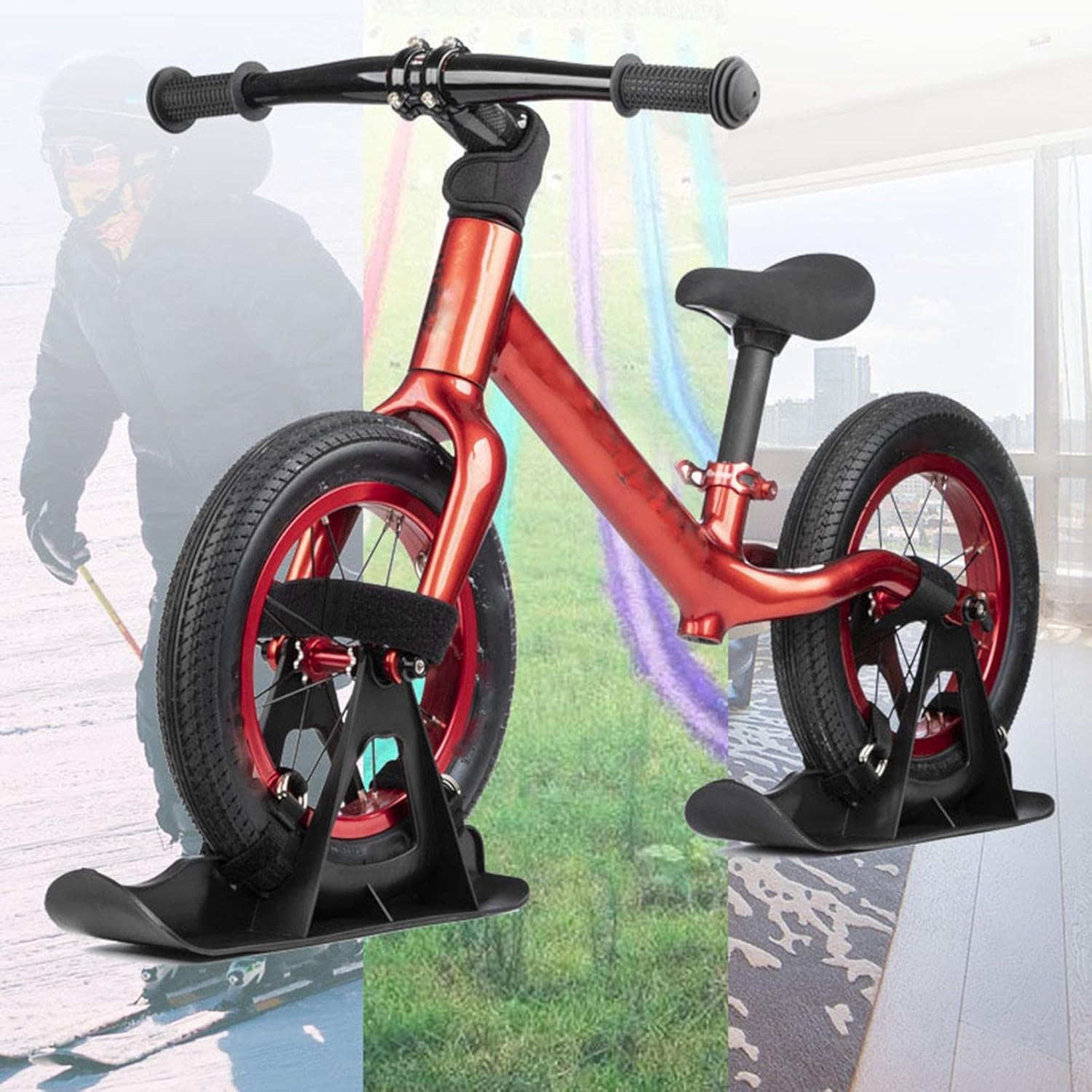 Con queste slitte puoi regalare ai tuoi bambini un brivido e trasformare una bici senza pedali in una bici da sci da neve Realizzato in materiale di alta qualità, solido e durevole Installazione semplice: basta rimuovere i bulloni dell'asse delle bici e fissare le ruote con le cinghie (incluse). Giocattolo invernale perfetto per i bambini anni; Si consiglia la supervisione di un adulto. Adatto per sci alpino, neve piana, sabbia ed erba
