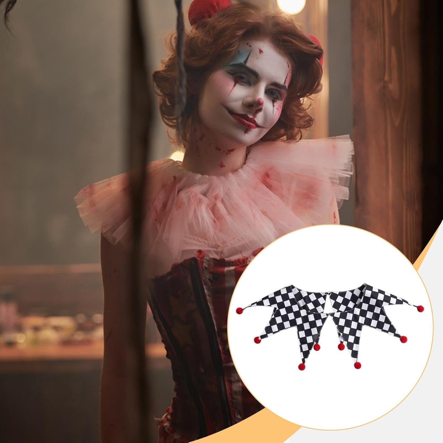 【Materiale】: i collari da clown di Halloween sono realizzati in poliestere, offrendo comfort e traspirabilità per un uso prolungato durante eventi o spettacoli 【Facile da indossare】: i collari da clown sono facili da indossare e da togliere, progettati per vestirsi velocemente in modo da poter essere pronti in pochi secondi, rendendolo comodo 【Pacchetto】: Riceverai 1 collare da clown di Halloween 【Taglia】: Progettato con una nferenza del collo di 58 cm/22,83 pollici, questo collare da clown da offre una vestibilità aderente ma comoda per la maggior parte degli indossatori 【Accessori per costumi da giullare】: questo colletto da clown è un accessorio sia per uomini che per donne, ottimo per Halloween, cosplay, spettacoli circensi e feste a tema,