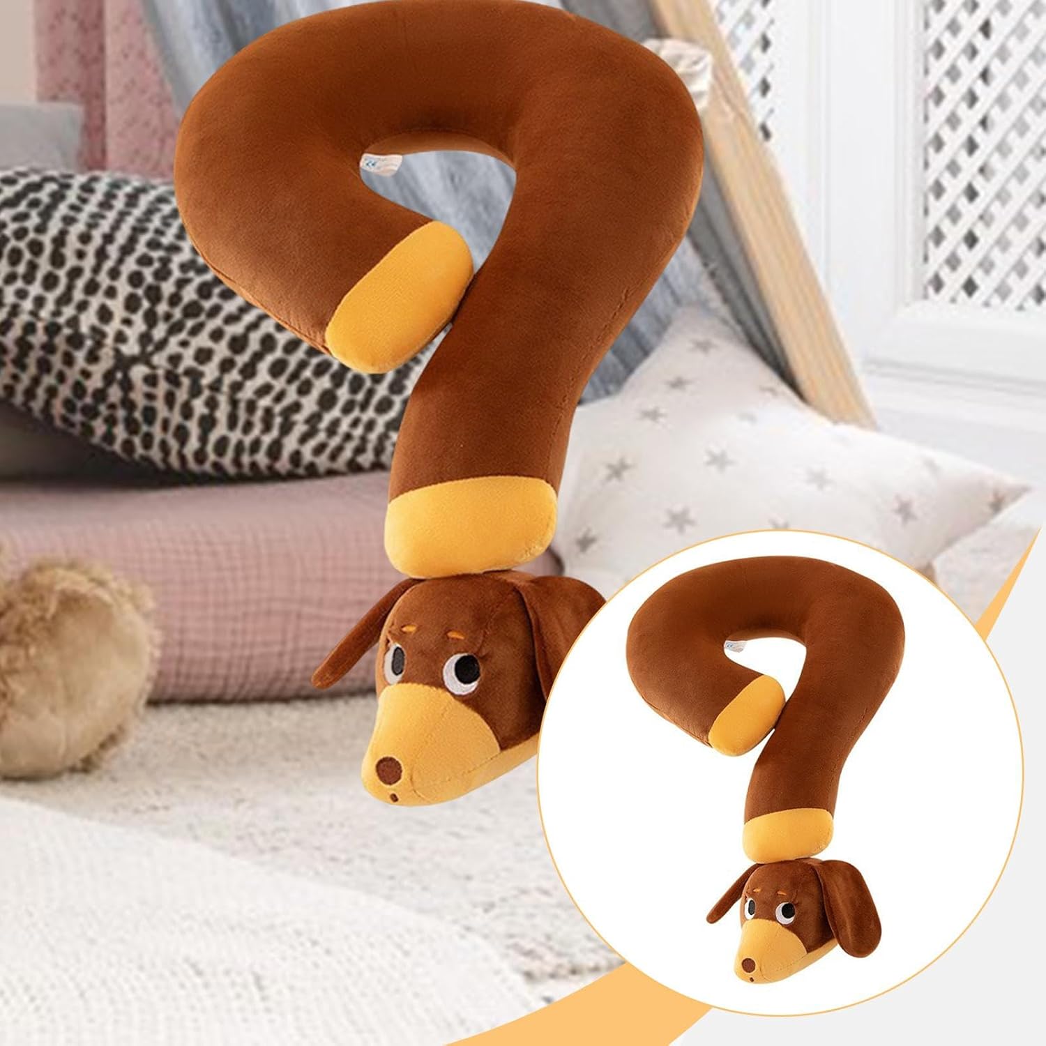 【Adorabile design a forma di bassotto】: questo grazioso cuscino presenta una dettagliata forma di bassotto con caratteristiche realistiche e un design del corpo proporzionato, creando sia un cuscino funzionale che un animale di peluche decorativo che aggiunge carattere a qualsiasi stanza 【Ideale per l'arredamento della casa】: ottimo per animali domestici e arredatori d'interni, questo cuscino a forma di animale arricchisce i soggiorni, le camere da letto e i dormitori con un fascino stravagante, offrendo al contempo un comfort pratico durante il relax 【Regalo premuroso】: con il suo fascino universale e la sua costruzione di qualità, questo cuscino per bassotto è un ottimo regalo di compleanno o di festa per appassionati di cani di tutte le età, combinando valore sentimentale con un arredamento funzionale per la casa 【Materiale di peluche di alta qualità】: realizzato in morbido tessuto di peluche traspirante, delicato sulla pelle, questo robusto cuscino offre un grande comfort per l'uso quotidiano, mantenendo la sua forma e il suo aspetto anche dopo un uso ripetuto. 【Comfort multifunzionale】: questo cuscino di peluche di qualità, che funge sia da comodo cuscino per riposare sia da adorabile peluche da esporre, offre un utilizzo versatile in vari ambienti, dal relax sul divano alla decorazione della camera da letto