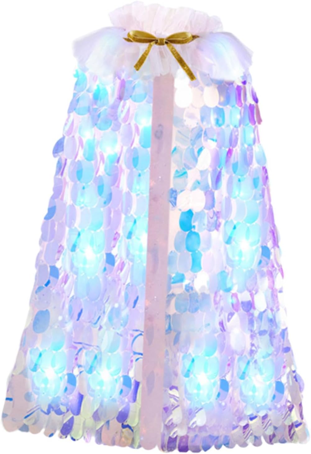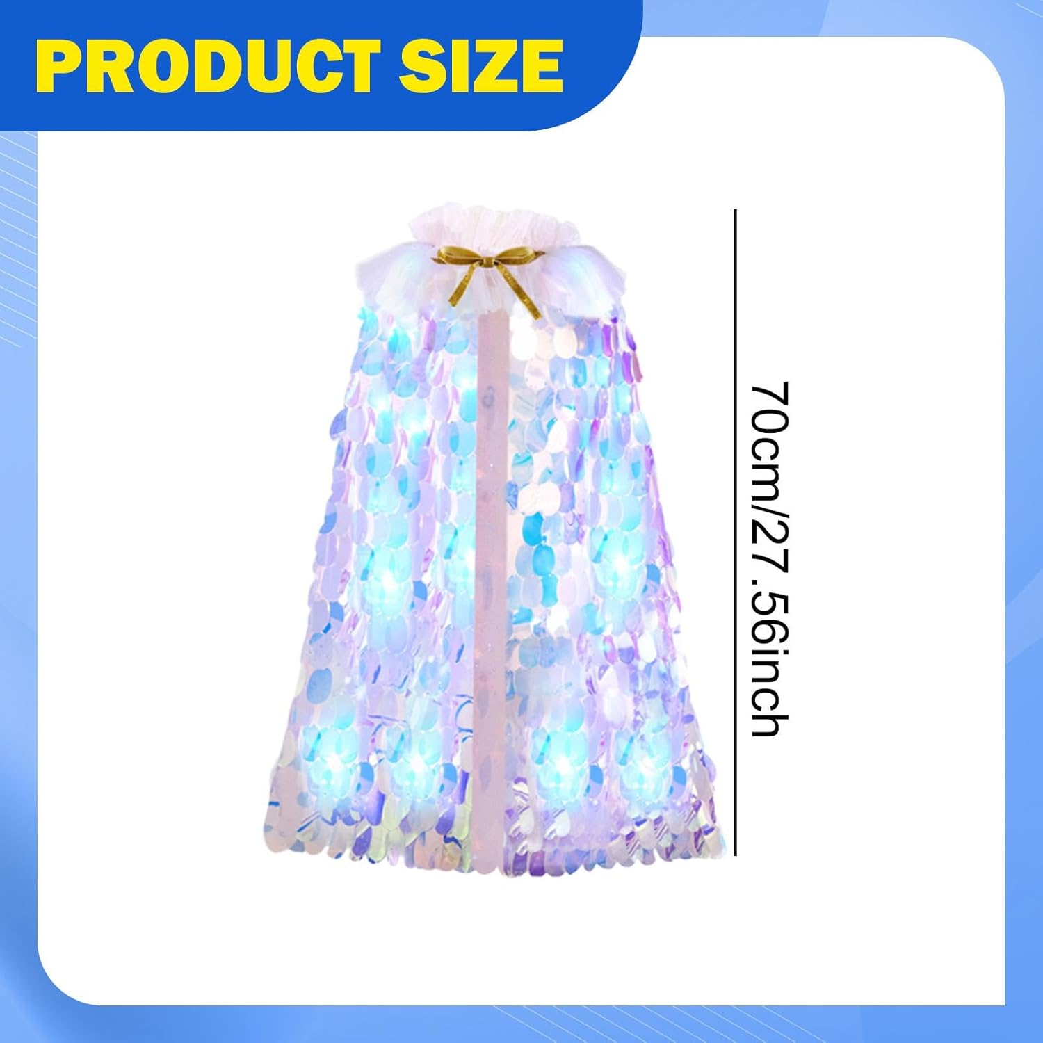 【Costume con luci a LED】: il mantello da principessa presenta un motivo a scaglie scintillanti e luci a LED scintillanti, creando un bagliore accattivante per feste ed eventi 【Ideale per le vacanze】: il mantello da principessa per ragazze è perfetto per Halloween, Natale, feste di compleanno o come principessa sirena, aggiungendo un tocco di fantasia a qualsiasi occasione 【Adatto alla maggior parte dei bambini】: il mantello in tulle presenta un design regolabile con una lunghezza di 70 cm/27,56 pollici, rendendolo adatto a bambini dai 3 ai 10 anni e versatile 【Facilmente abbinabile】: accessori per costumi si sovrappongono facilmente a vestiti o abiti per una trasformazione immediata 【Materiale morbido e confortevole】: il costume da cosplay è realizzato in rete morbida, confortevole e leggera, che consente un comodo utilizzo per tutto il giorno