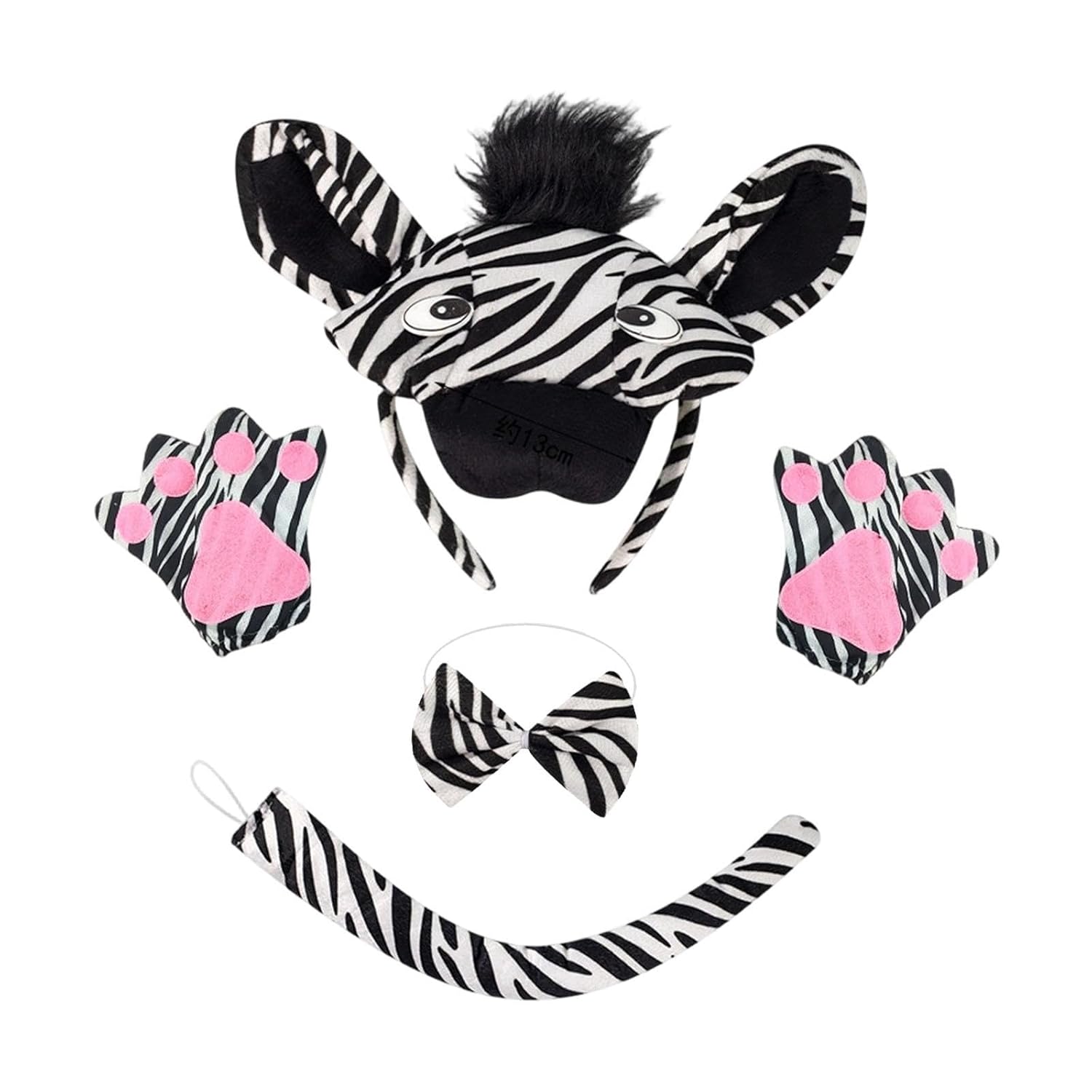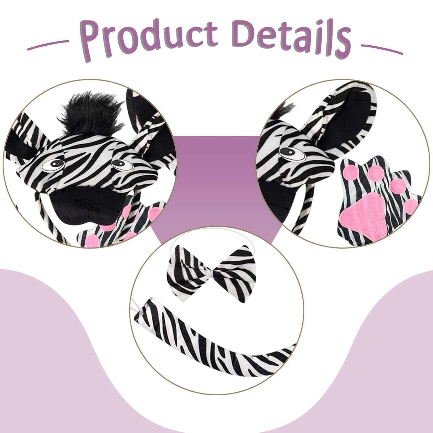 【Carino motivo zebrato】 Il papillon e la coda con orecchie di zebra presentano un motivo zebrato carino e giocoso, che lo rende un ottimo accessorio per feste per bambini, spettacoli teatrali e giochi di ruolo. 【Accessori per foto】: include una fascia 3D, un papillon, guanti e una coda, perfetti per servizi fotografici creativi, aggiungendo un tocco di divertimento alle tue foto. 【Materiale】: -Fascia per le orecchie con coda e papillon in tessuto morbido, comodo da indossare anche per lunghi periodi di tempo 【Occasioni adatte】: il set di costumi per animali è ottimo per giochi di ruolo, feste in costume, spettacoli teatrali, cosplay, oggetti fotografici e altro ancora