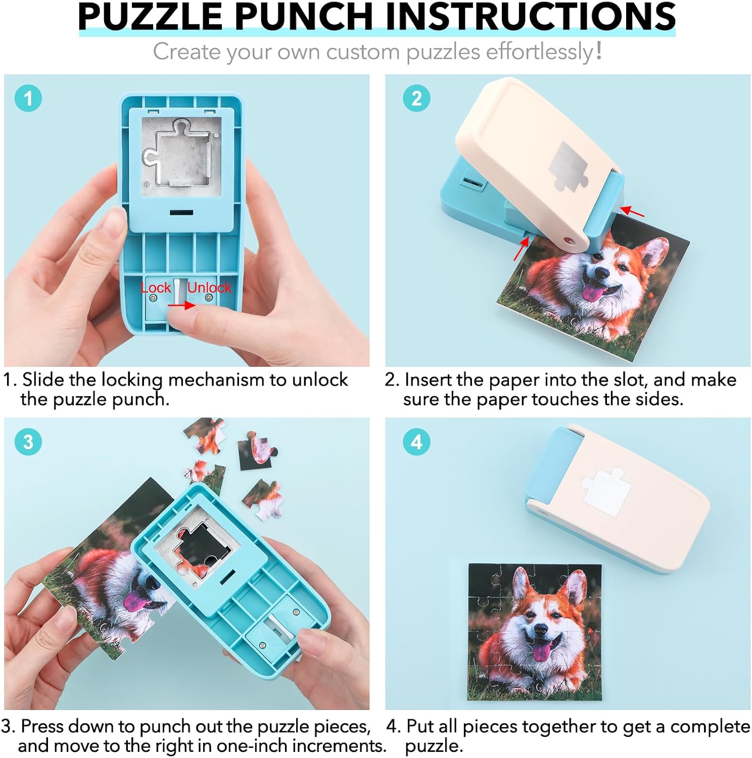 Contenuto della confezione: 1 pezzo BAOFALI 1,96 x 5 x 3,15 pollici/5 x 12,7 x 8 cm, 10 schiume adesive da 15,3 x 10,3 cm, taglierina per puzzle maker sufficiente in grado di soddisfare le tue esigenze per realizzare puzzle a sublimazione personalizzati, le schiume adesive sublimano le tue foto preferite sul puzzle. Materiale sicuro, sano e durevole: realizzato con materiali di alta qualità, il materiale è robusto e durevole, strumento professionale per il taglio manuale del puzzle, bel colore, facile da usare, molto adatto per aule manuali, scuola, uso domestico. Design professionale: la taglierina a macchina per creare puzzle è progettata in base alle esigenze dell'artigianato fatto a mano. Puoi scegliere il modello che ti piace, foto di amici e familiari, album fotografici, adesivi da parete, ecc. Incollalo sulla schiuma appiccicosa, puoi facilmente premere la forma del puzzle e goderti la gioia di creare puzzle in puzzle. Modalità d'uso: prima strappare la carta protettiva del cartone, incollare la propria immagine da 10,2 x 15,2 cm, mettere il cartone sotto il dado a forma di puzzle, premere forte, otterrai un pezzo di puzzle, che è nascosto sotto nel piccolo cassetto! Si prega di non premere troppi pezzi di puzzle contemporaneamente, altrimenti il piccolo cassetto potrebbe non adattarsi, il che potrebbe danneggiare i pezzi del puzzle. Regalo perfetto: colori belli e vivaci, facile da trasportare, squisita fattura, bordo tagliente ad arco, linee lisce di pressatura, facile da premere la forma del puzzle a mano, design tradizionale, decorazioni fatte a mano, molto adatto per realizzare artigianato puzzle fatto a mano, è molto adatto come regalo per familiari, amici, compagni di classe, adulti piacerà.