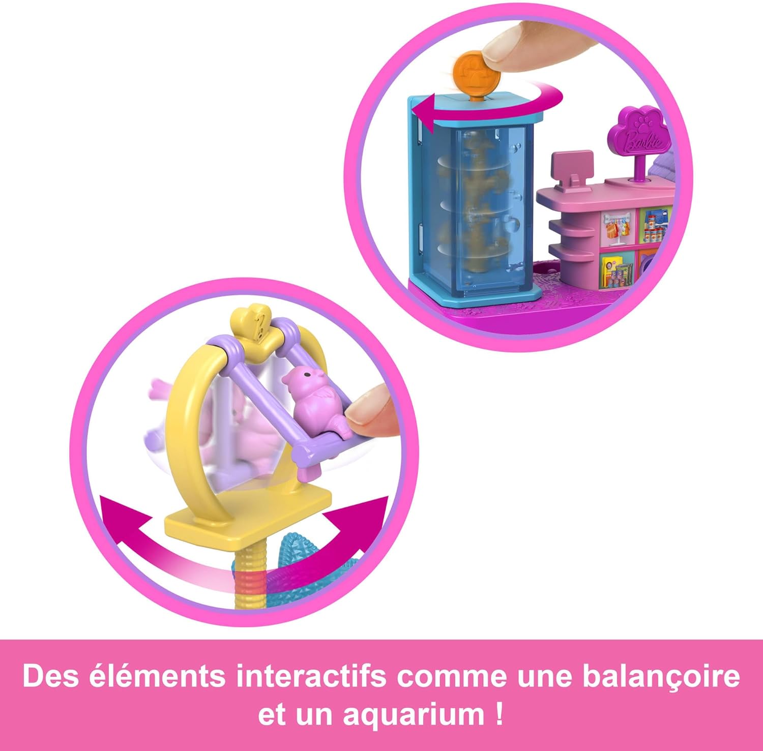 Entra nel mondo Mini-BarbieLand con i set da collezione Barbie e preparati a scatenare i tuoi sogni più sfrenati in formato mini! Il set Pet Shop aspetta solo di essere esposto o di accogliere nuove avventure e include una mini-doll da 3,8 cm! Questo set include divertenti aree di gioco interattive come un registratore di cassa con un'esposizione di prodotti per animali domestici, un acquario, una cuccia e una cuccia per gatti. I bambini possono inventare storie giorno dopo giorno con la bambola da 1,5 pollici in diversi spazi di gioco, tra cui una gabbia per uccelli oscillante e un acquario rotante! La bambola è snodabile in vita per sedersi e poggia su una base a forma di cuore che funziona con altre case delle bambole, veicoli e set da gioco Barbie. I fan possono collezionare tutte le bambole e i set Mini-BarbieLand per creare i propri mini-universi e inventare grandi storie (tutti venduti separatamente; alcuni prodotti potrebbero non essere rilasciati)!