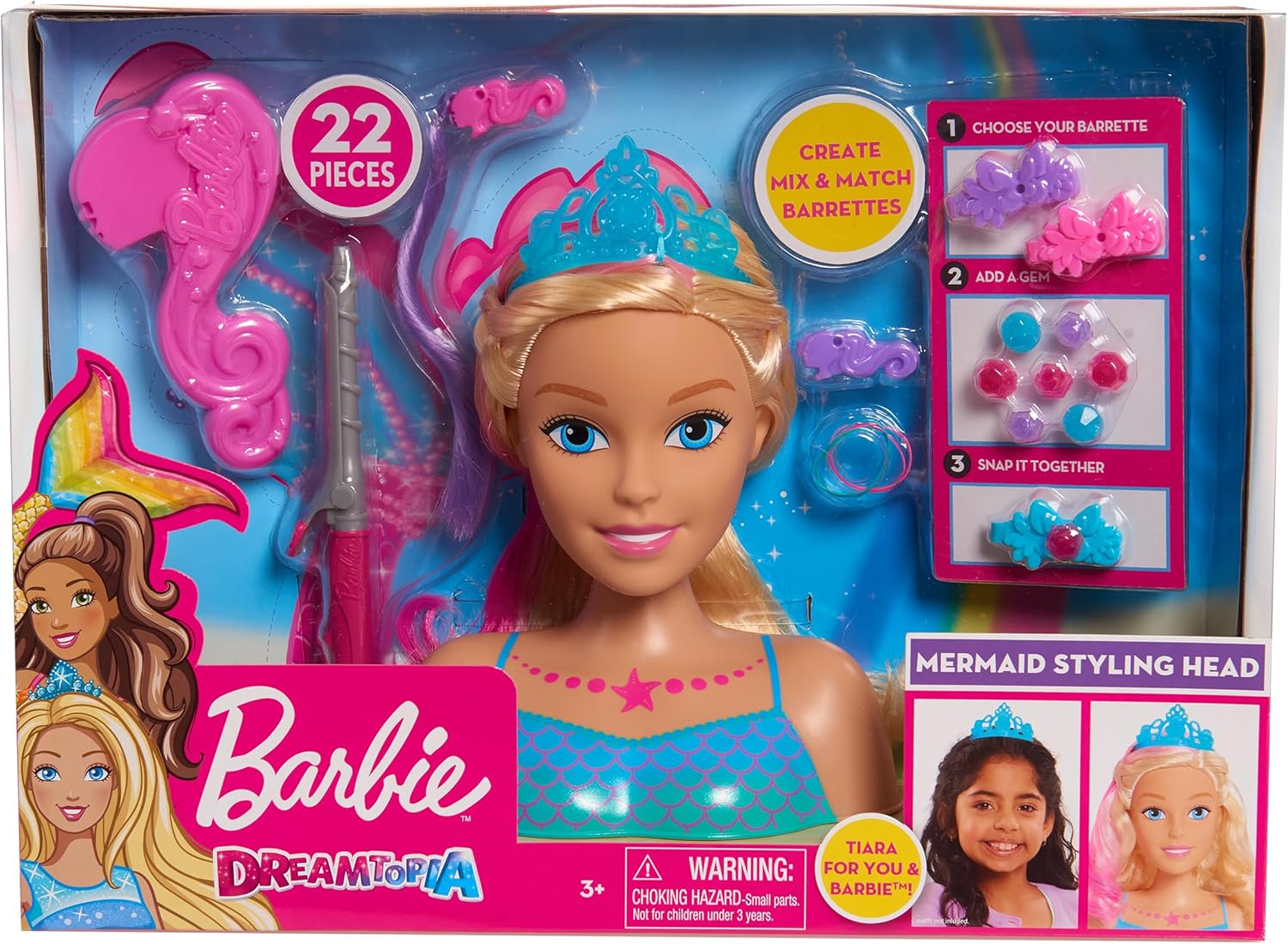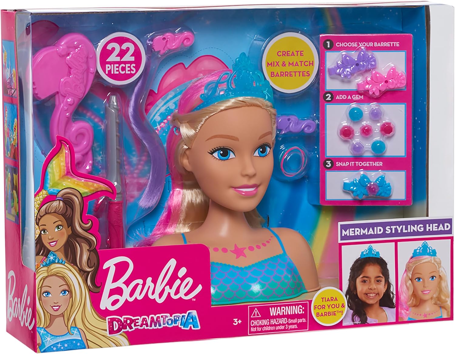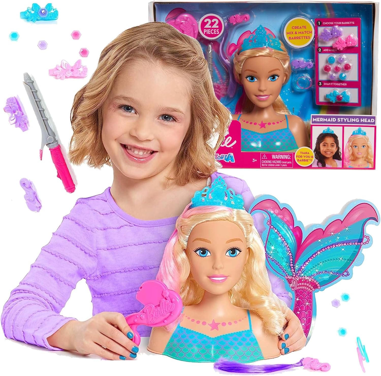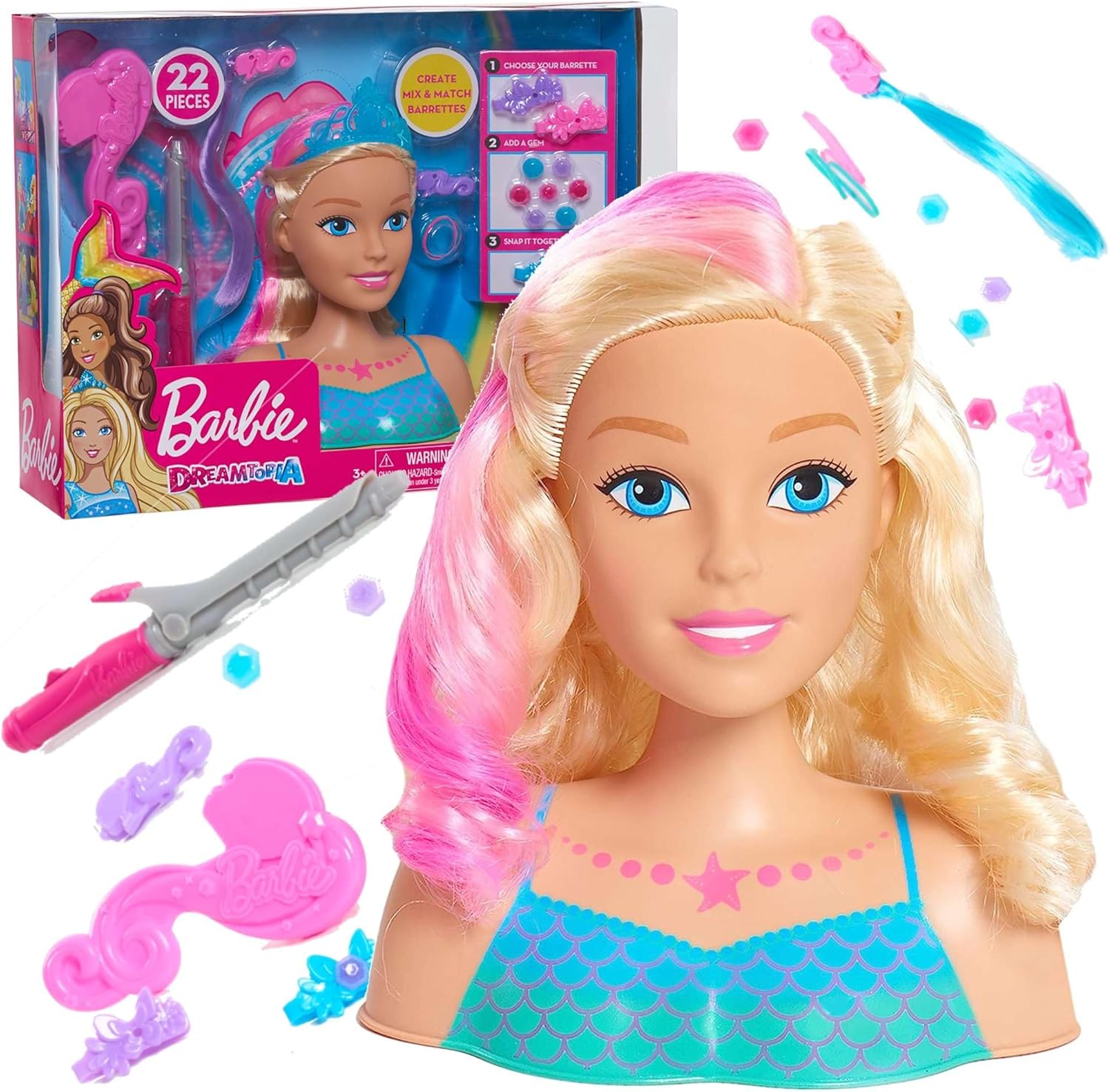 Spazzola i capelli arcobaleno di Barbie con il simpatico pennello rosa Regala un tocco di stile Barbie con le fascette e le mollette Personalizza le mollette con le divertenti gemme pop-in colorate e luminose Età 3+ Regalo perfetto per i bambini